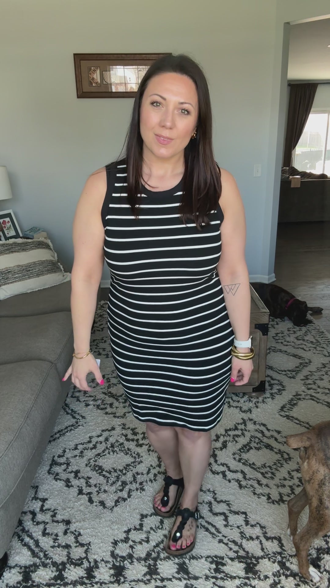 Michelle Mae Mariah Ribbed Dress - Black Stripes