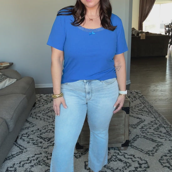 Meet Martha, your new favorite pair of Judy Blue jeans! This mid-rise kick flare features a button fly and light wash that's perfectly lived-in without the fuss. The raw hem adds an edgy touch, while 4-way stretch fabric keeps you comfortable from morning to night. Whether you're running errands or heading out with friends, these flares deliver style and movement in one irresistible package.