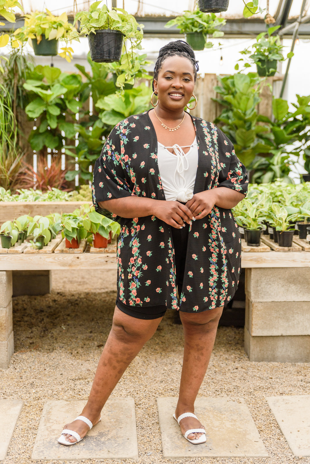 Keywords: Kimono, Black, Floral, Pink, Sheer