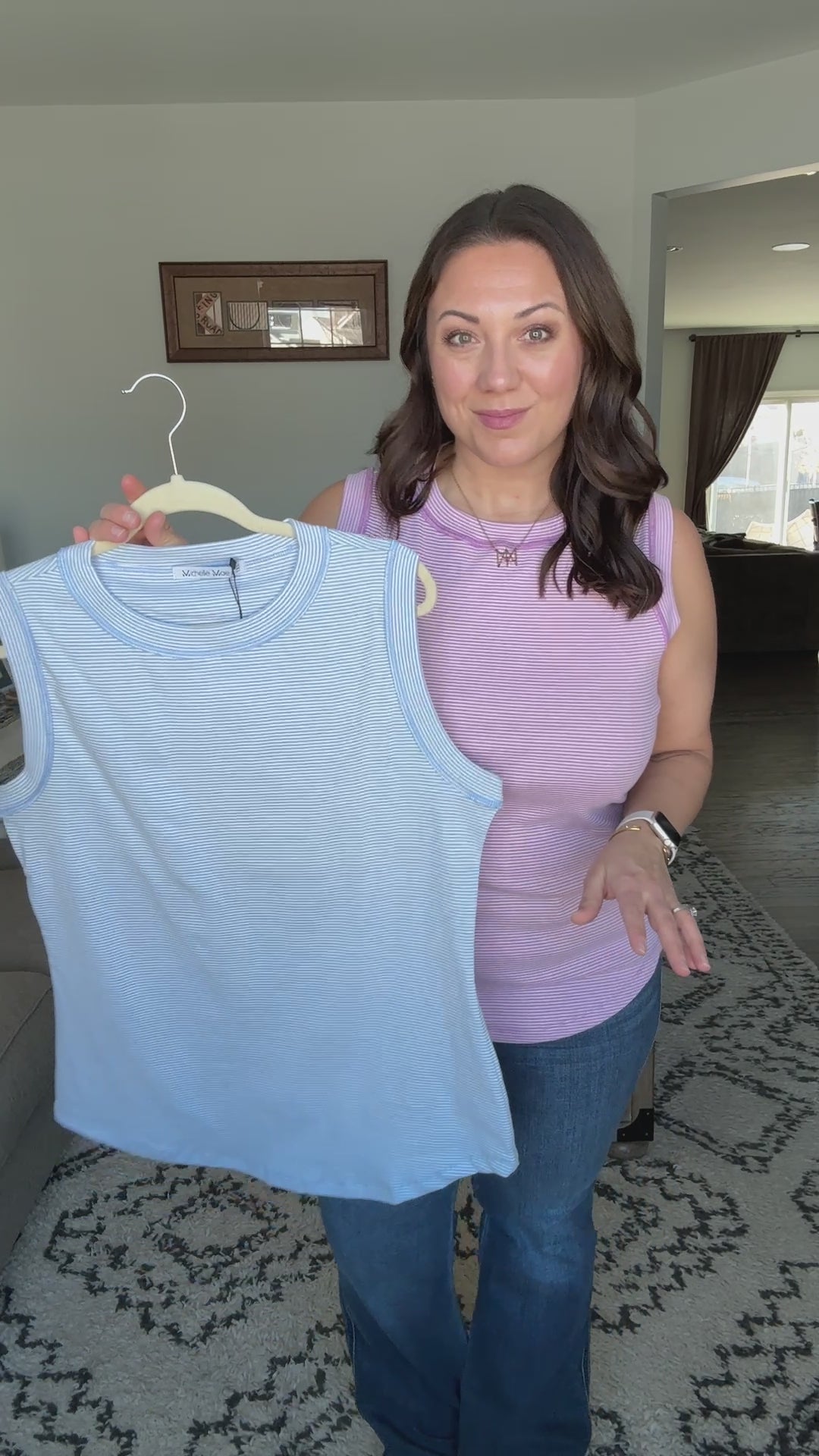 Michelle Mae Morgan Micro Striped Tank - Periwinkle