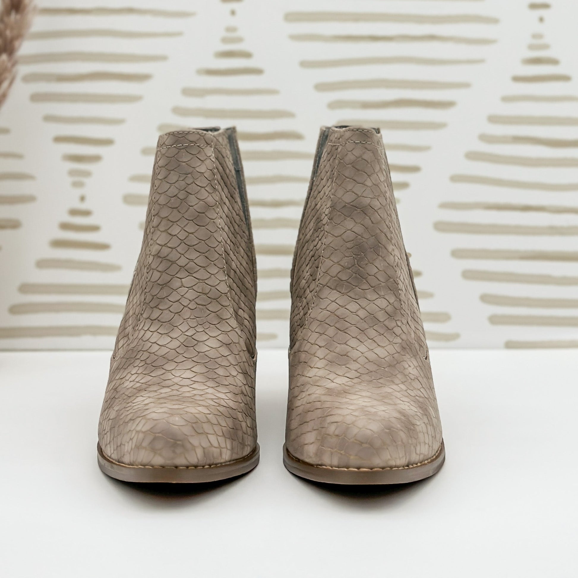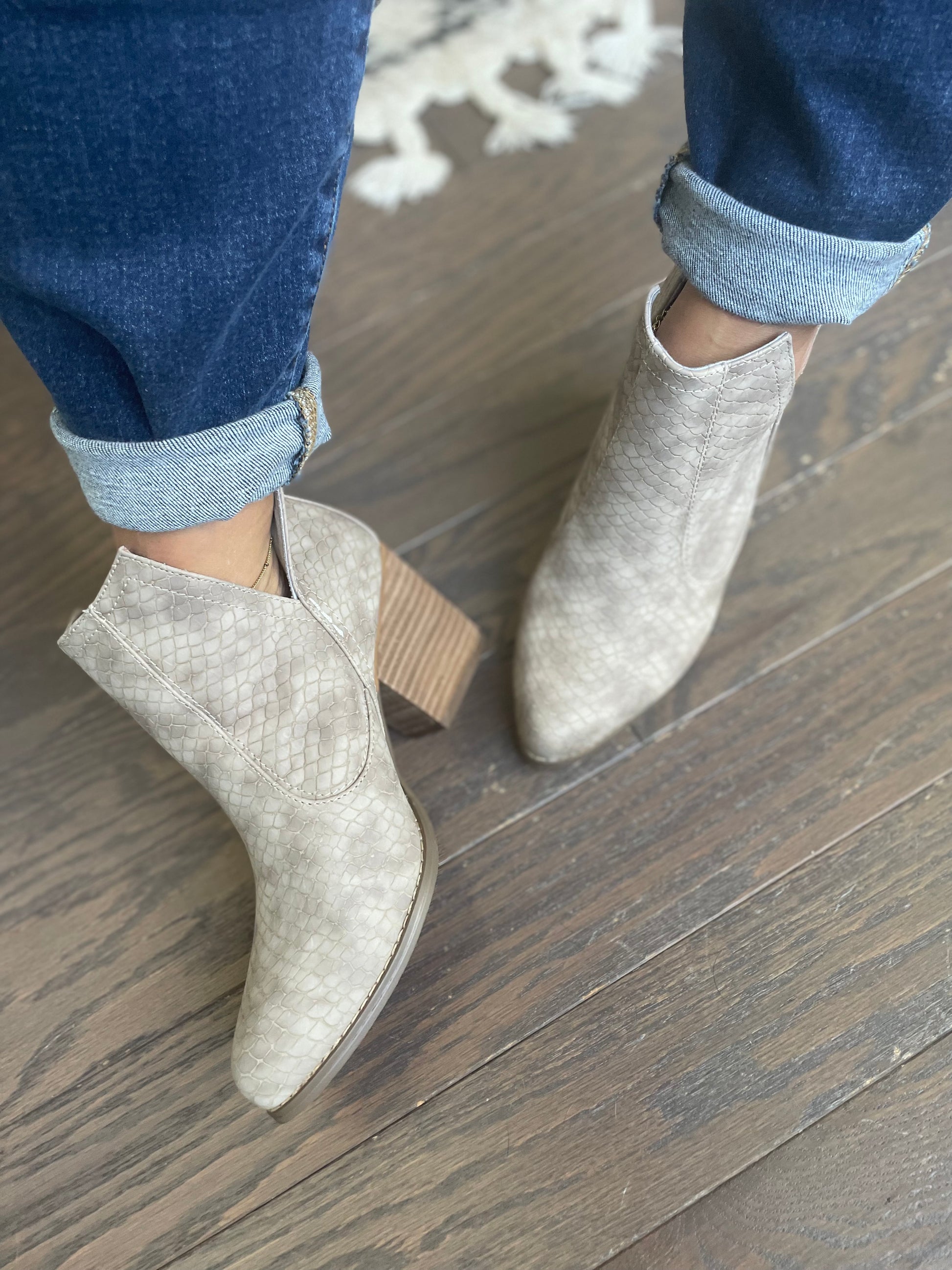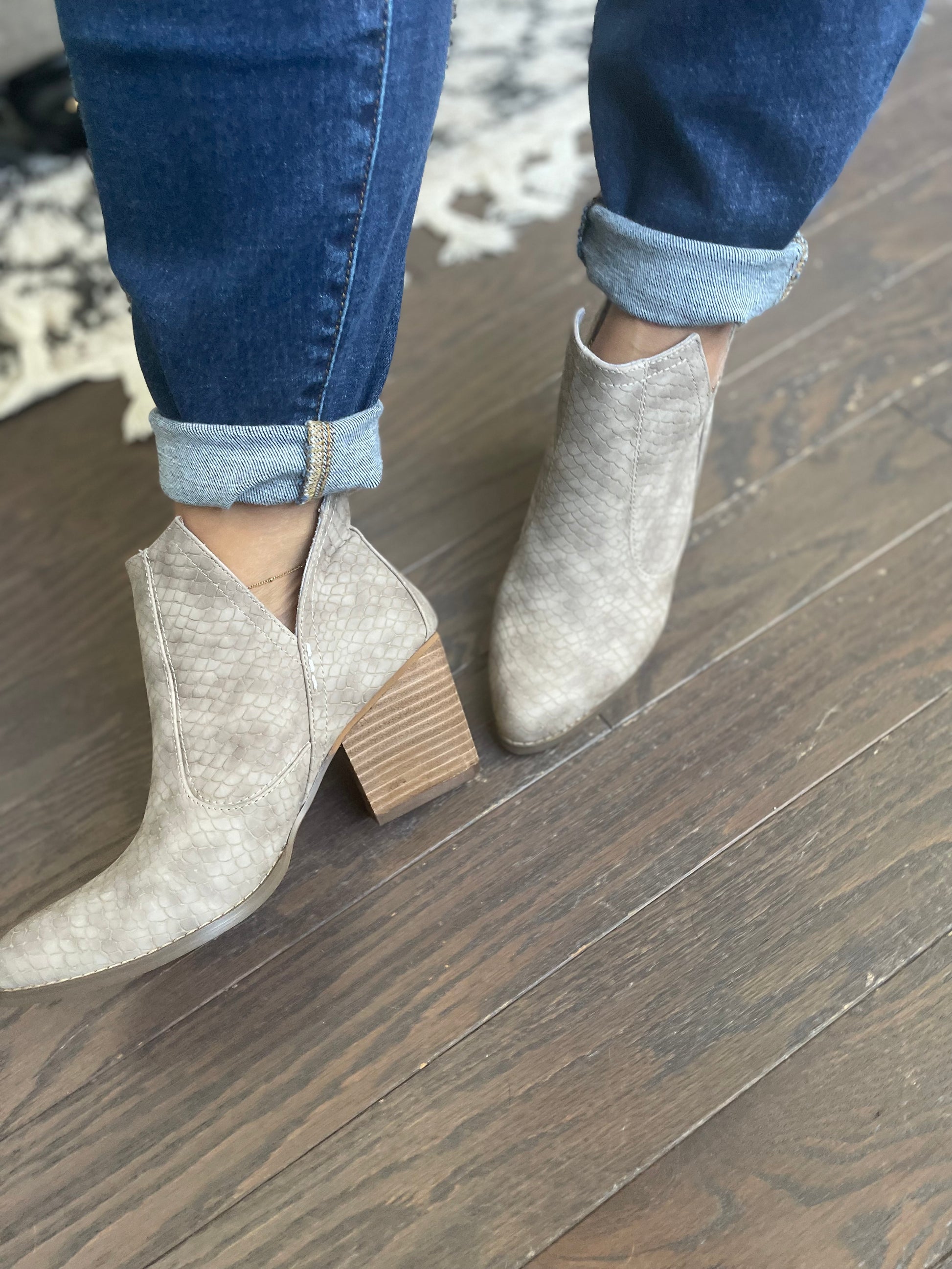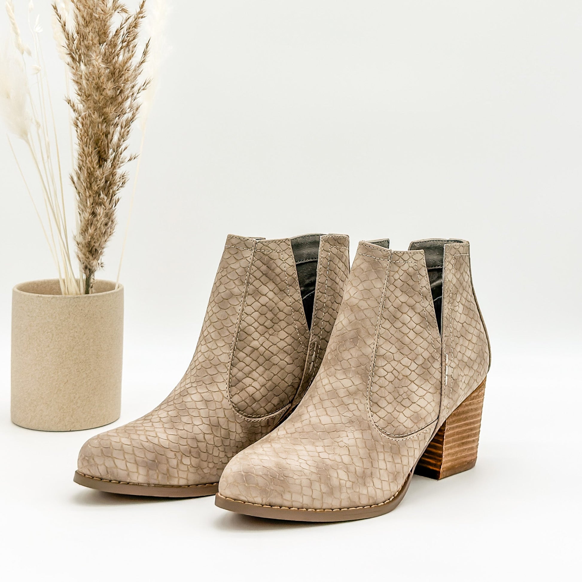 Our Tarim bootie has been a favorite time and time again! A taupe grey upper with a microfiber touch.