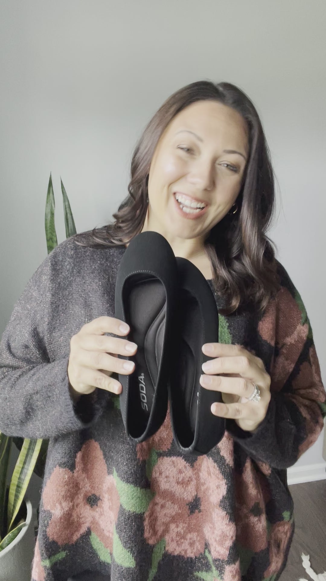 Soft brushed fabric hugs your feet, while the slip on slide design makes it easy to put on and take off. A gel in sole provides all day comfort so you can stay on your toes! A classic ballet flat style will never go out of style