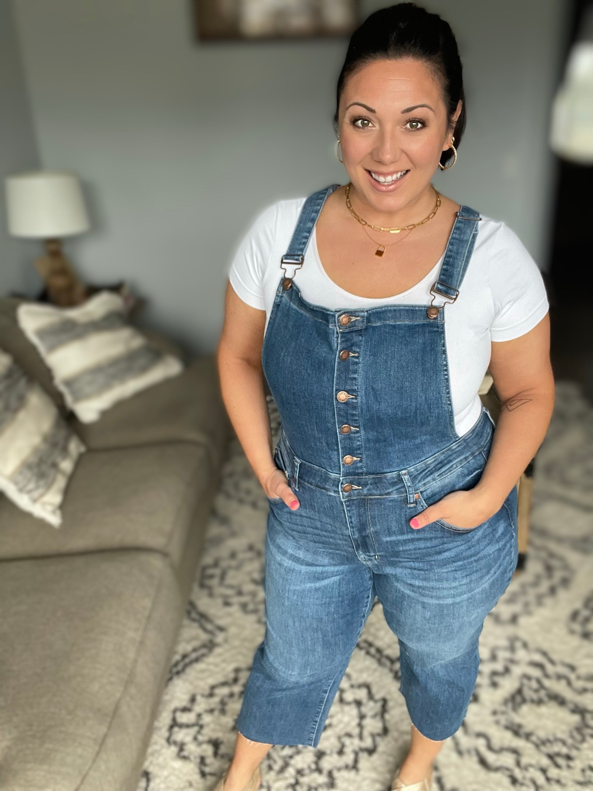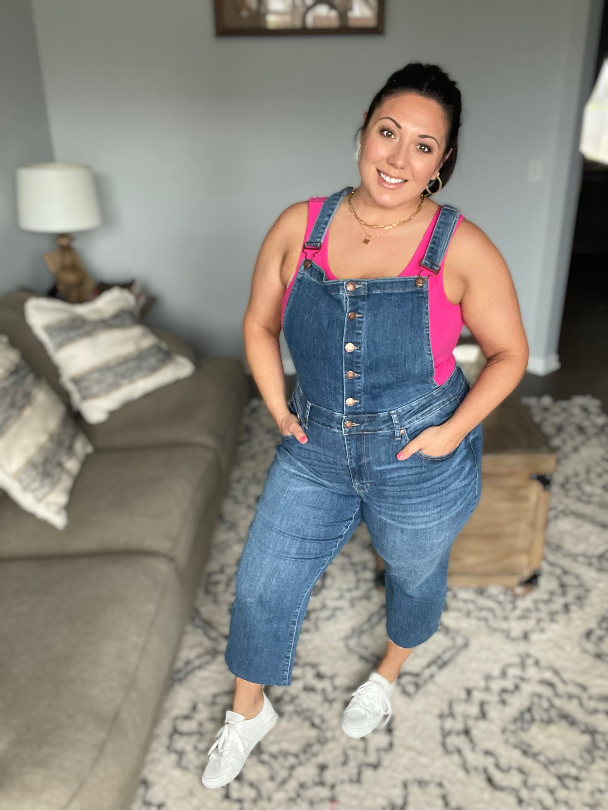 Step out in style with Priscilla High Rise Crop Wide Leg Denim Overalls from Judy Blue! These chic retro-style overalls feature a button front bib, high rise waist, and wide crop legs for a trendy look. The adjustable straps provide a custom fit, making these overalls a versatile and comfortable addition to your wardrobe. And can we talk about the wash details and whiskering?! Swoon!