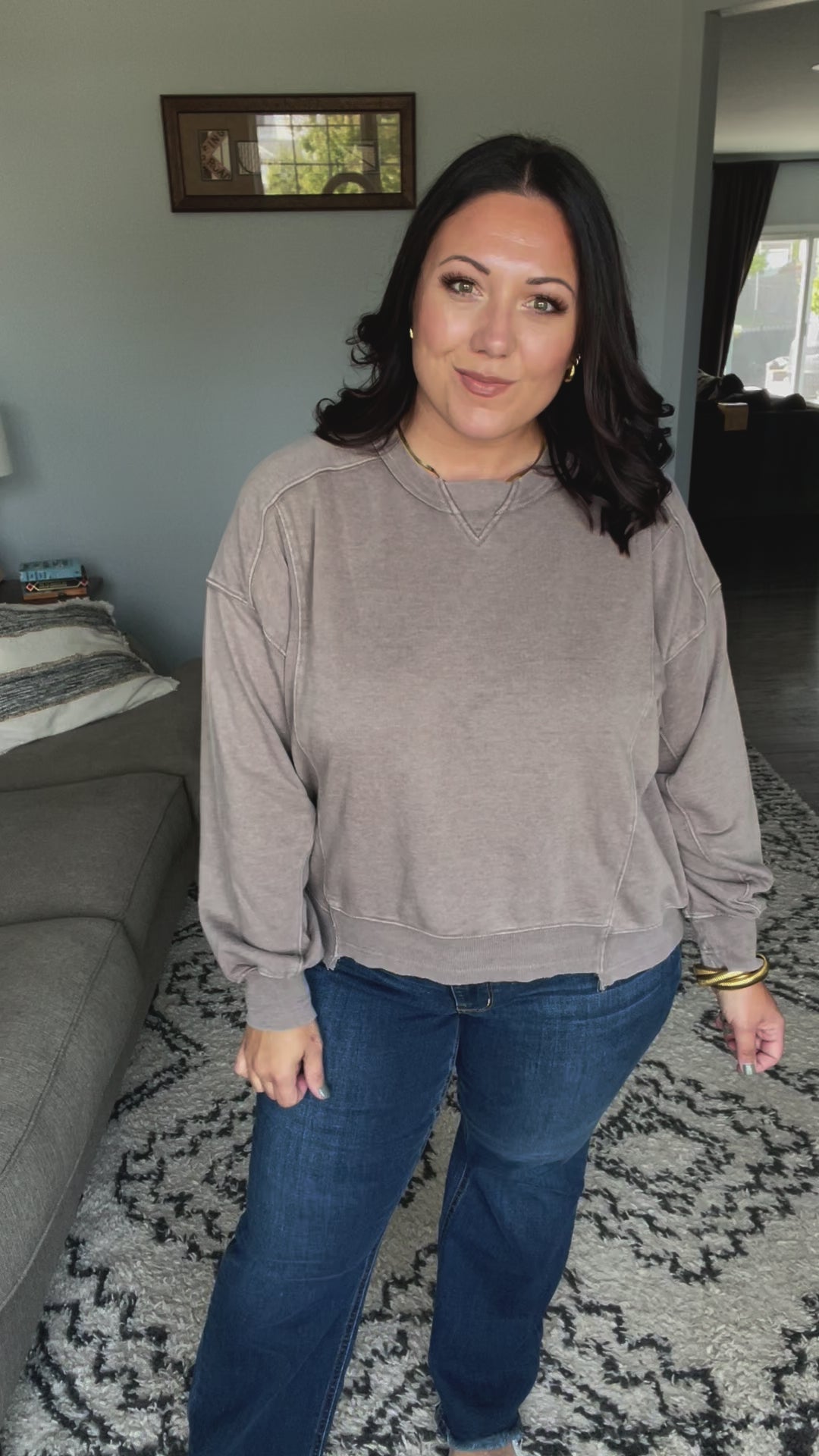 Quick Fix Mineral Wash Crew Neck Pullover in Mocha