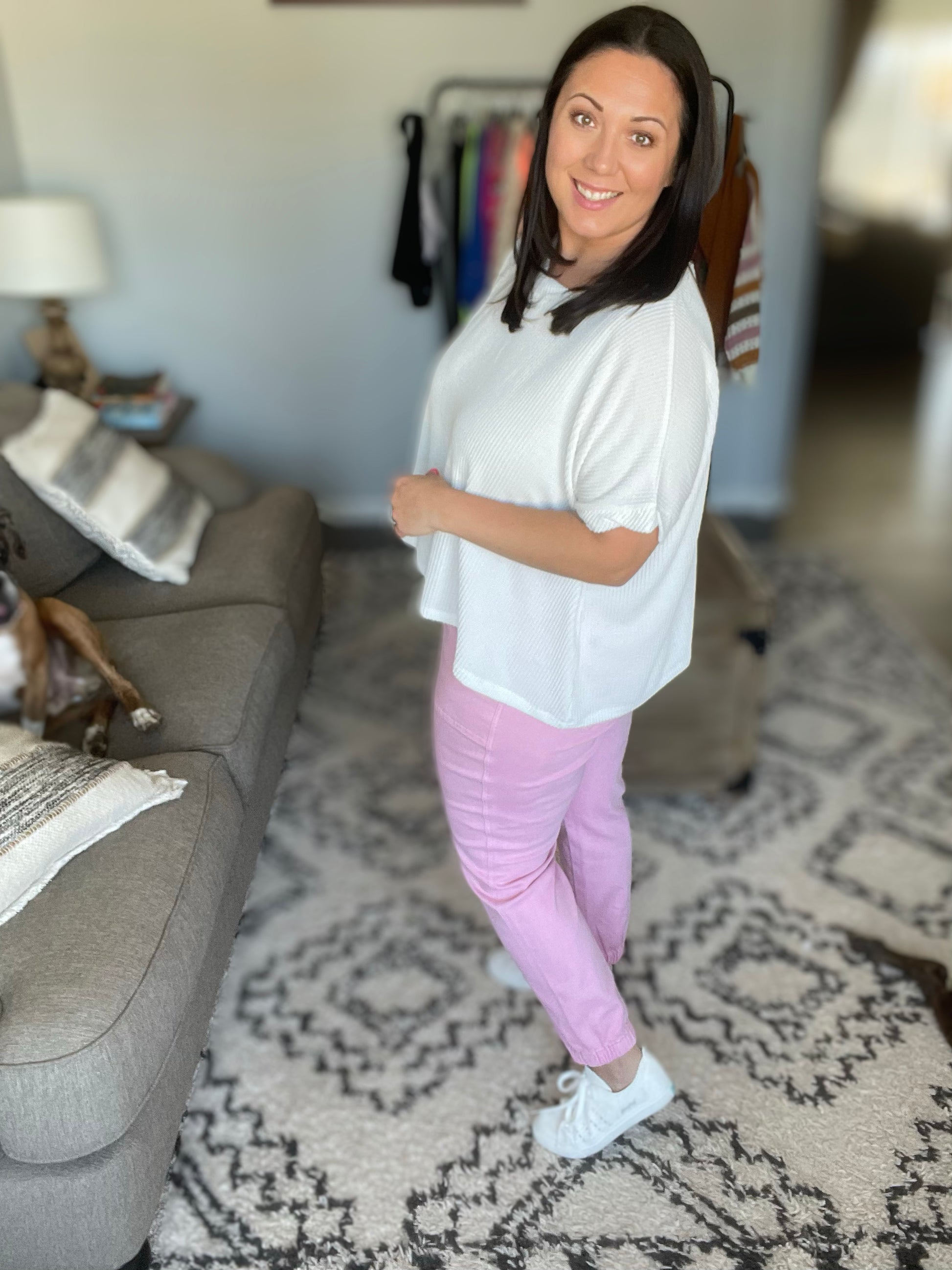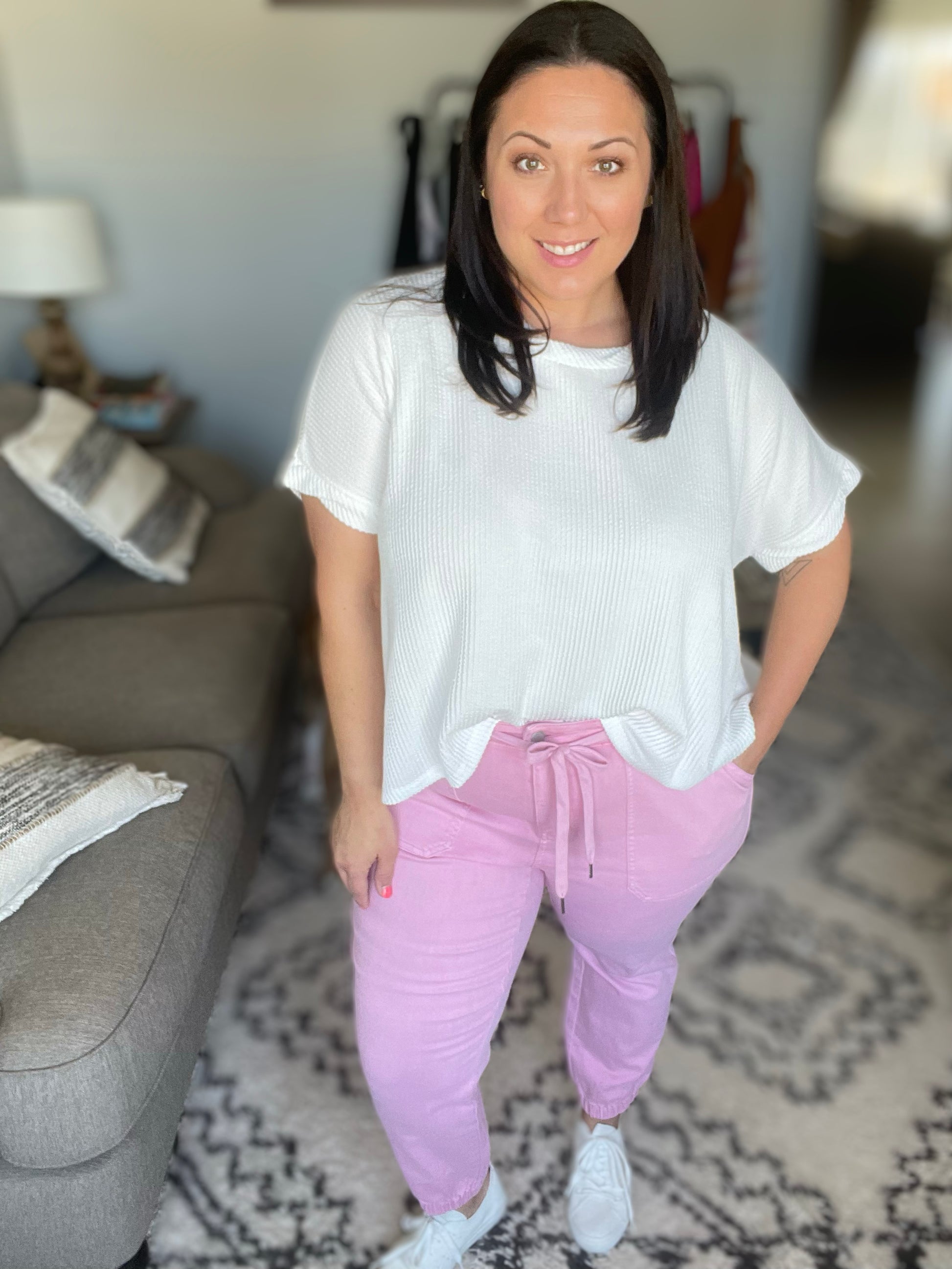 Regina High Rise Garment Dyed Pink Denim Jogger