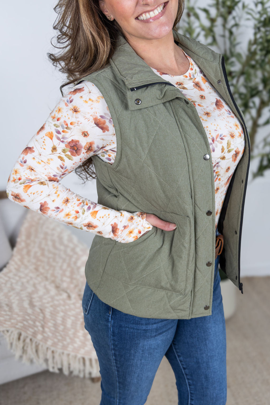 Michelle Mae Remy Zip Up Vest - Heathered Sage