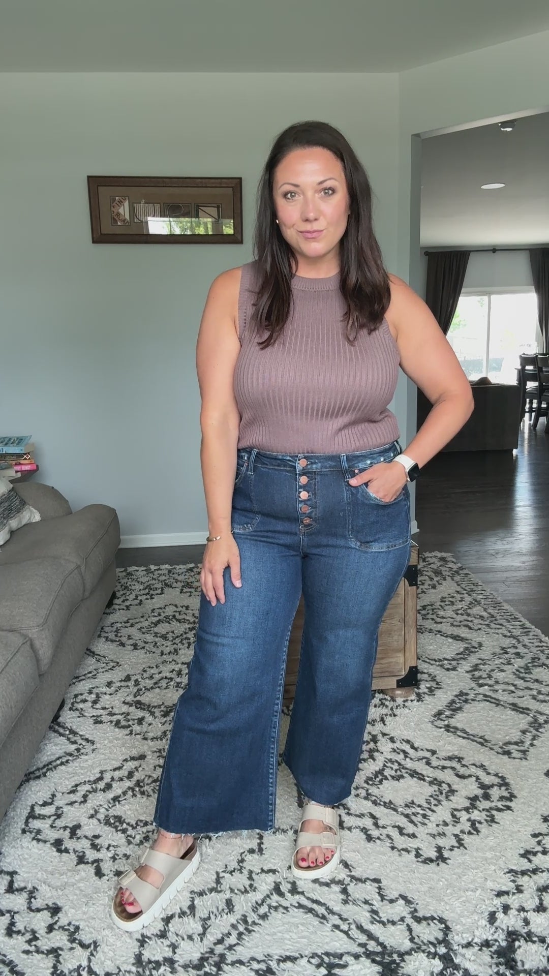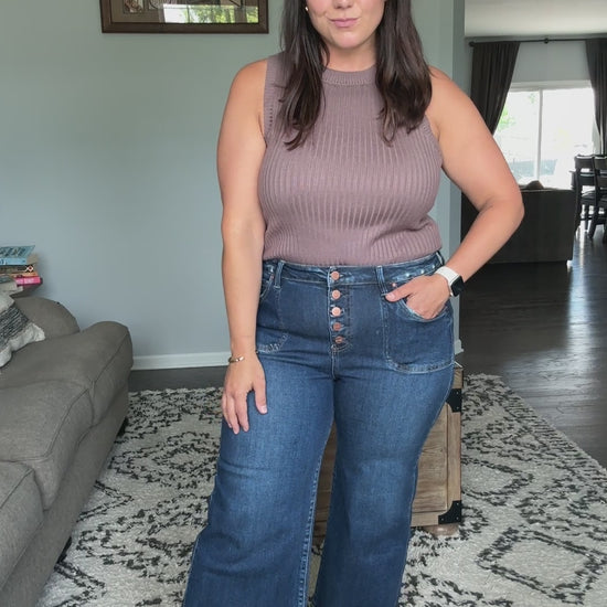 RISEN Suspect Loves Wide Leg Cropped Jeans in Button Fly Dark Wash