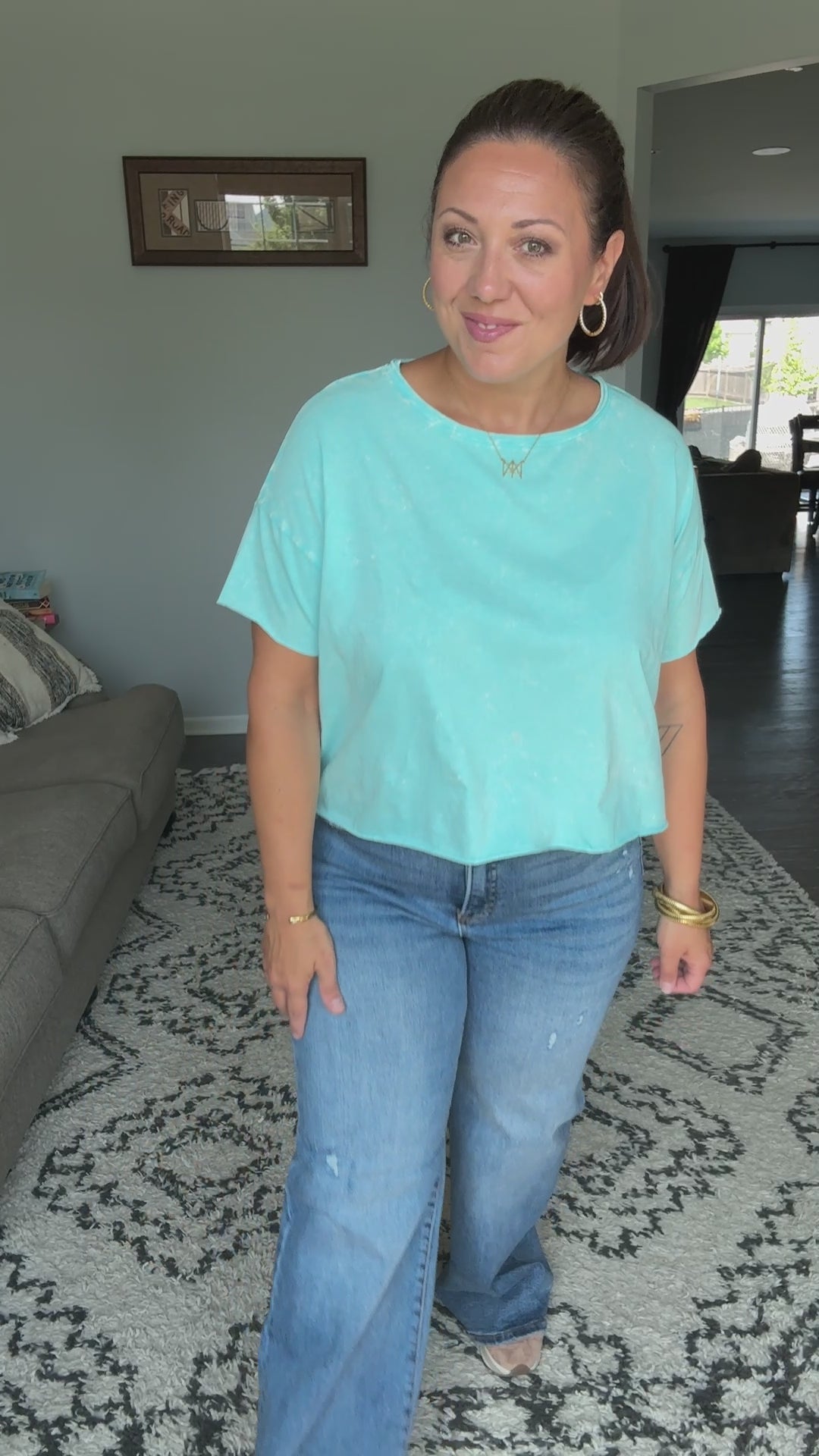 These premium high waisted wide leg jeans feature a classic medium blue denim wash with subtle distressed detailing for a lived-in look. The high waisted design creates a flattering silhouette while the wide leg cut provides a relaxed, comfortable fit. They feature tummy control front panels that help smooth the midsection and create a flattering fit. Plus, the inside of the waistband features a soft animal print elastic that provides a comfy fit. Perfect for casual everyday wear or dressed up. The classic five pocket styling and button closure add authentic denim appeal.
