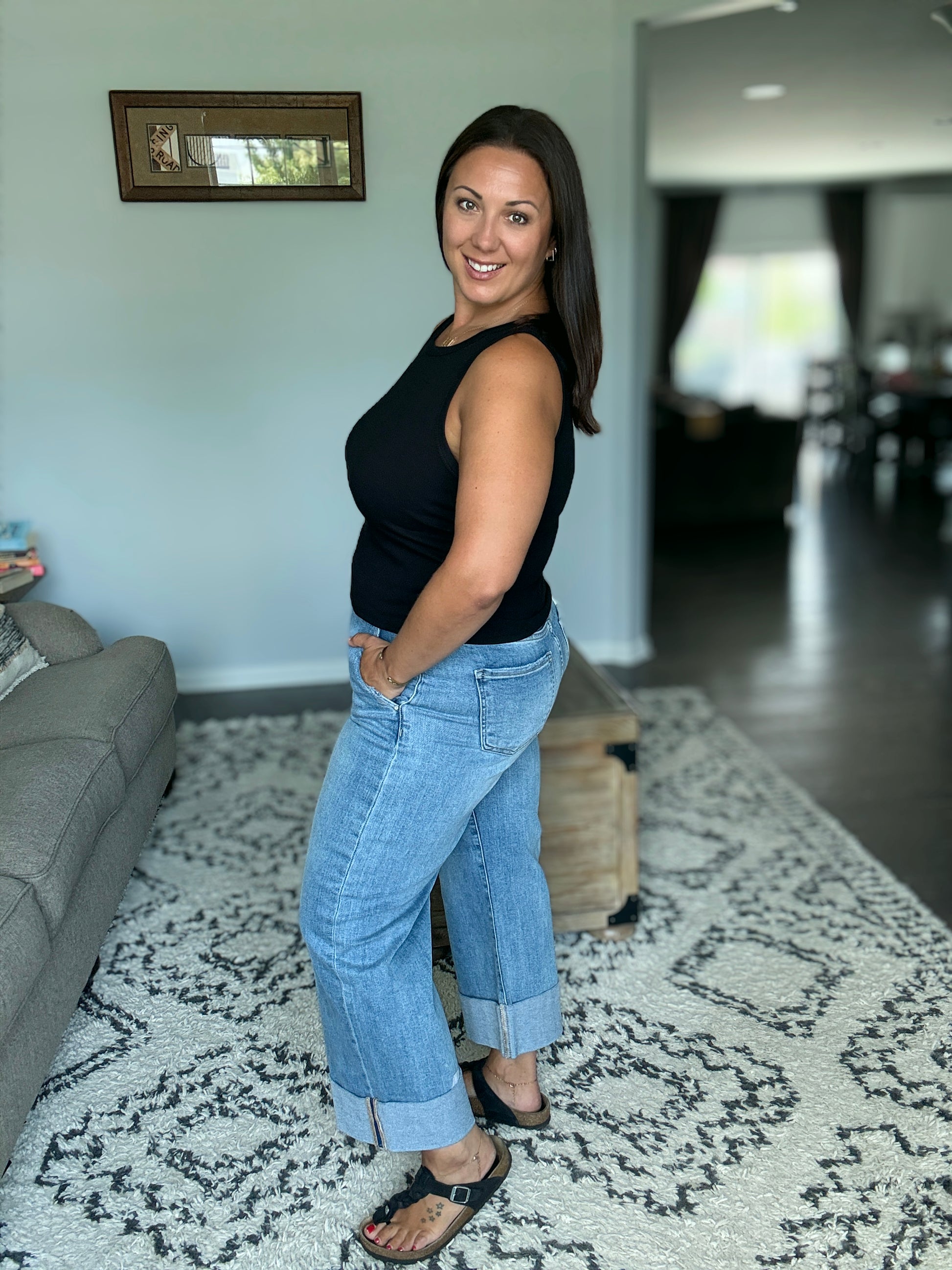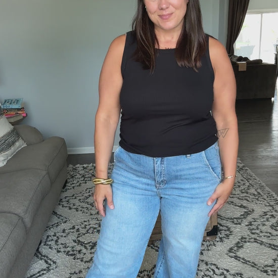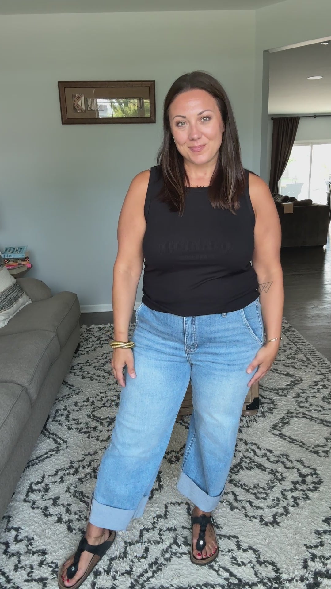 RISEN Willow Tummy Control High Rise Ankle Wide Cuffed Jeans