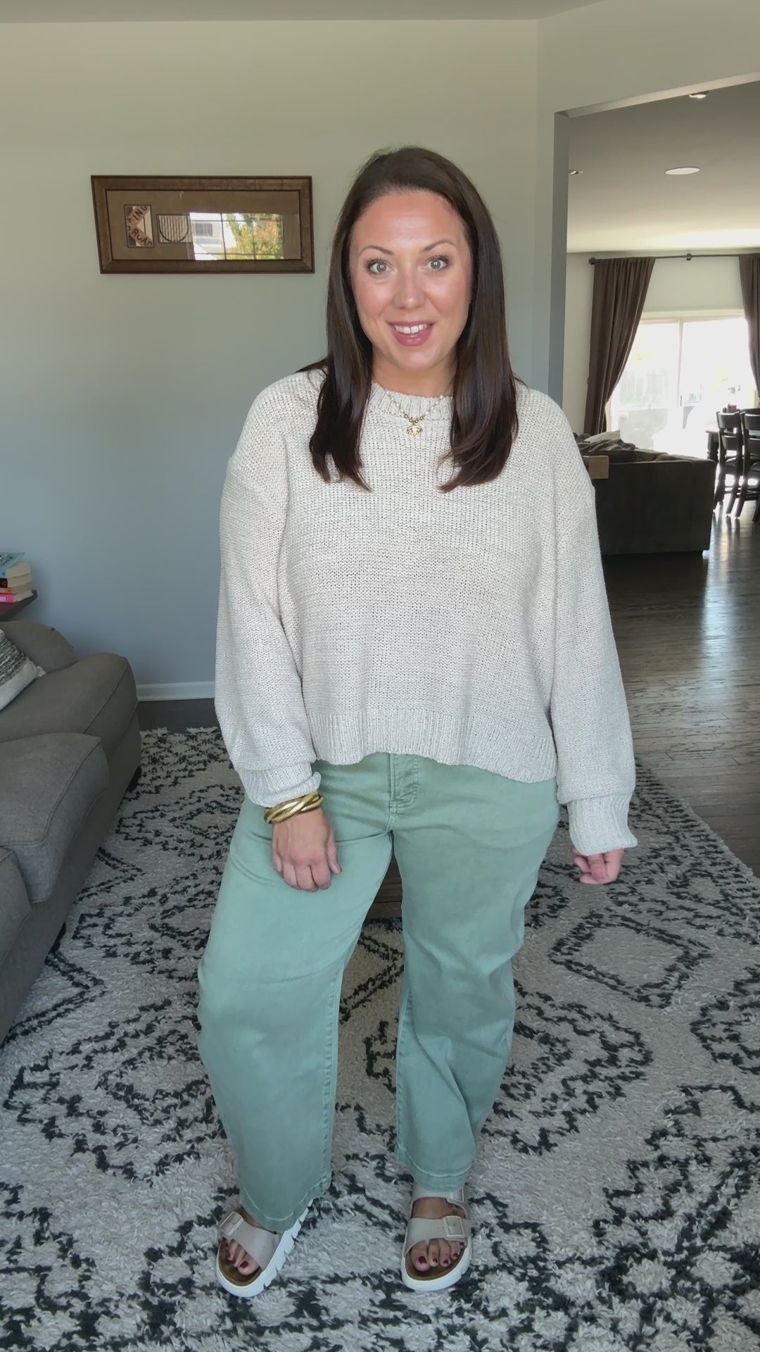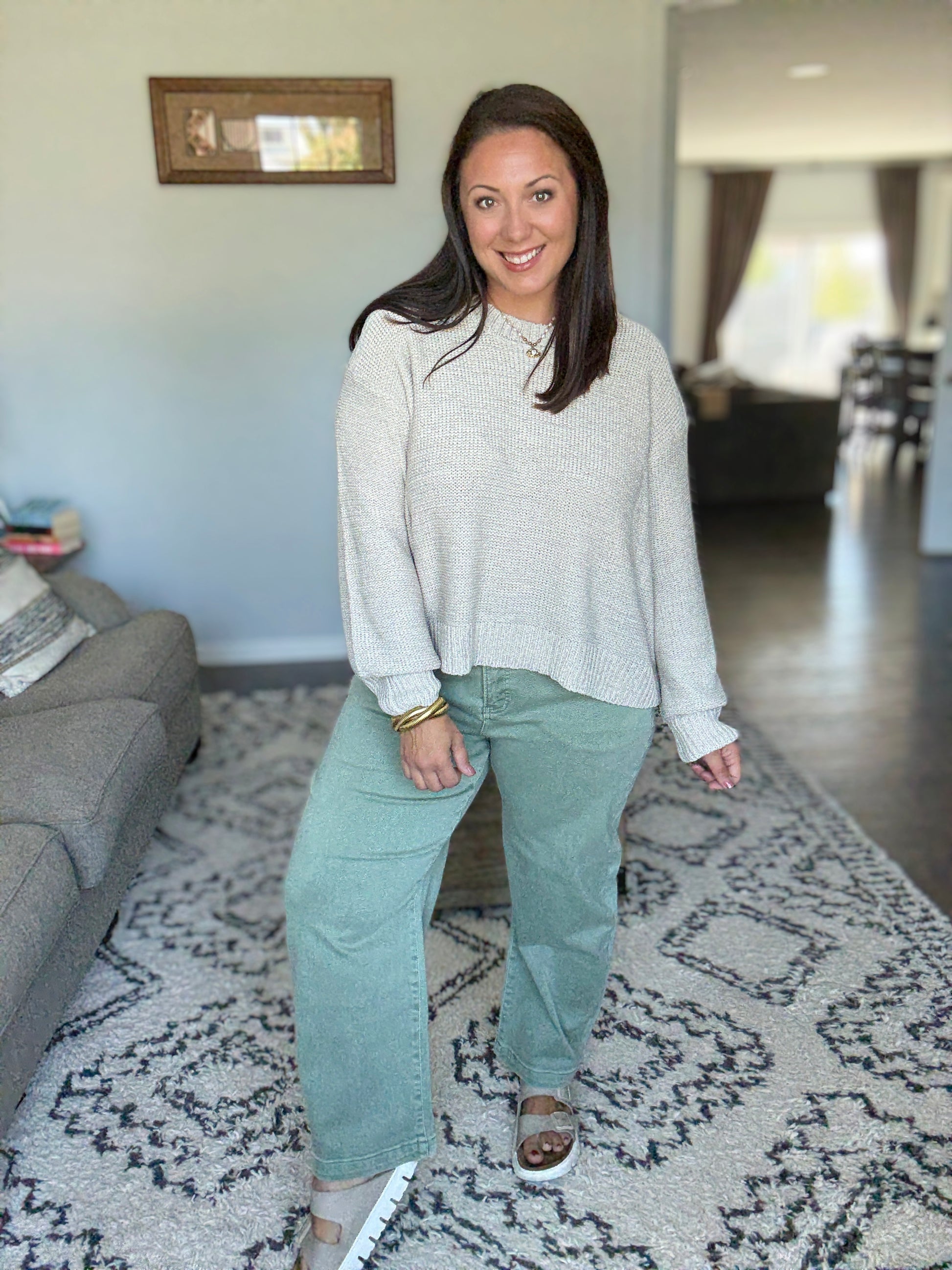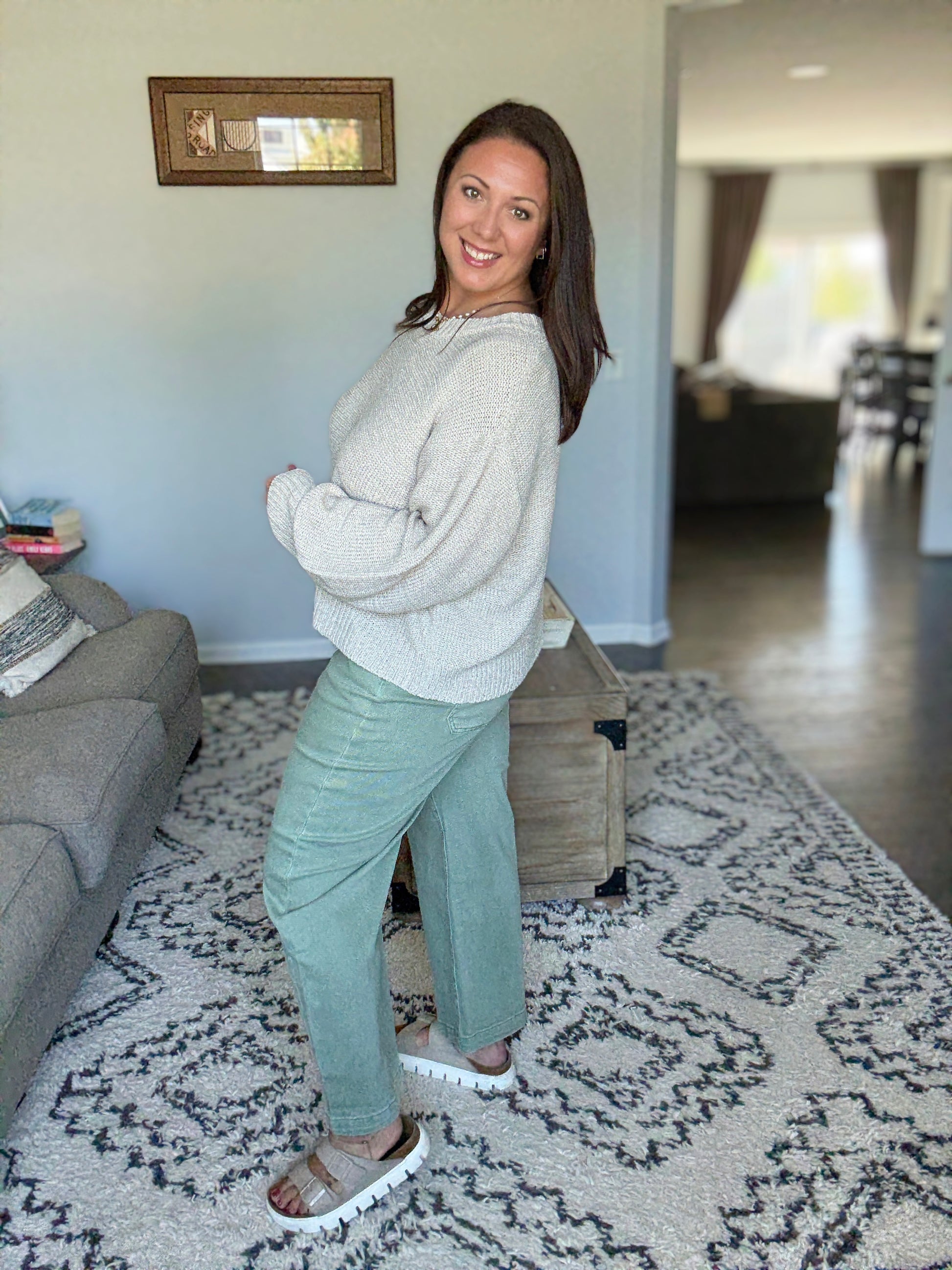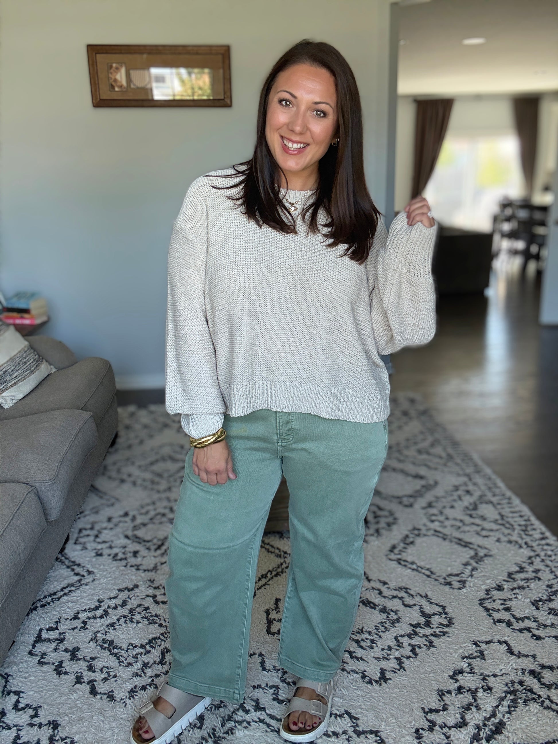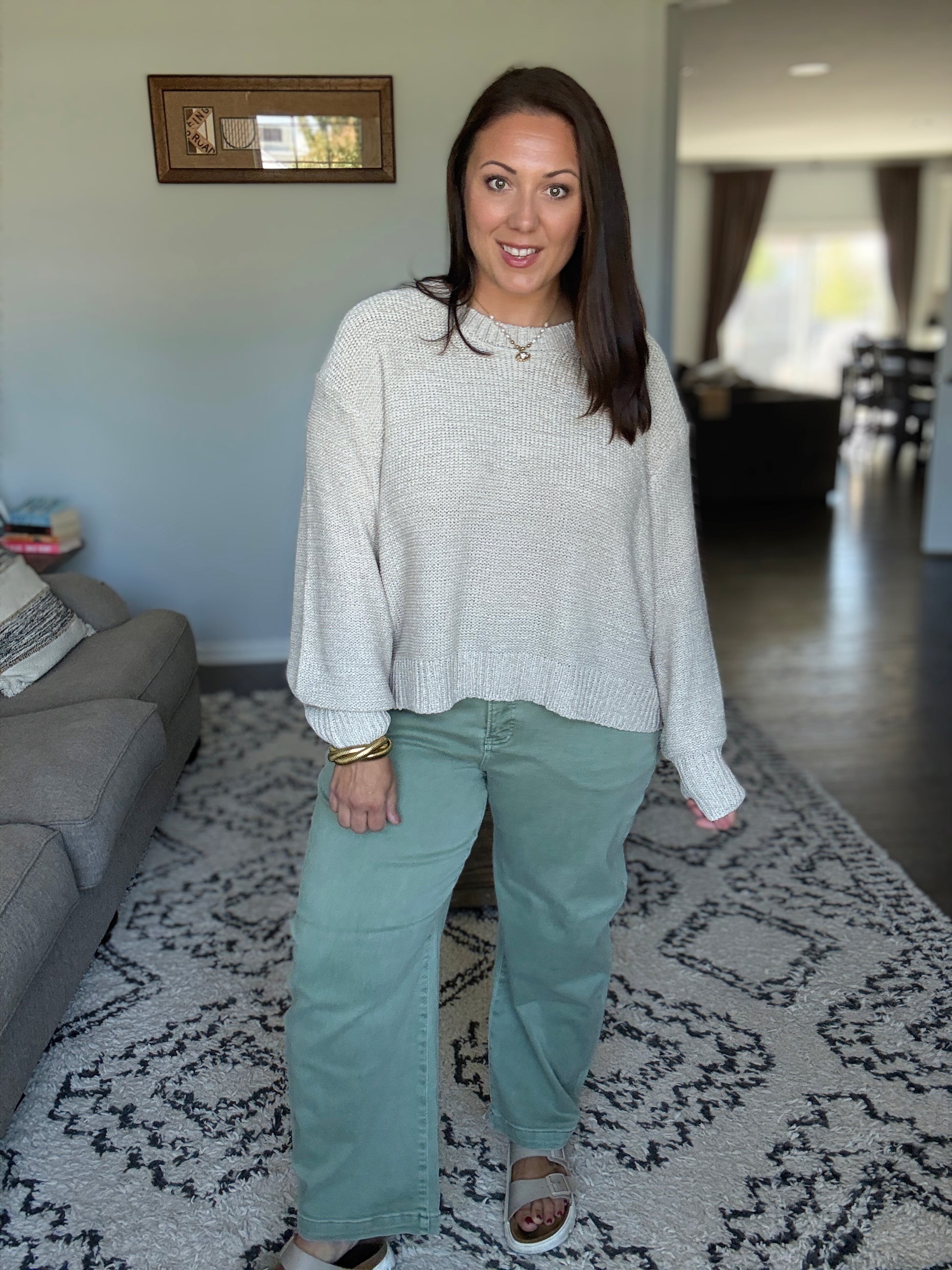 RISEN Tummy Control High Rise Crop Barrel Jeans in Light Olive