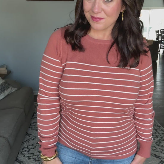 Meet your new favorite, the Rust Revival Long Sleeve Knit Top! Made from lightweight sweater knit with ribbed knit accents, it’s stretchy and comfy for all-day fun. The banded, ribbed round neckline and sleeve cuffs add a stylish touch, making this top perfect for layering or rocking on its own with a pop of earth tone color.