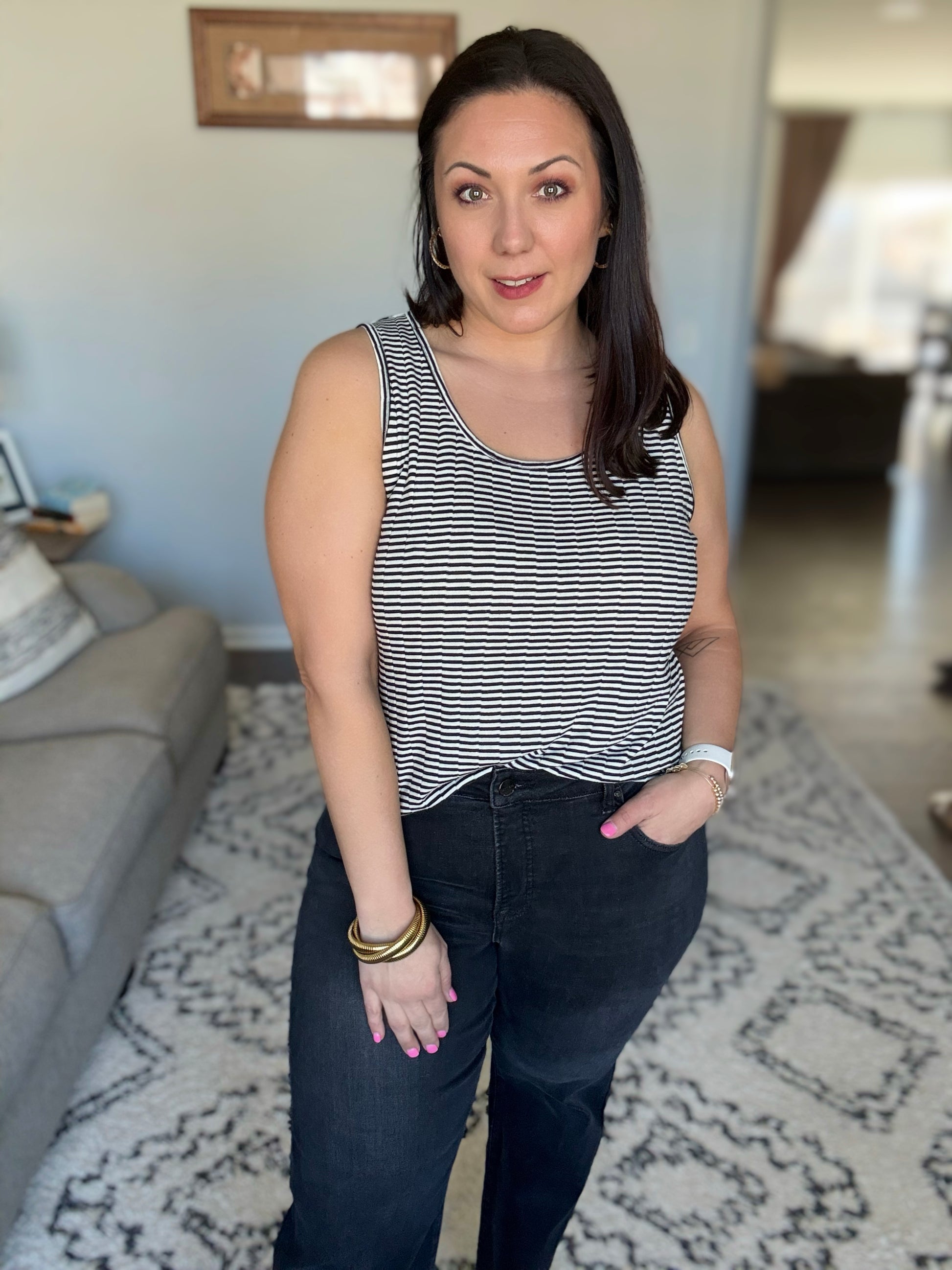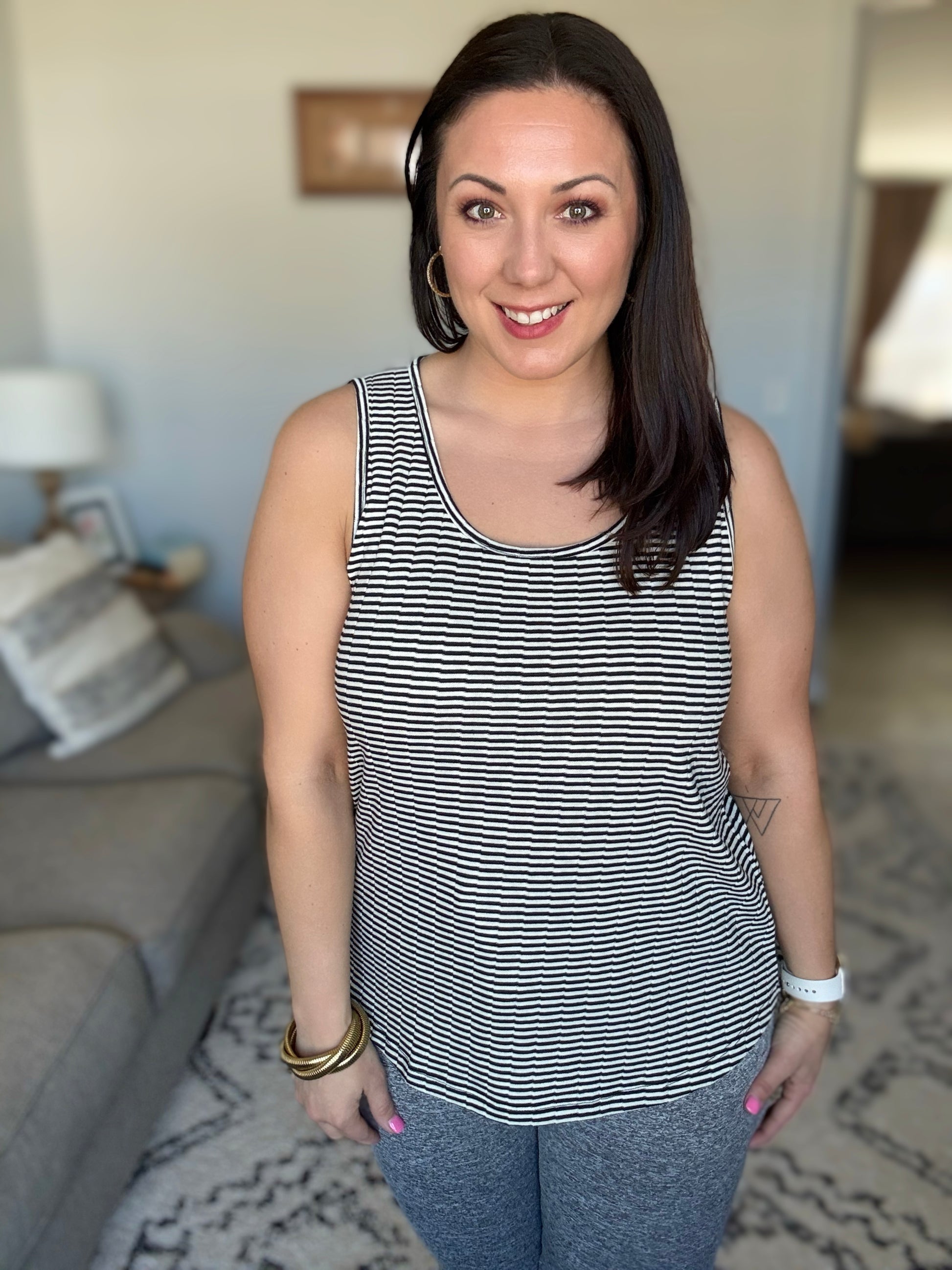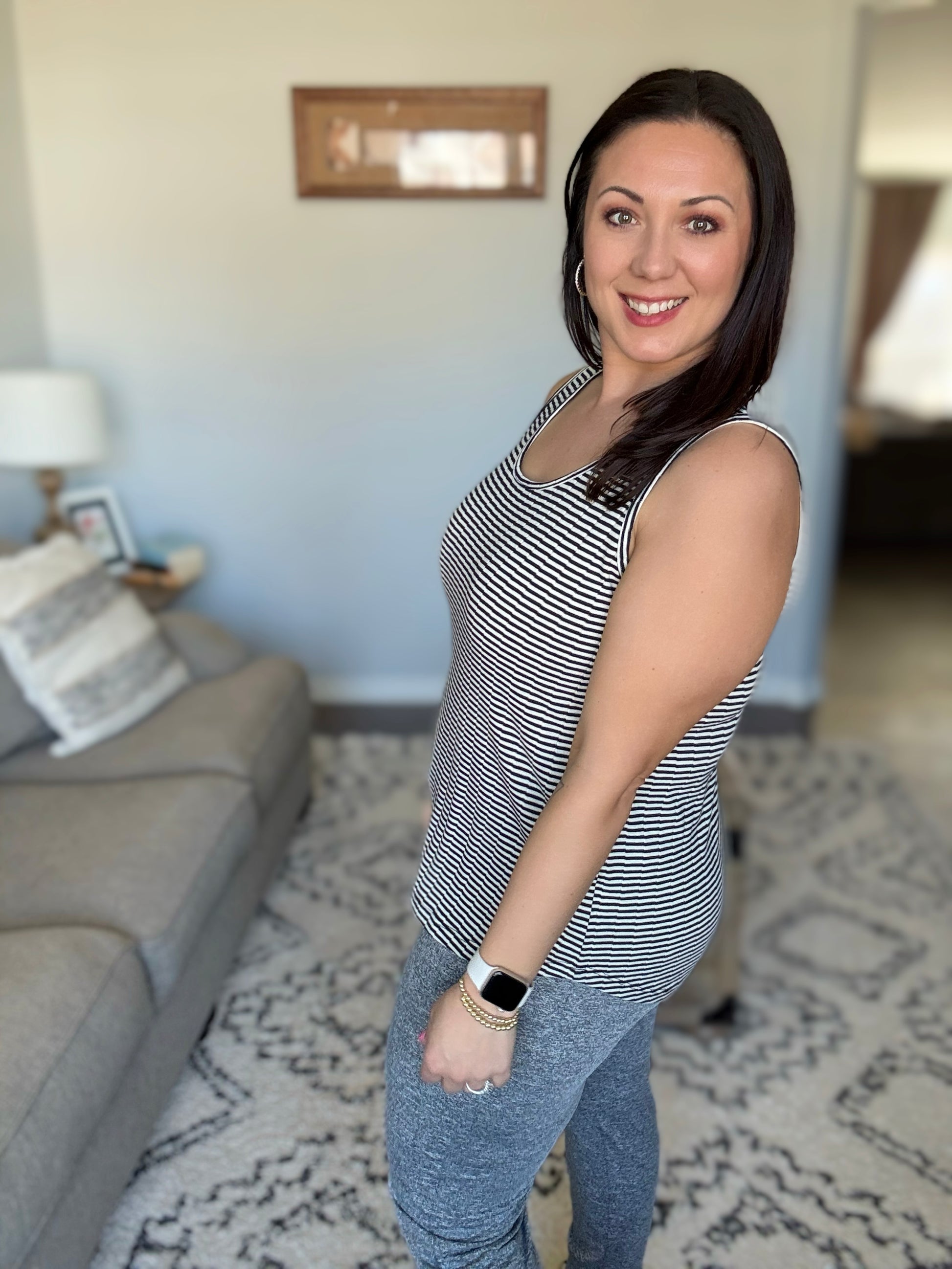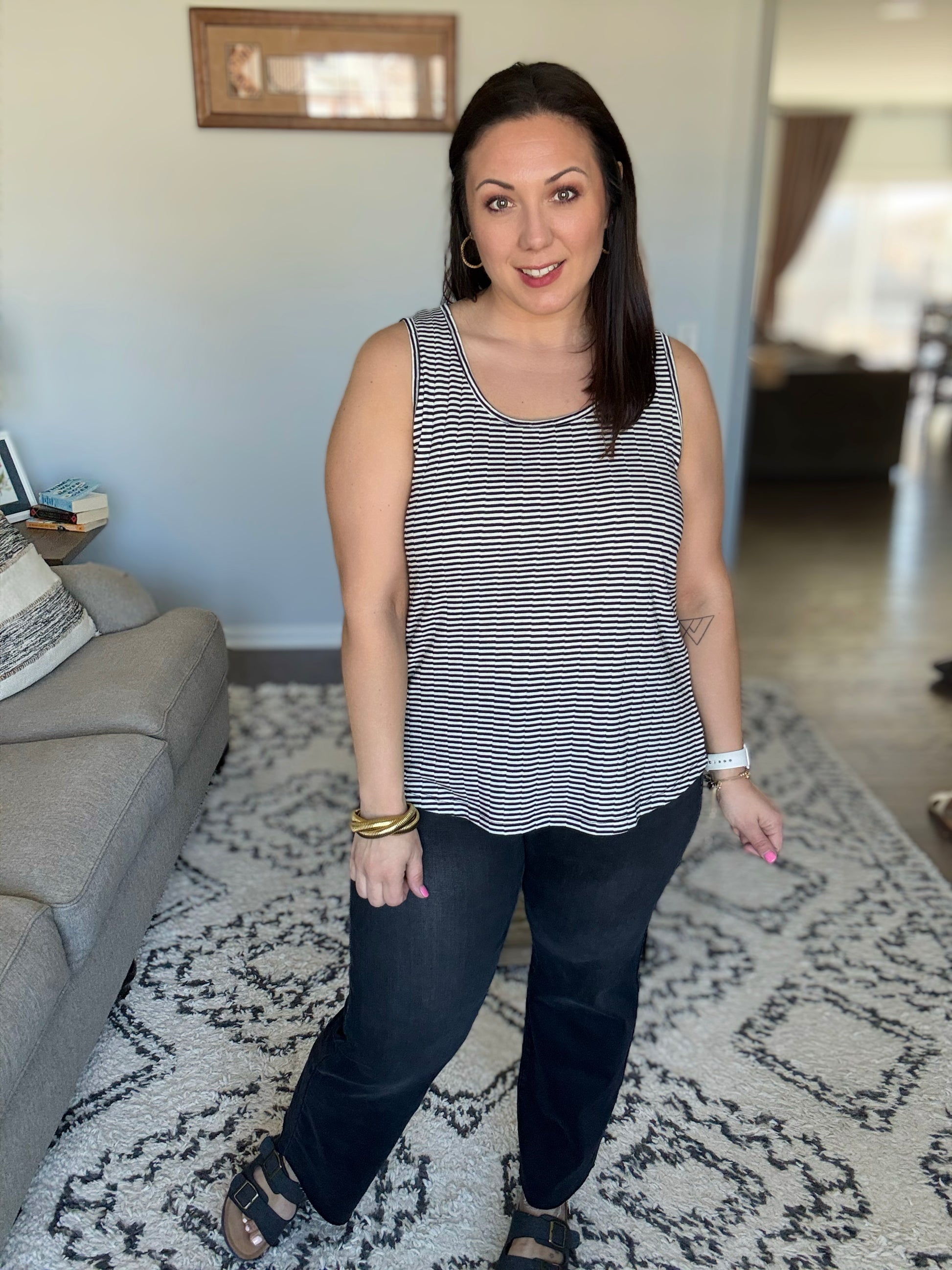 The Sandy Toes, Sunburned Nose Scoop Neck Tank is the perfect laid-back essential for sunny days and beach vibes. Made from a lightweight knit, this tank features a flattering scooped neckline and sleeveless design, keeping you cool and comfortable all day long. The scooped hem adds a touch of relaxed elegance, making it easy to pair with shorts, skirts, or your favorite jeans. Whether you're lounging by the beach or enjoying a casual day out, this tank is a must-have for effortless style.