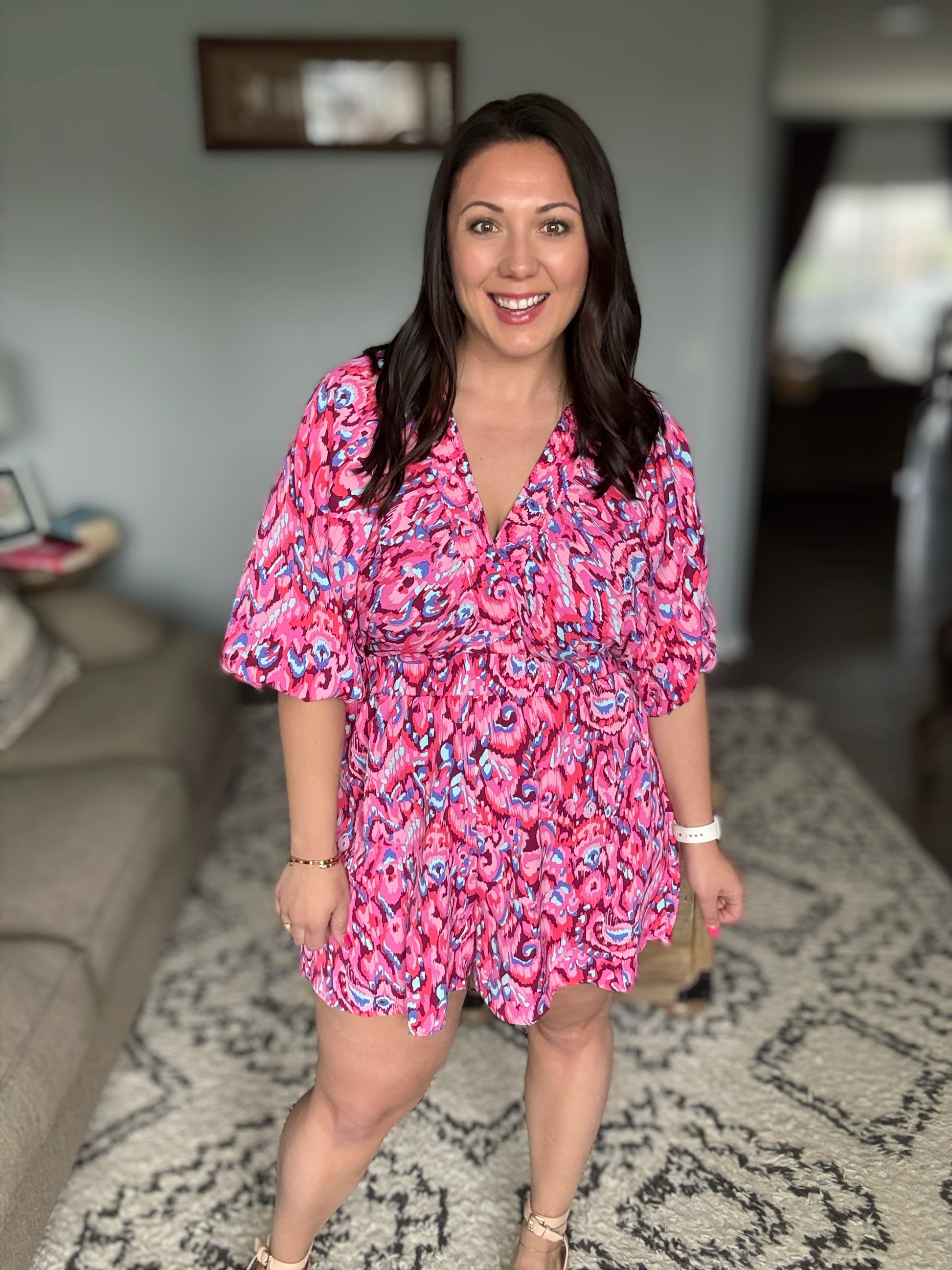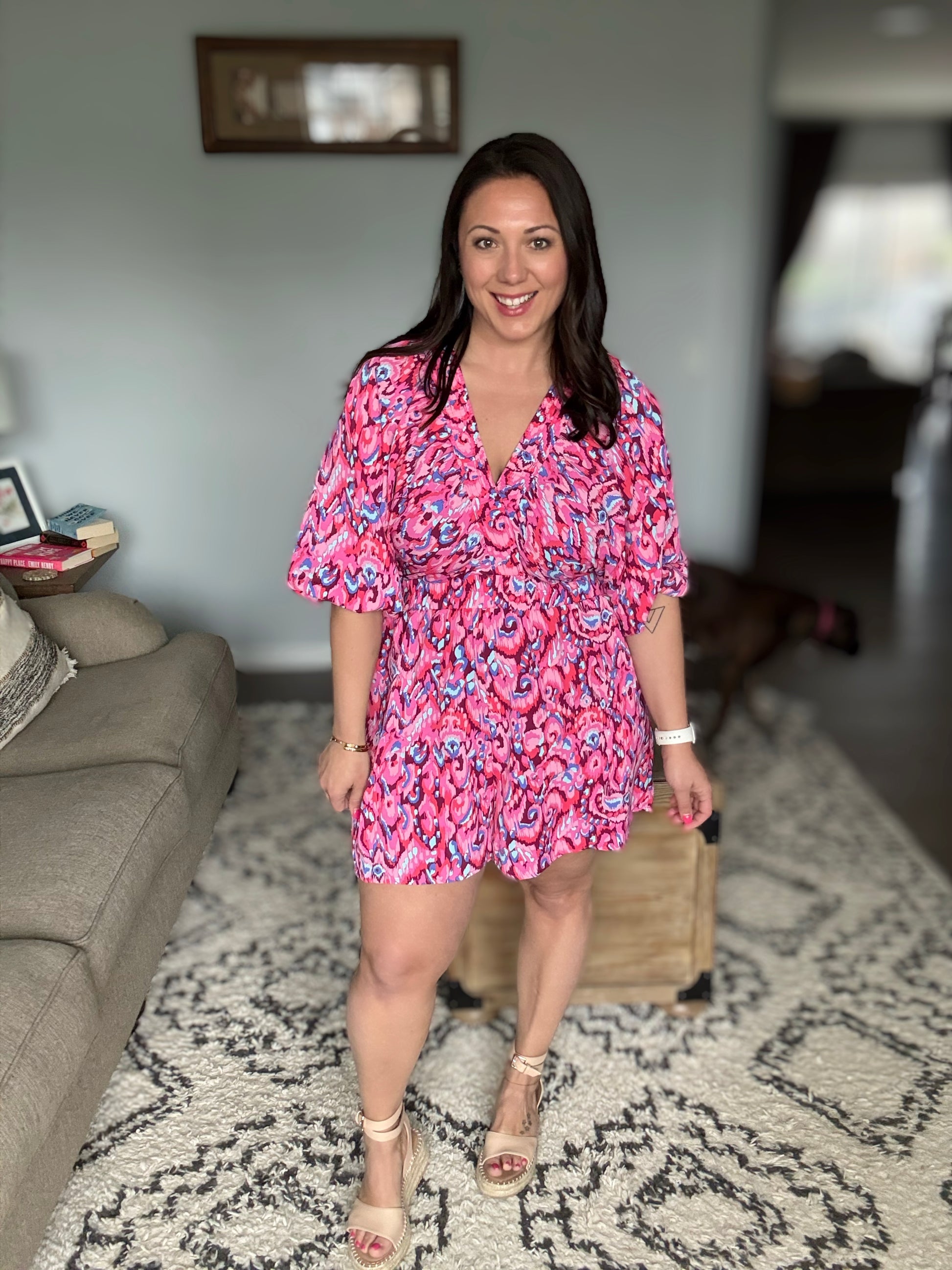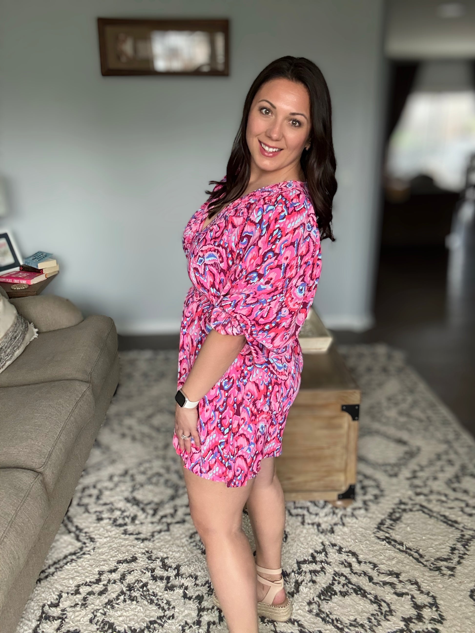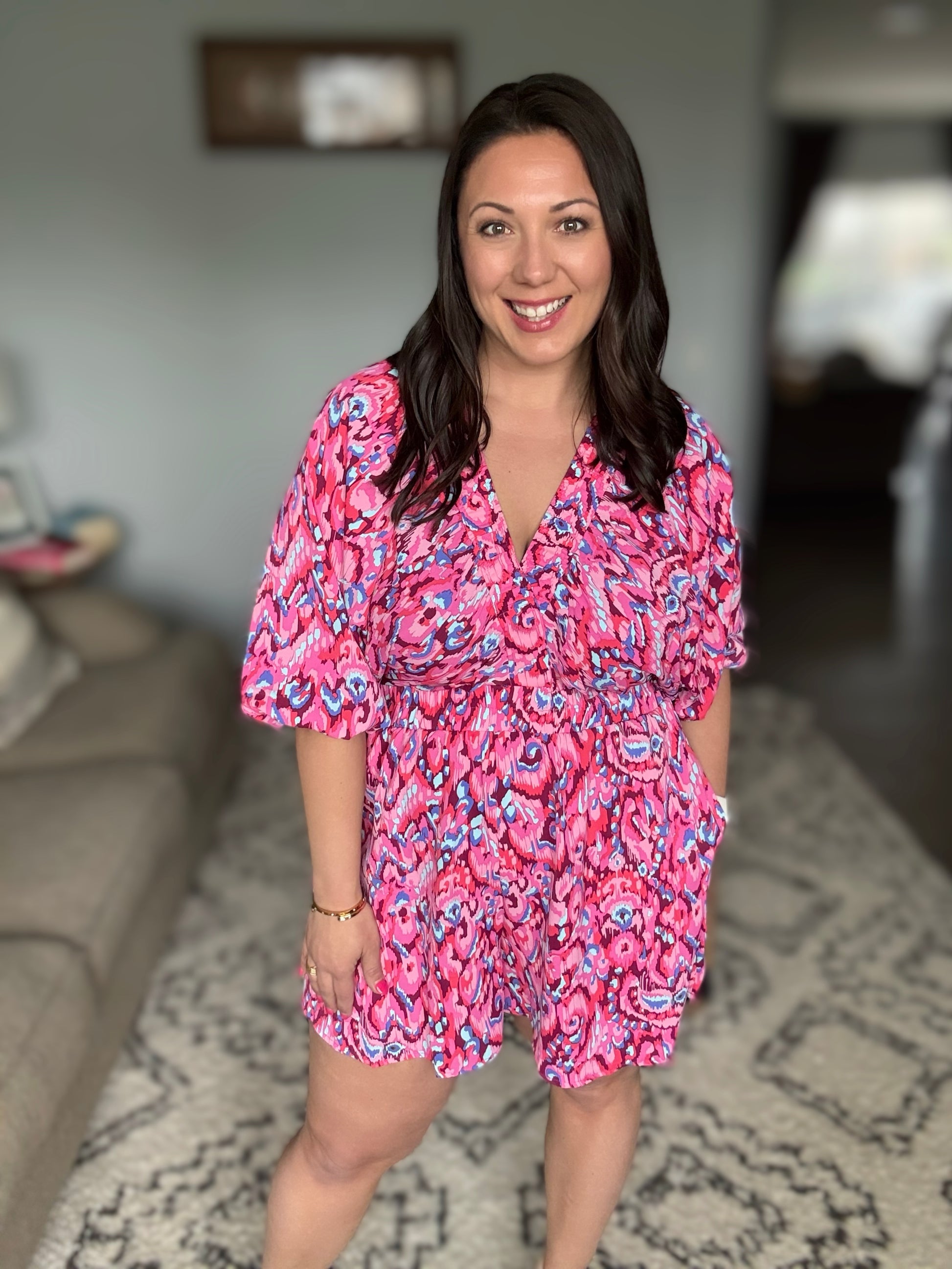 The Seems Okay Romper is a playful and stylish option for your wardrobe. Made from poplin woven fabric, it features a cross V-neckline and functional snap button closure, along with convenient side pockets. The dolman sleeve and cased elastic details add a touch of quirkiness to this romper. Perfect for a fun and carefree look!