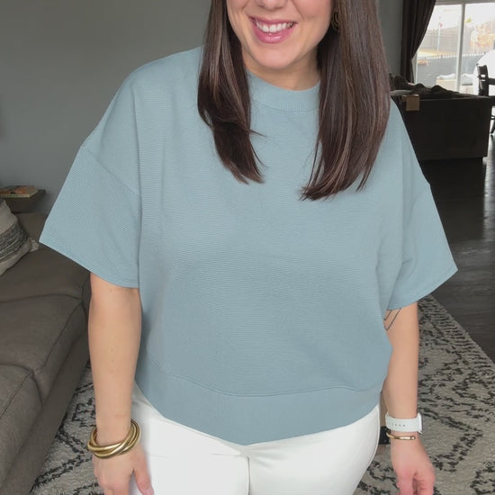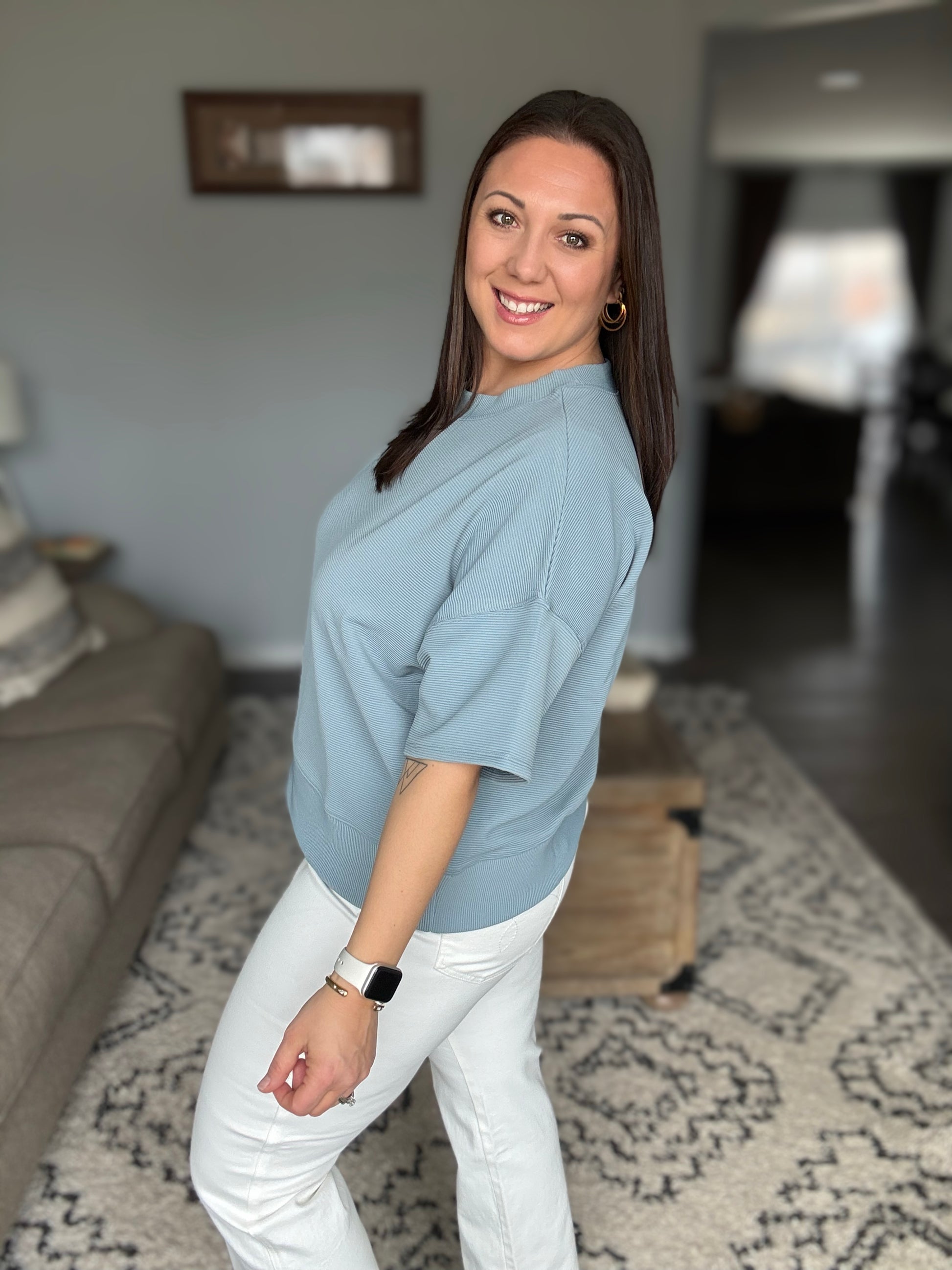 The Sense of Clarity Boxy Top is your new go-to for laid-back style that actually works. Crafted from stretchy ribbed knit, this top moves with you all day long. The drop shoulder cut and boxy silhouette deliver that effortlessly cool aesthetic, while the ribbed round neckline and banded hem add just enough structure to keep things looking intentional. Throw it on with jeans, layer it under a jacket, or pair it with your favorite bottoms—this versatile piece does it all.