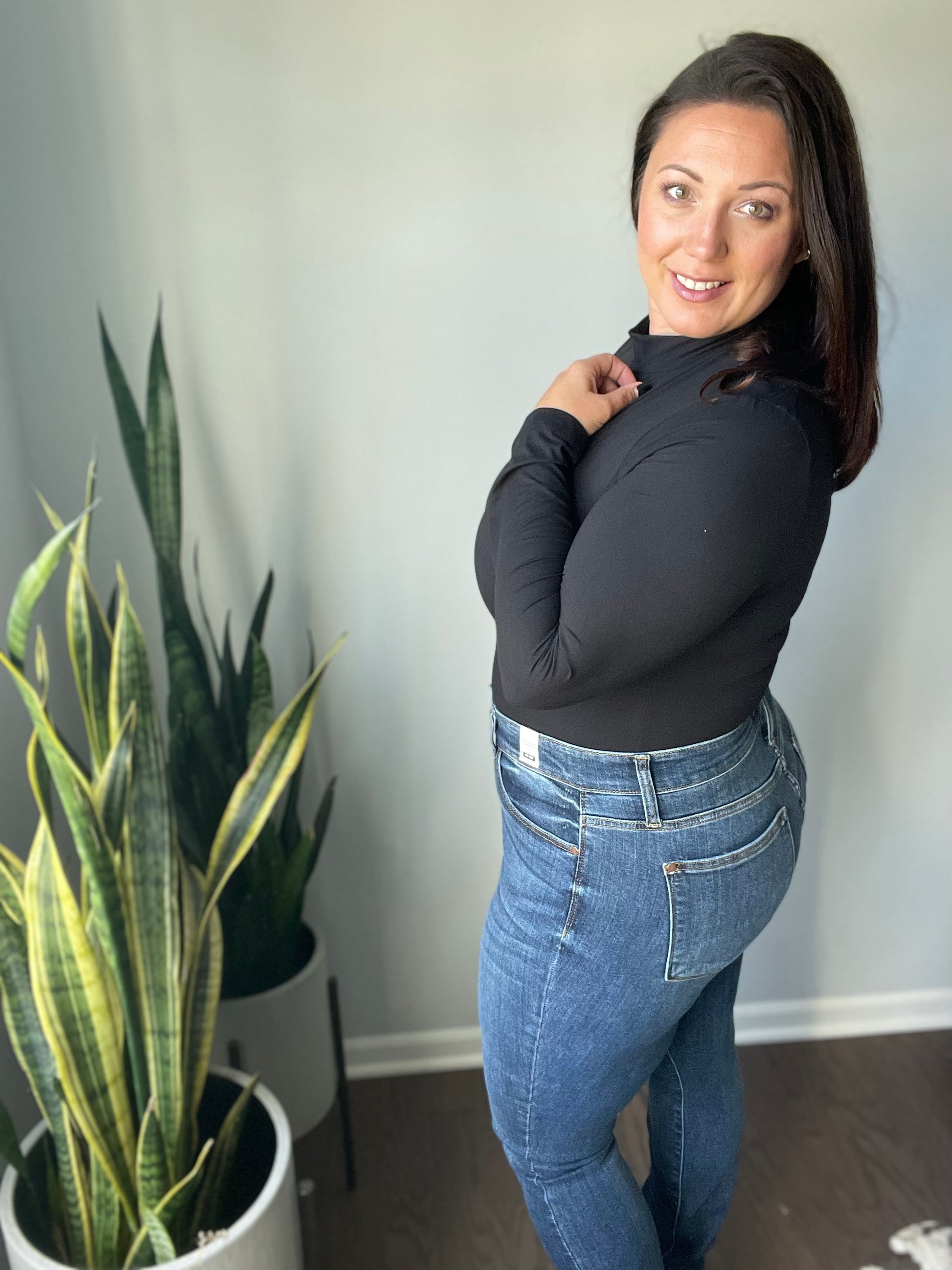 Easy Decision Mock Neck Bodysuit in Black
