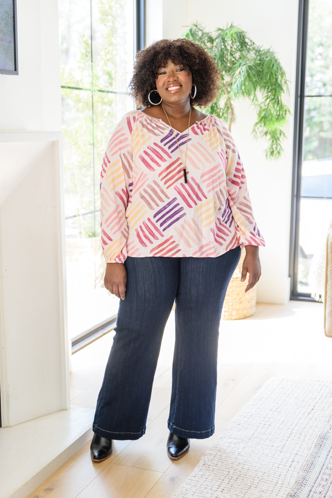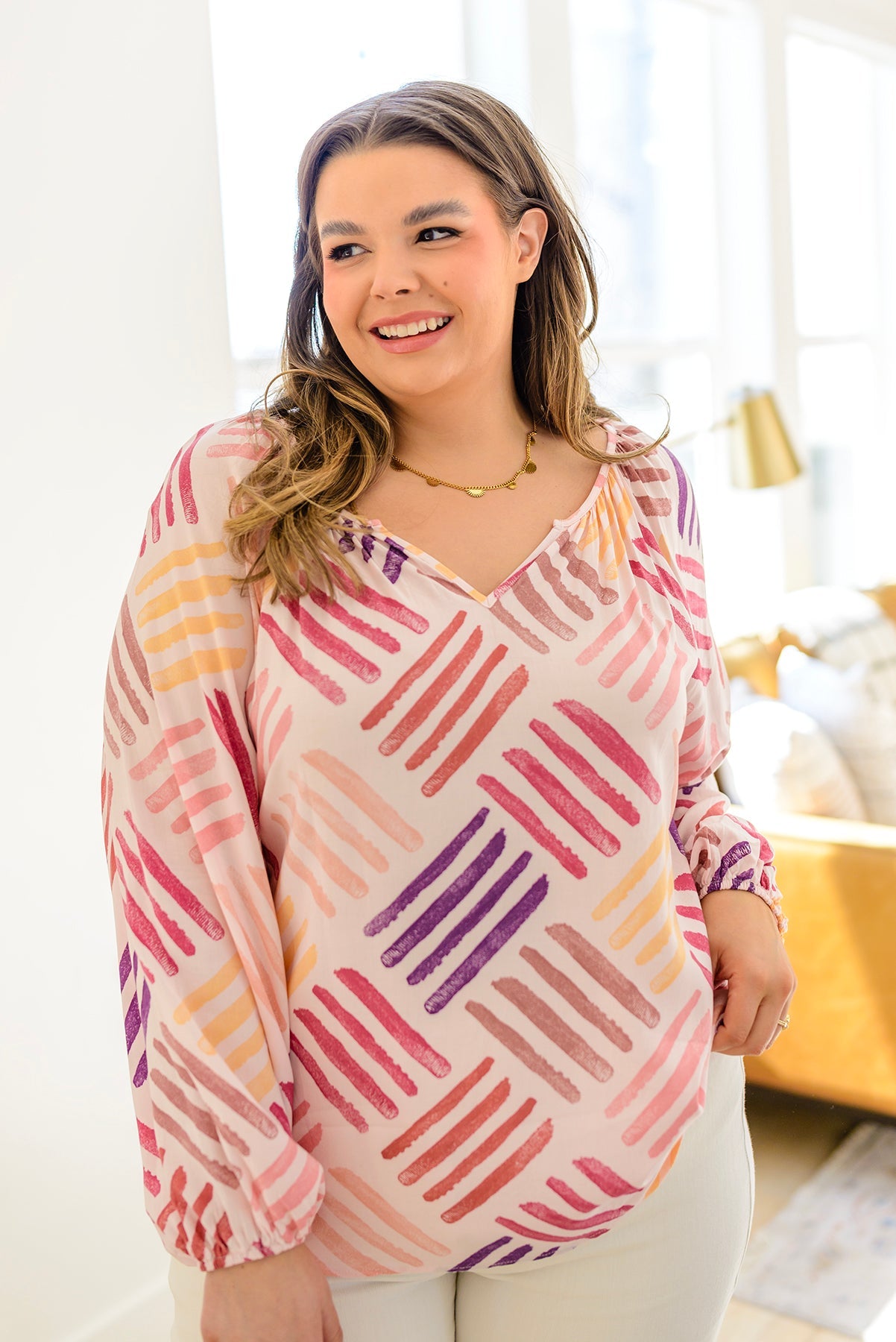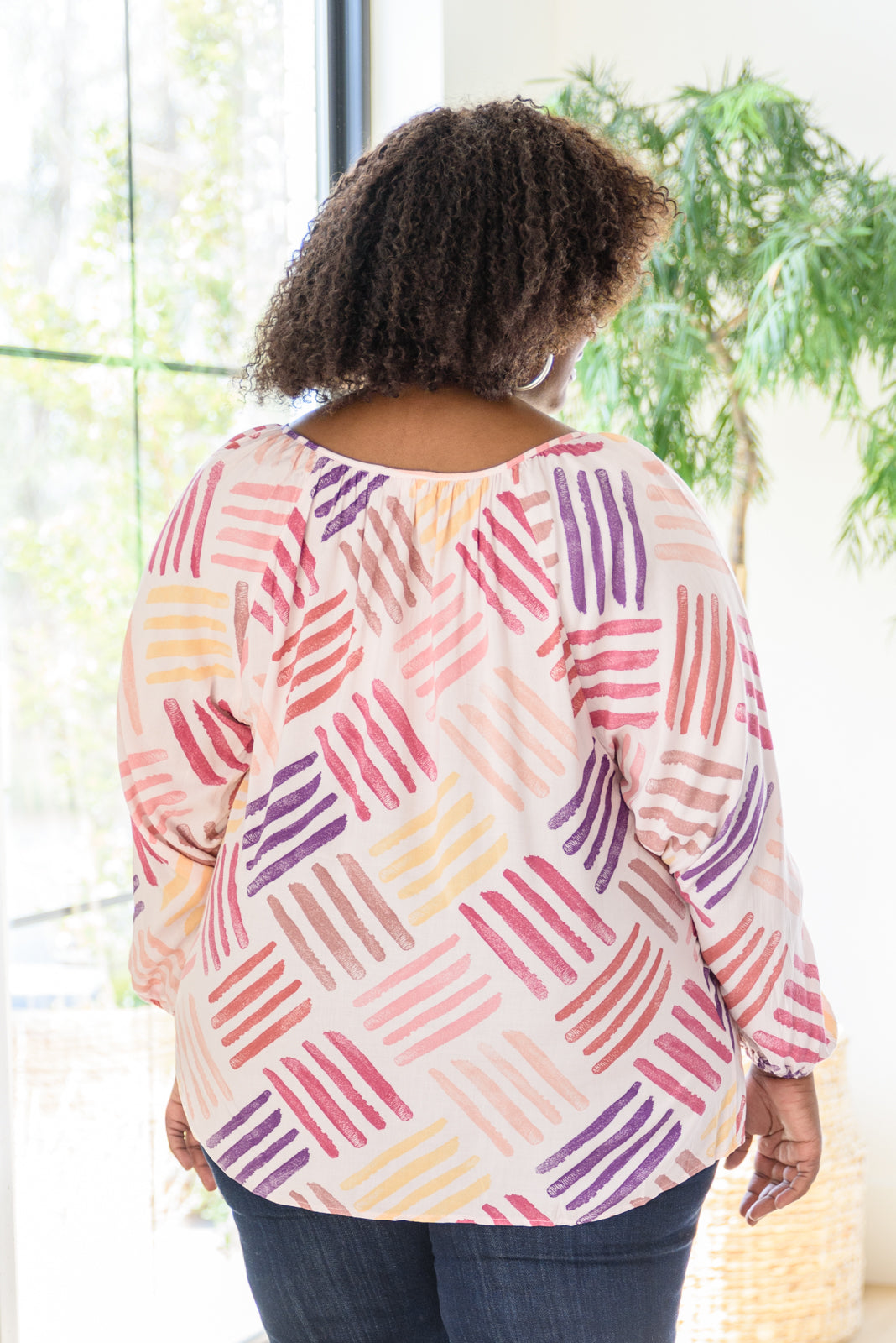 Just because fall is coming it doesn't mean the color can't stay! The Stamp Of Happiness Shirt is just what you need on a gloomy day. The colorful alternating striped pattern is a fun and trendy pop of color while the split neckline, long balloon sleeves and rounded hem are timeless details you'll love forever. This shirt is the perfect combo of what your closet it missing!