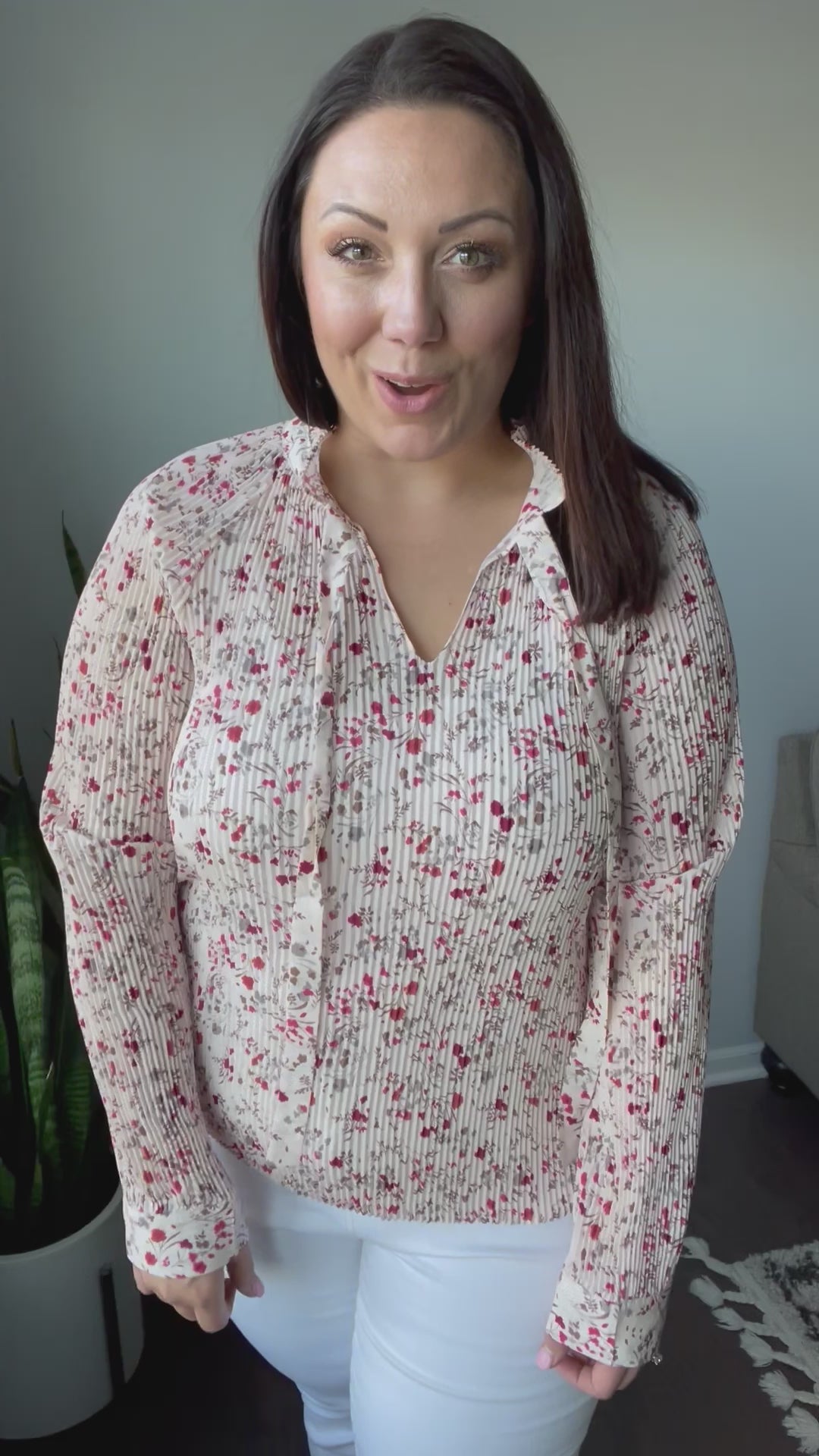 Stella Notched Neck Floral Long Sleeve Blouse