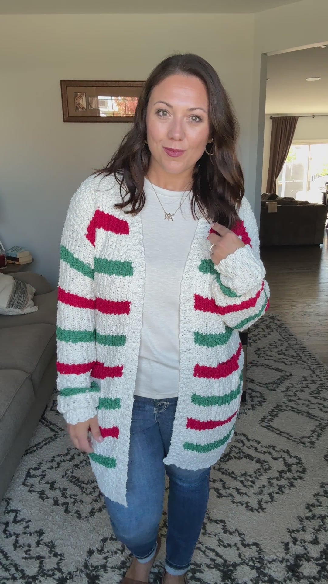 Michelle Mae Stripe Cardigan - Christmas Stripe