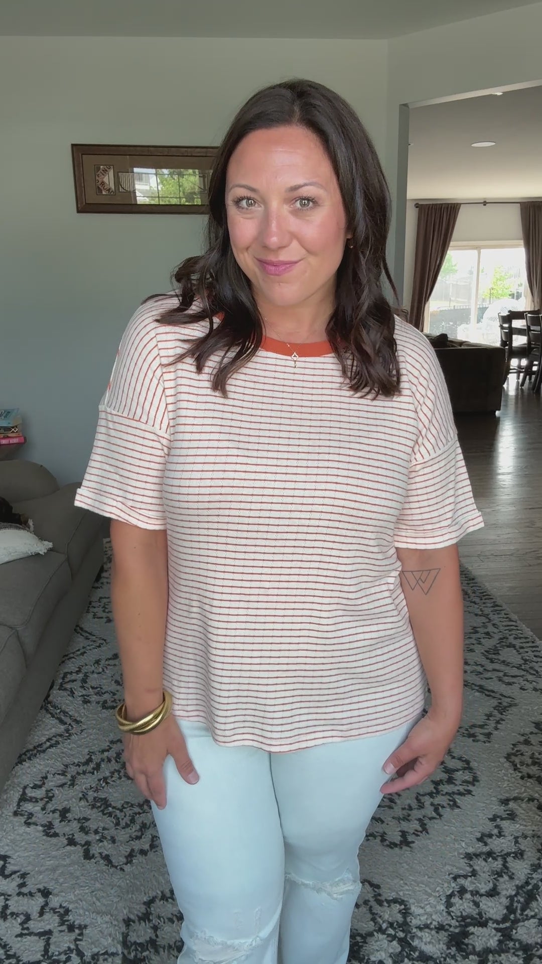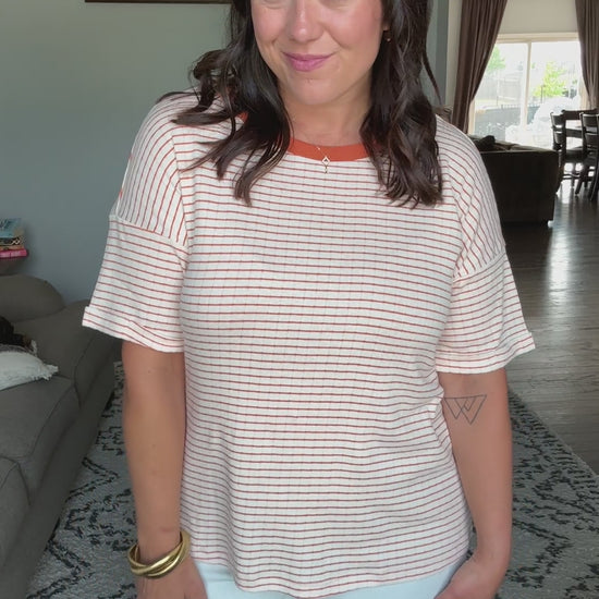 Sunbeam Shuffle Banded Round Neck Top in Orange