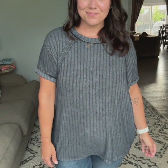 Sunday's Bestie Mineral Wash Top in Ash Black