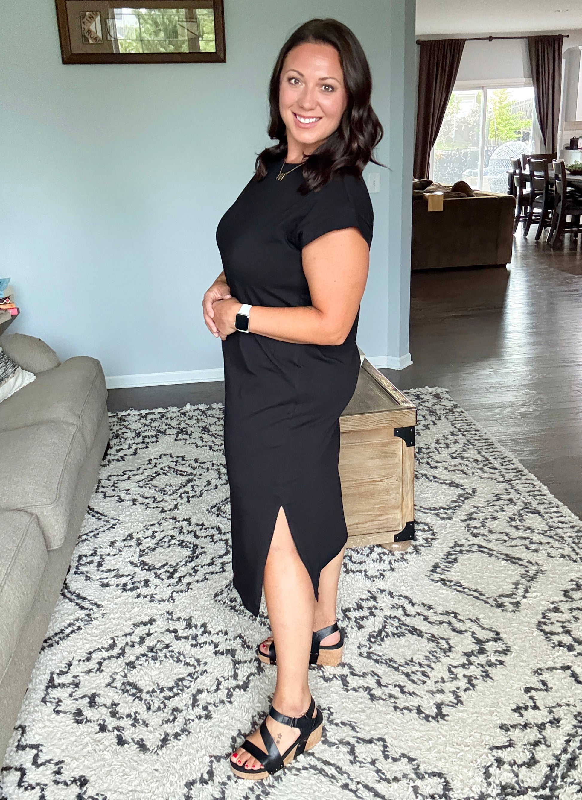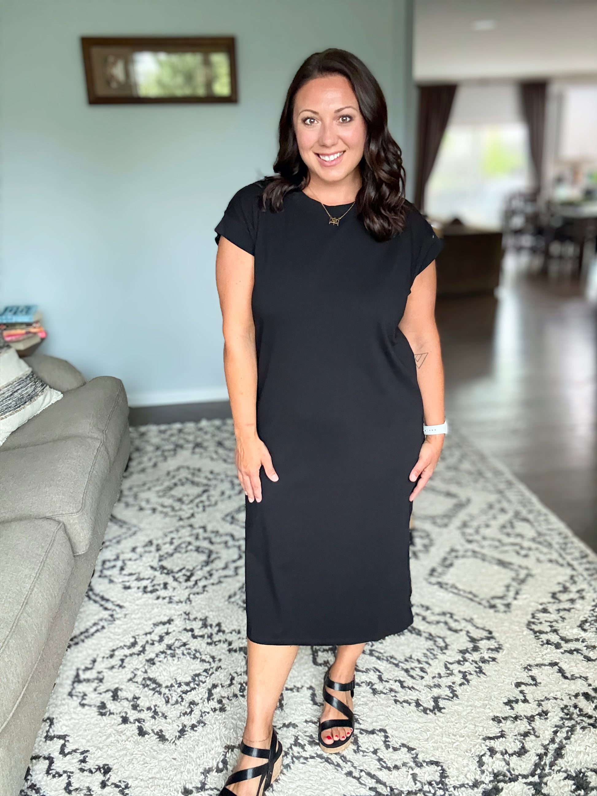 Effortless and ultra-comfy, this Sweet Like That Casual Dress is a go-to for laid-back days and beyond. With high stretch and a relaxed feel, it features a classic banded crew neckline, matching sleeve cuffs, and a subtle side slit for a touch of movement. Its simple yet stylish design makes it endlessly versatile — dress it up with statement accessories or keep it casual with sneakers. The styling possibilities are truly endless.