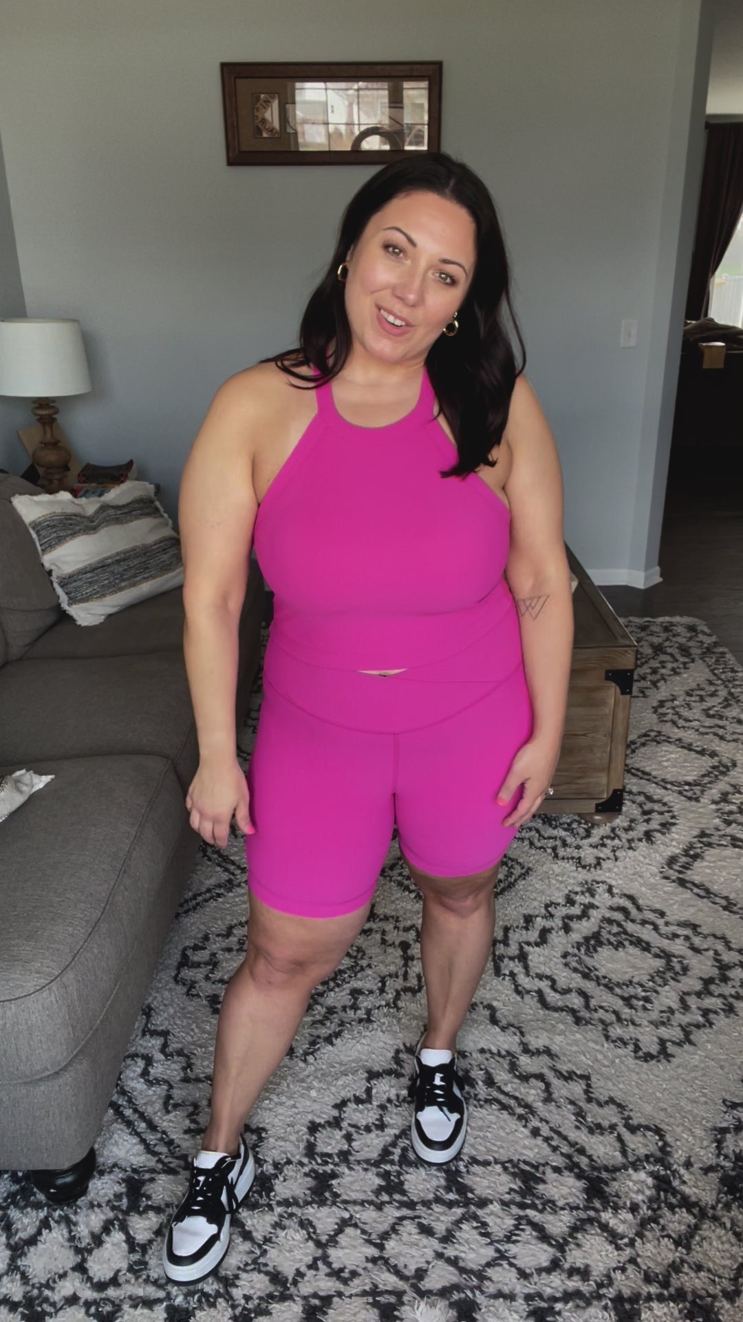 Wrap your body in sweet style with the Sweet Thang Cropped Tank in Pink. This ribbed tank offers high stretch for a comfortable fit, while the built-in bra and removable pads provide support and versatility. The high neck and racerback style add a touch of trendy flair. (It really checks all the boxes for a must-have tank!)