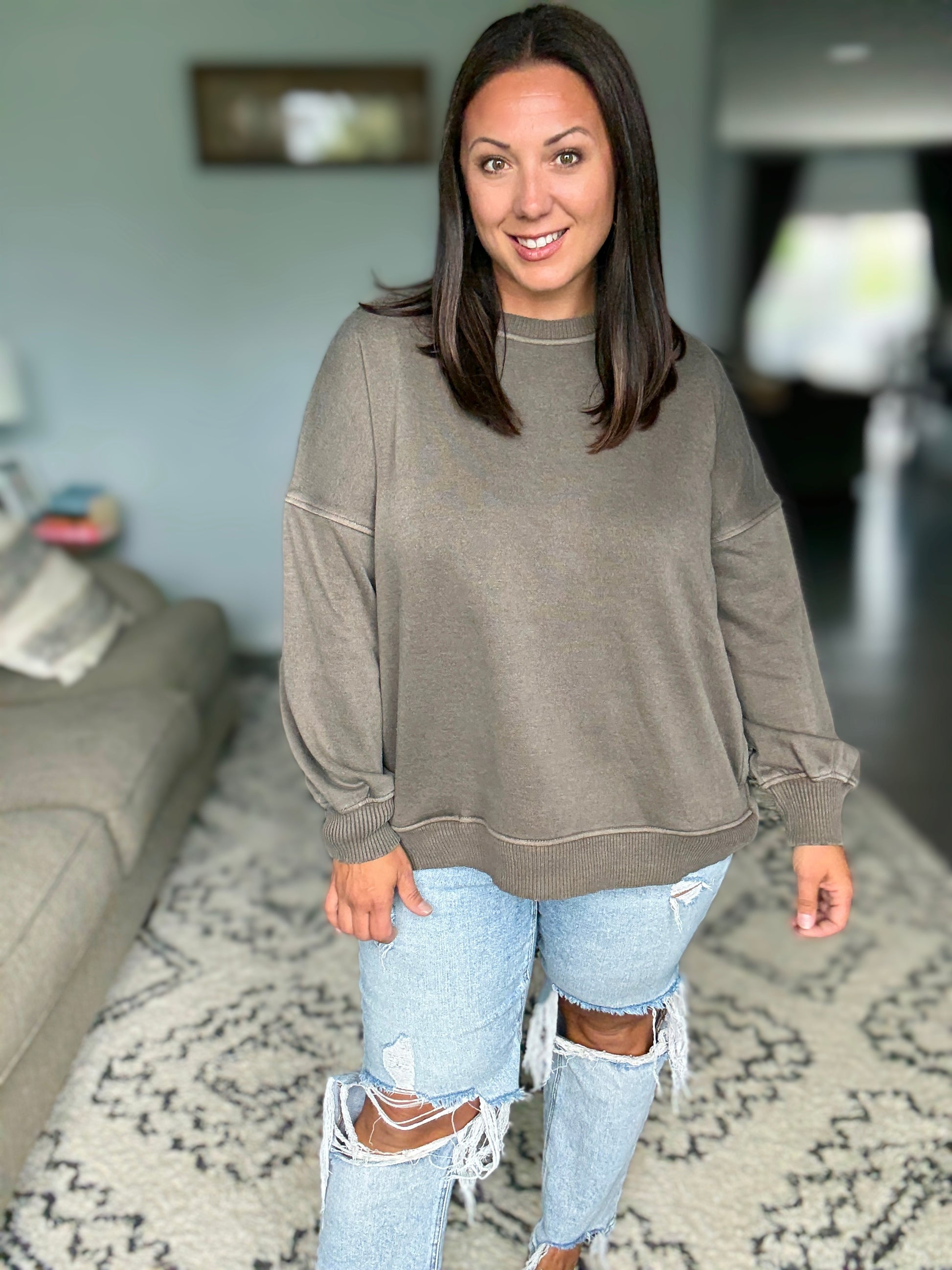 Talk Cozy to Me Stepped Hem Pullover in Brown