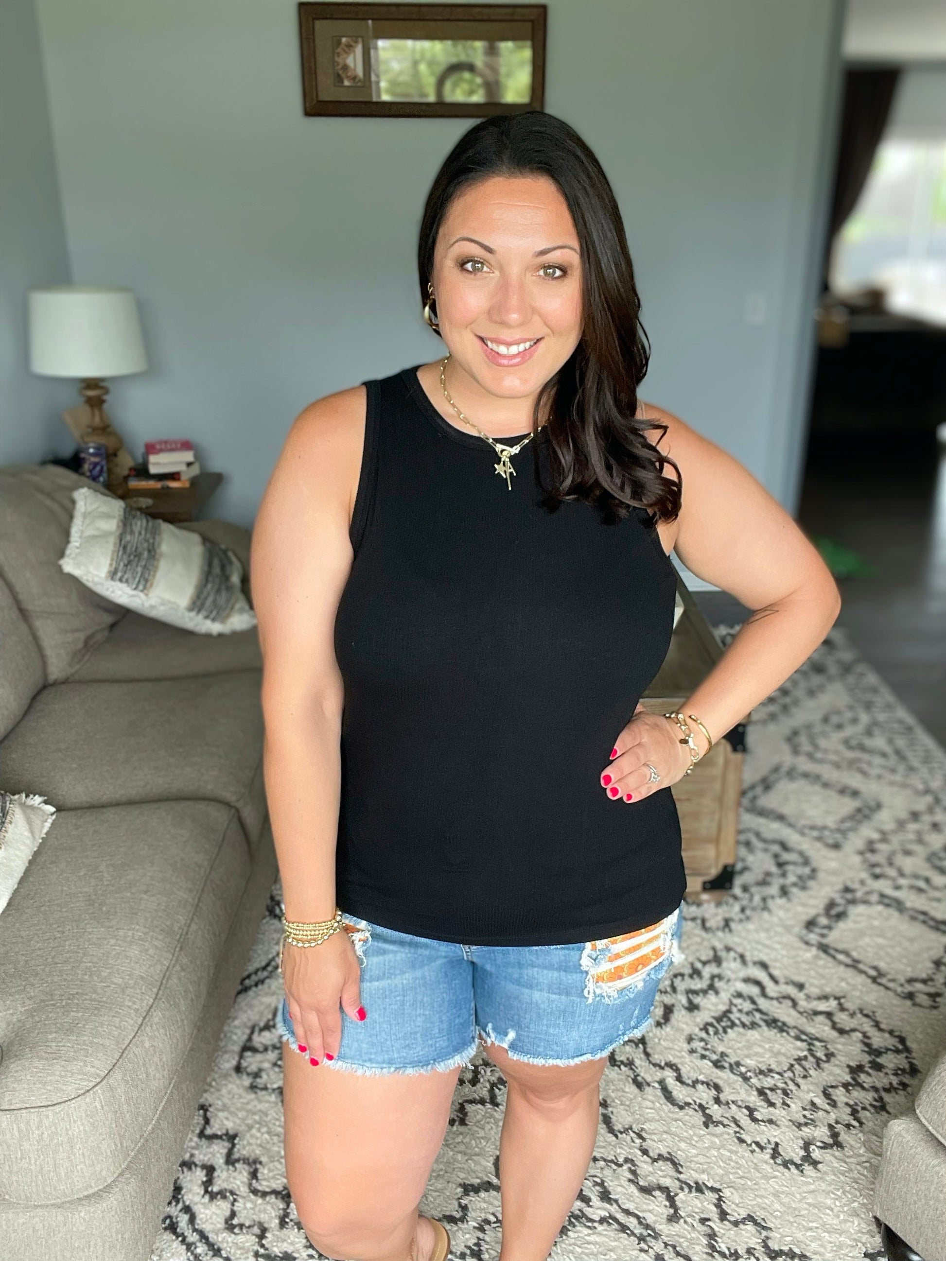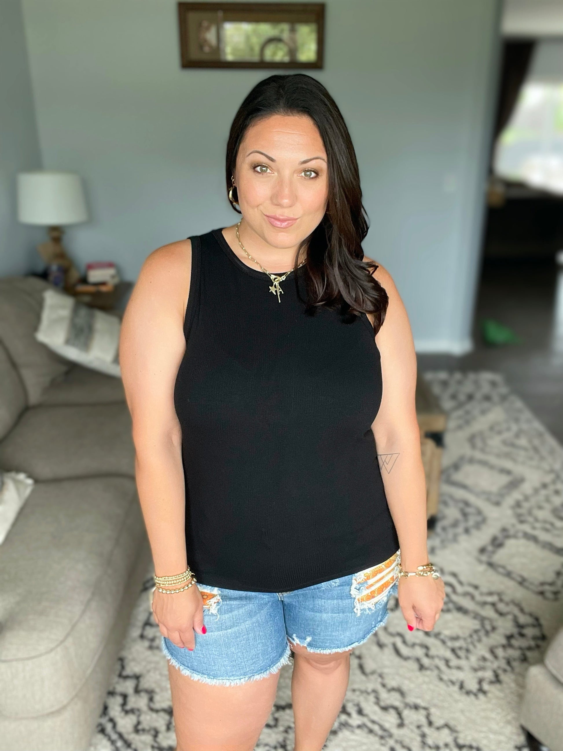Meet the Tara Ribbed Tank in classic black, a perfect blend of style and comfort! Featuring a micro ribbed texture and a flattering higher neckline, this tank adds a touch of fun to any outfit. It's a versatile must-have that effortlessly elevates your wardrobe.