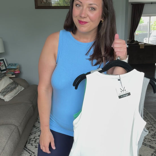 The Tara Ribbed Tank in white combines style and comfort effortlessly. With its micro ribbed texture and higher neckline, this tank offers a chic, versatile look for any occasion. Perfect for layering or wearing solo, it's a must-have in your wardrobe.