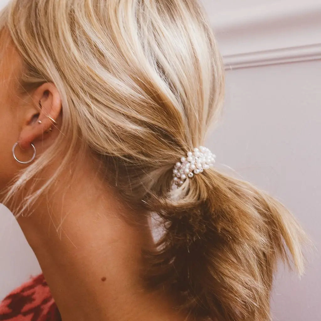 Omg omg omg omg I am in love. This pearl ponytail holder is the cutest thing to take your ponytail to the next level. It's a stretchy ponytail with the pearls attached so you can have the fanciest, cutest ponytail ever. I am taking one for my stash at this very moment.