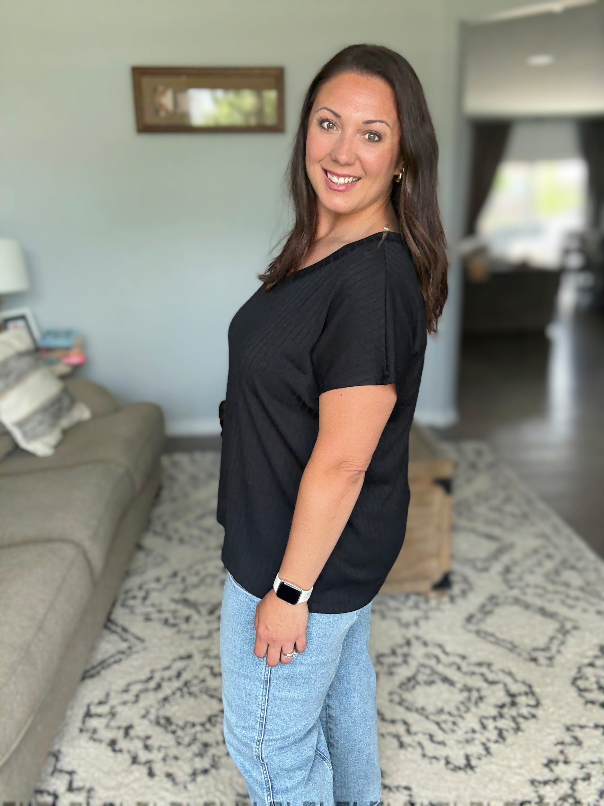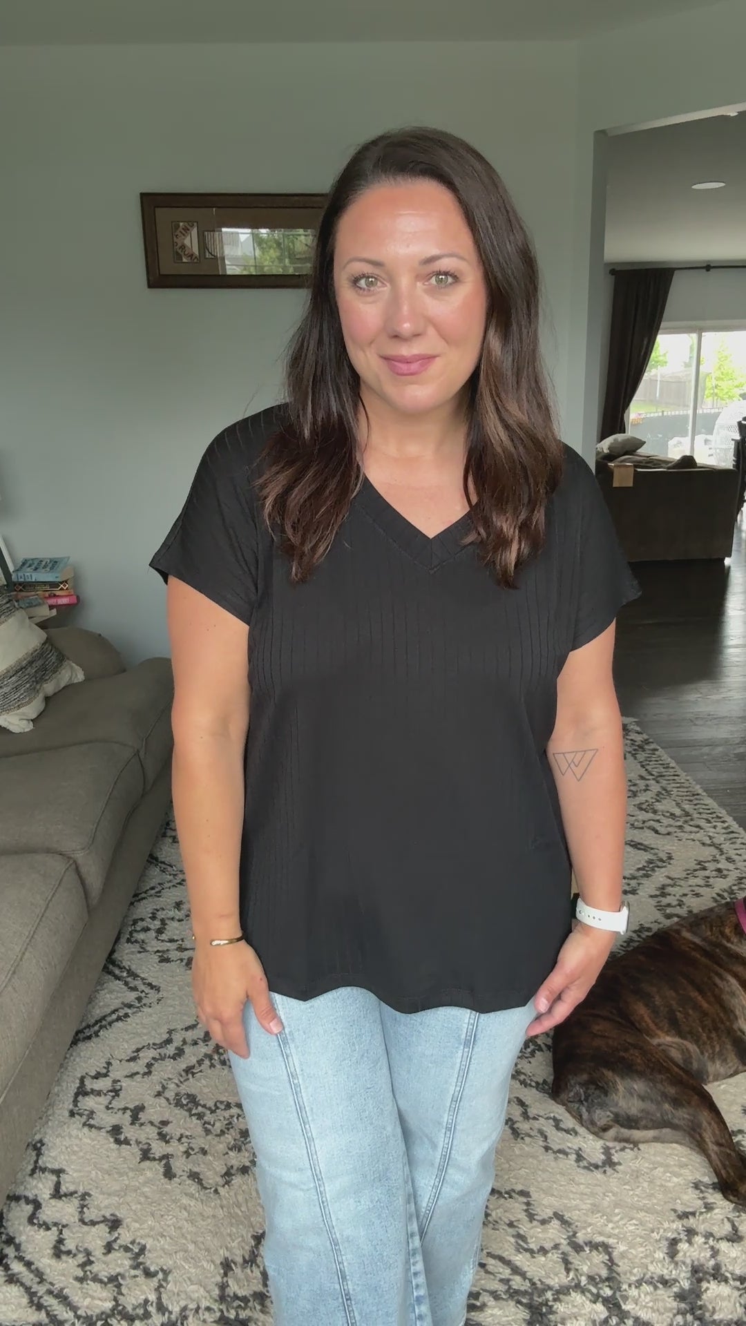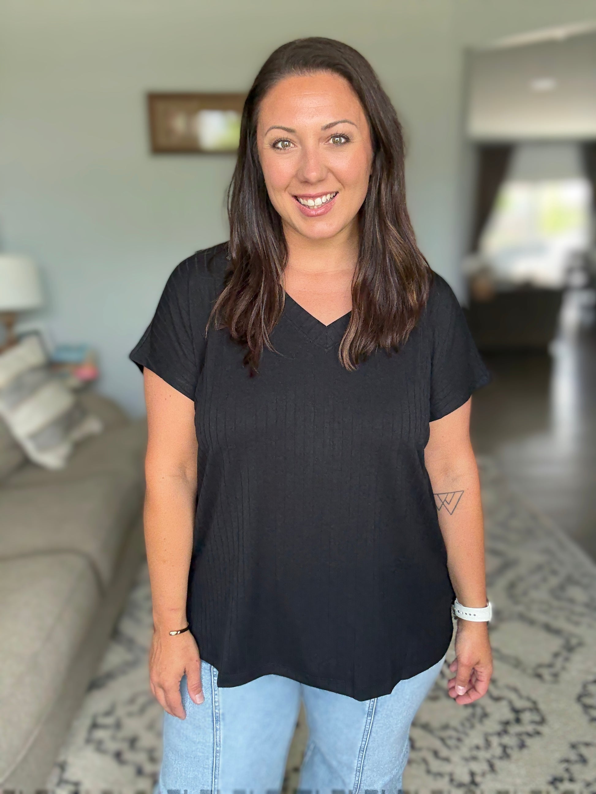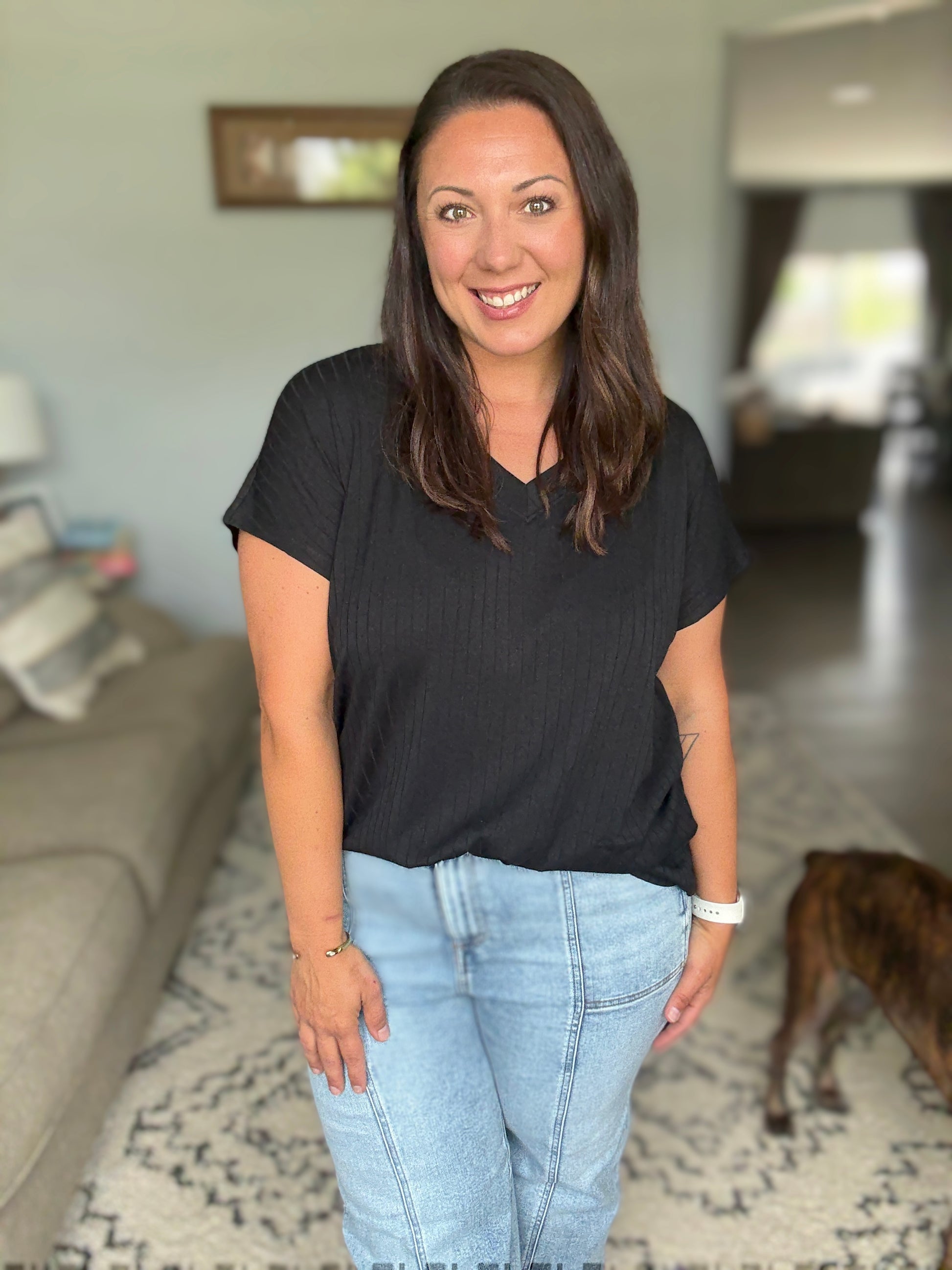 Top Shelf Basic V-Neck Ribbed Tee in Black