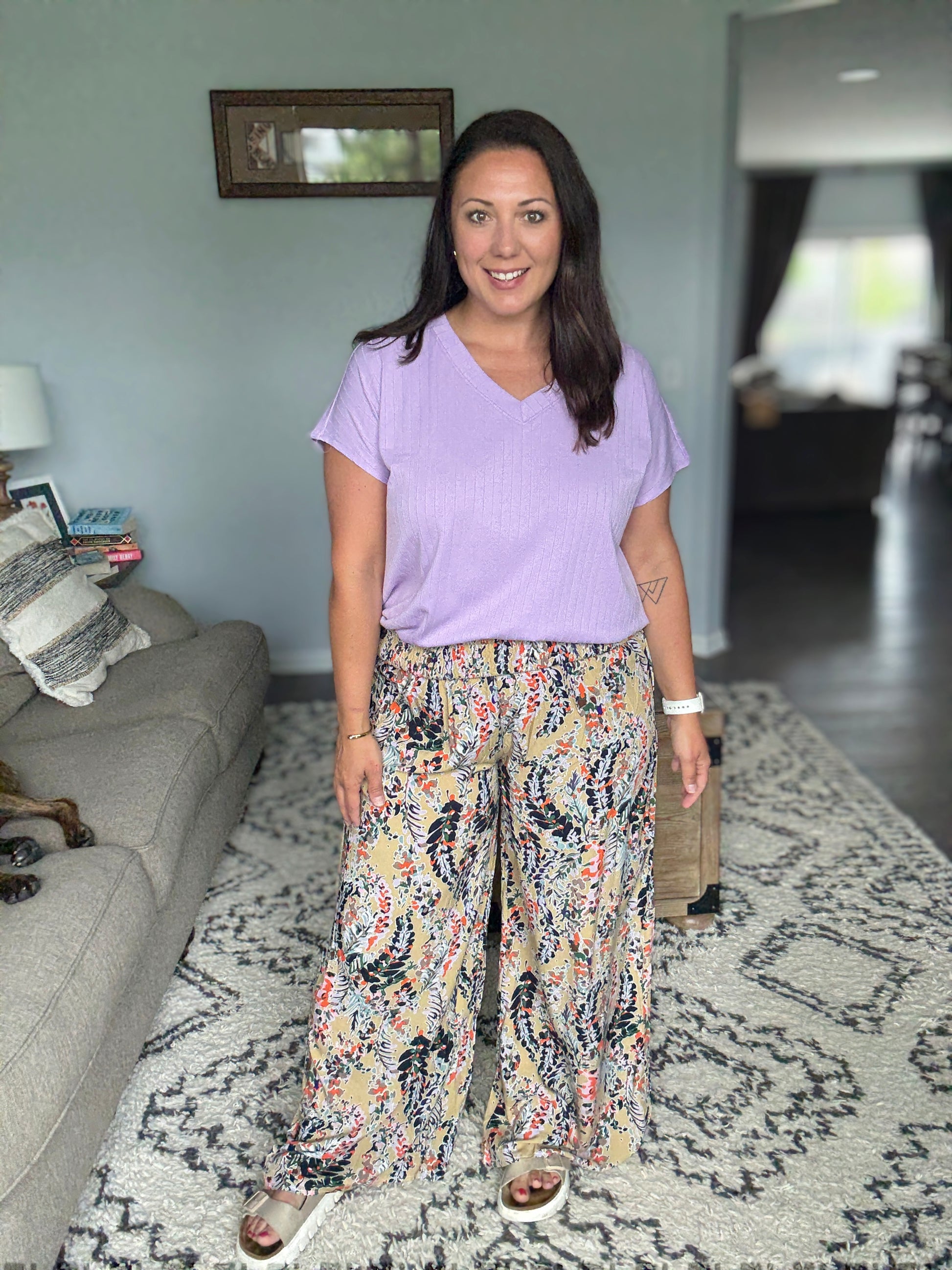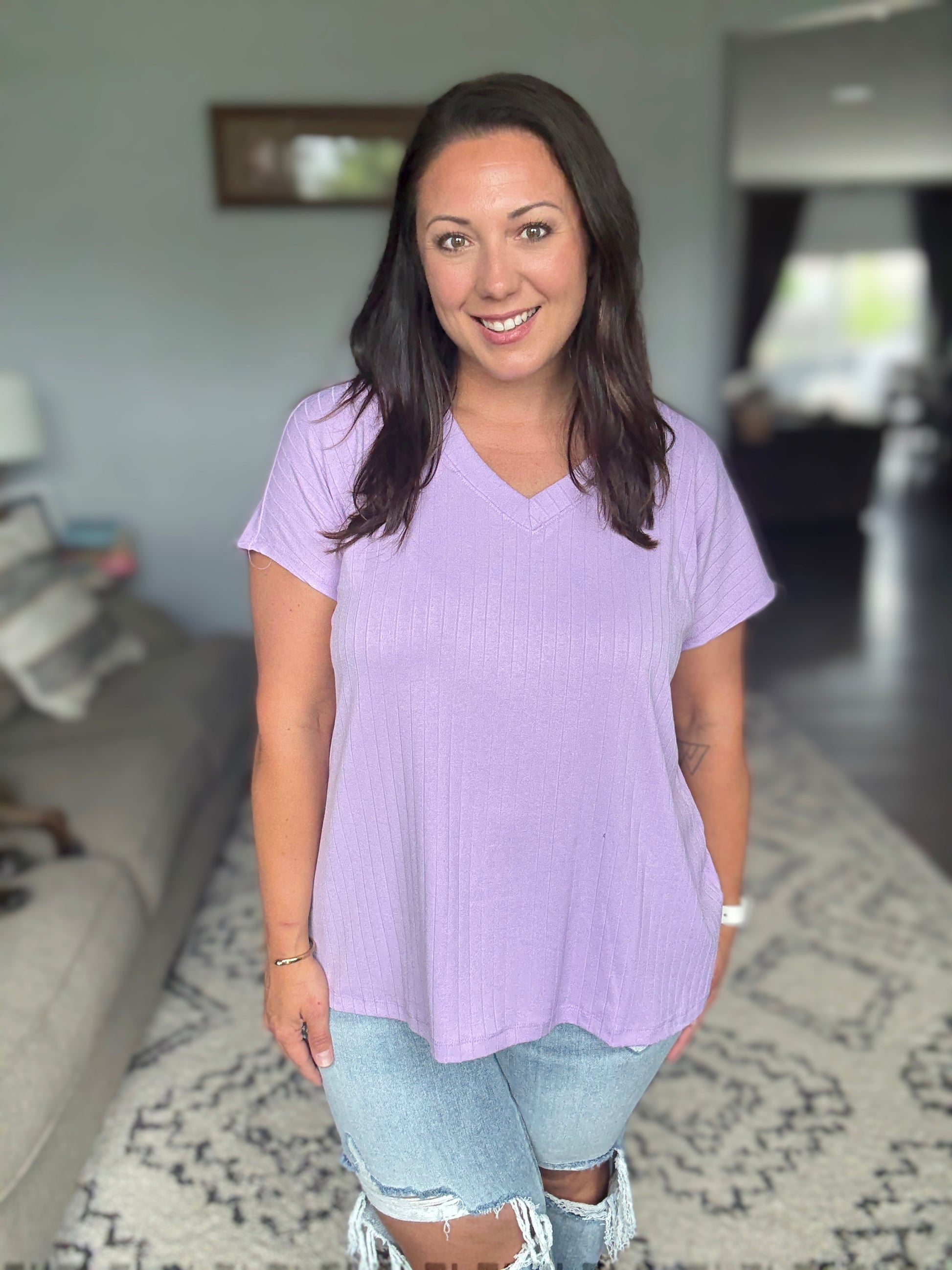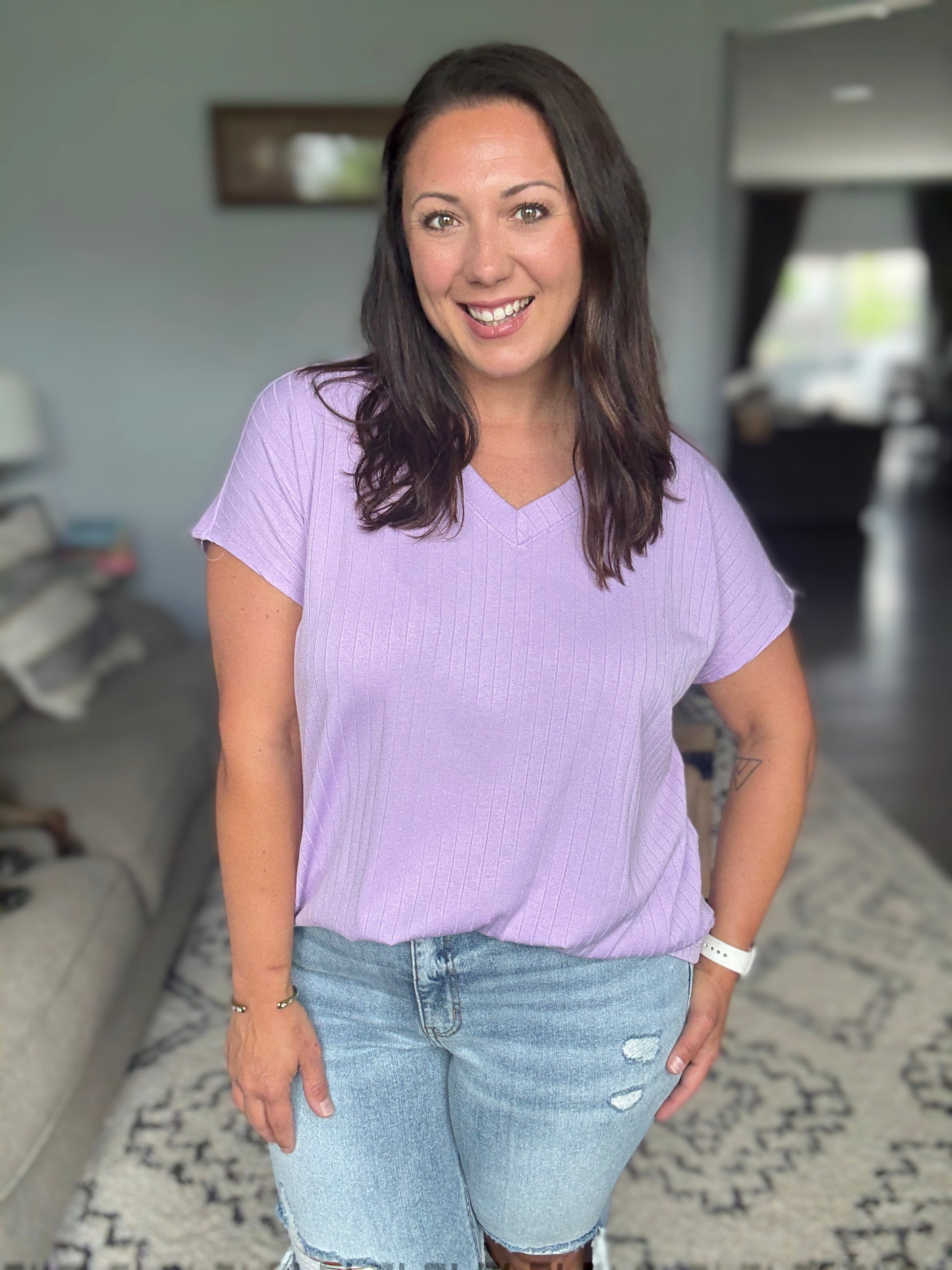 Top Shelf Basic V-Neck Ribbed Tee in Lavender