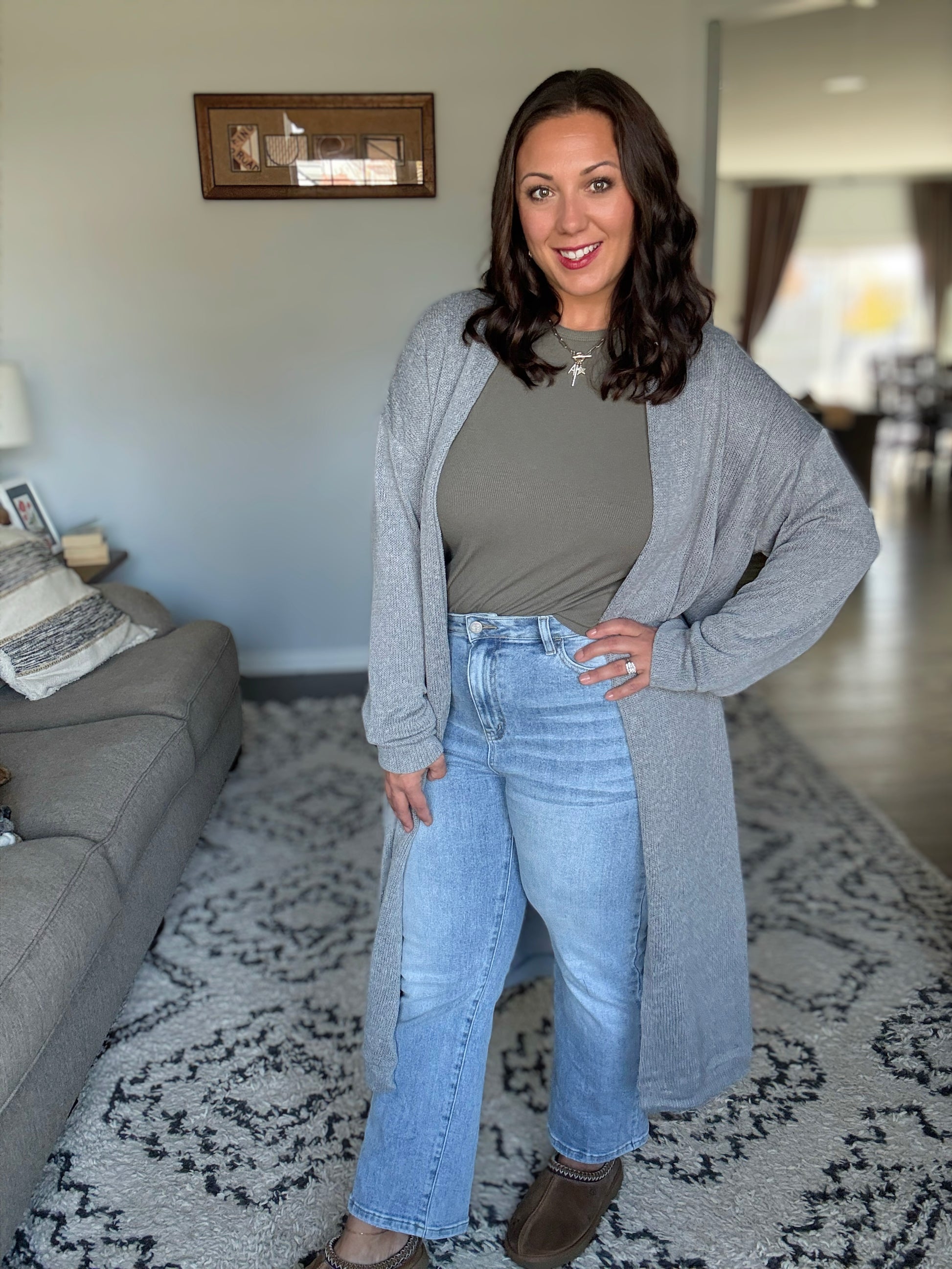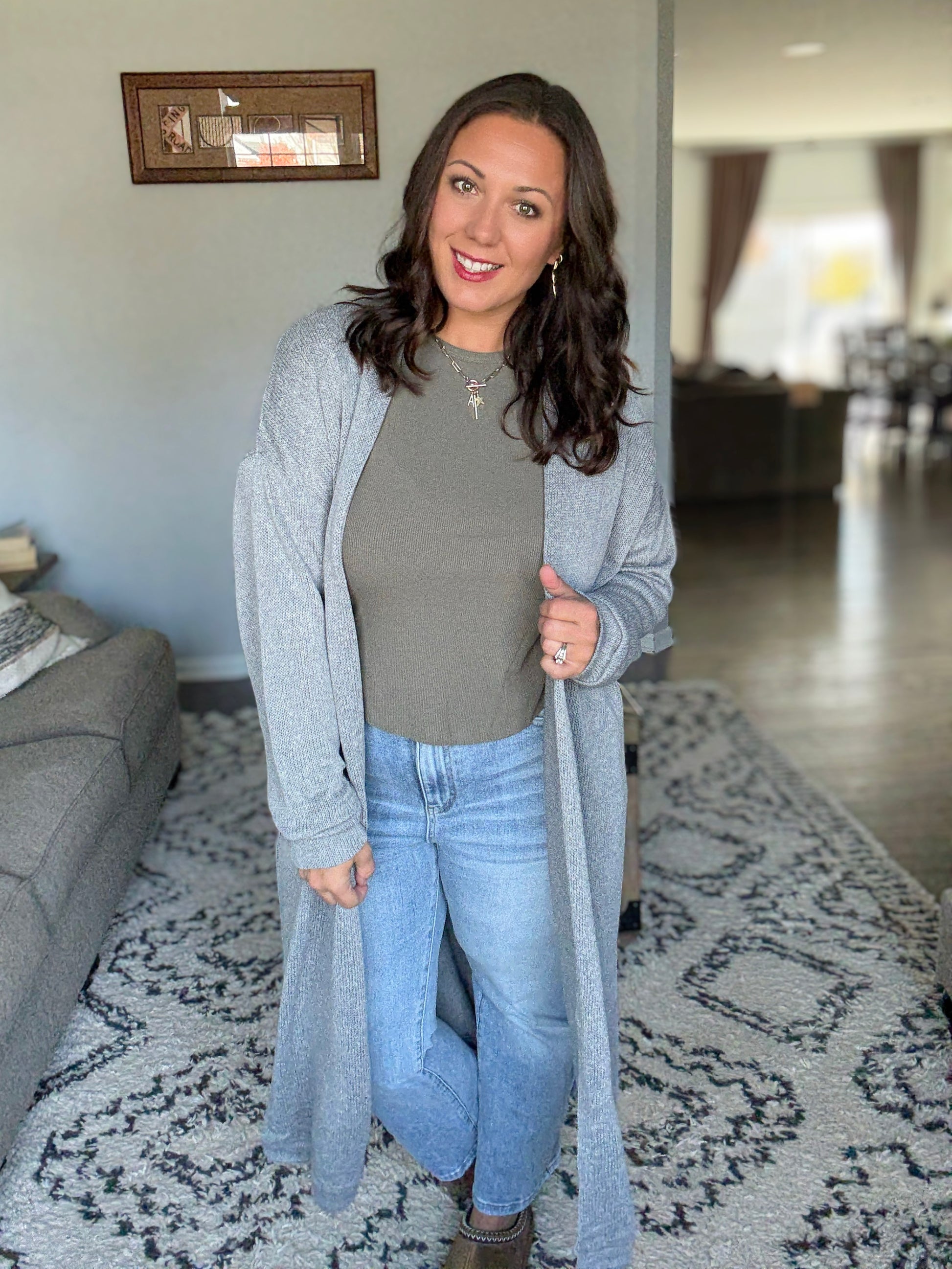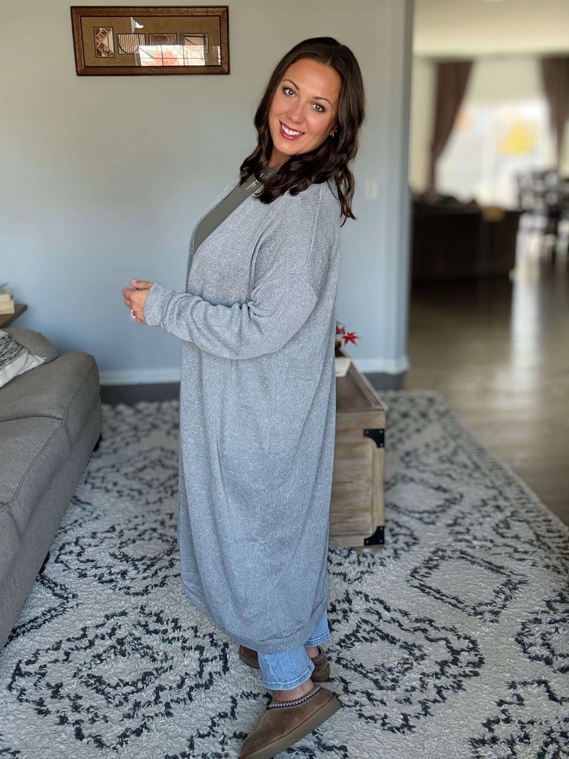 Travel Hideaway Open Front Duster Cardigan in Soft Grey