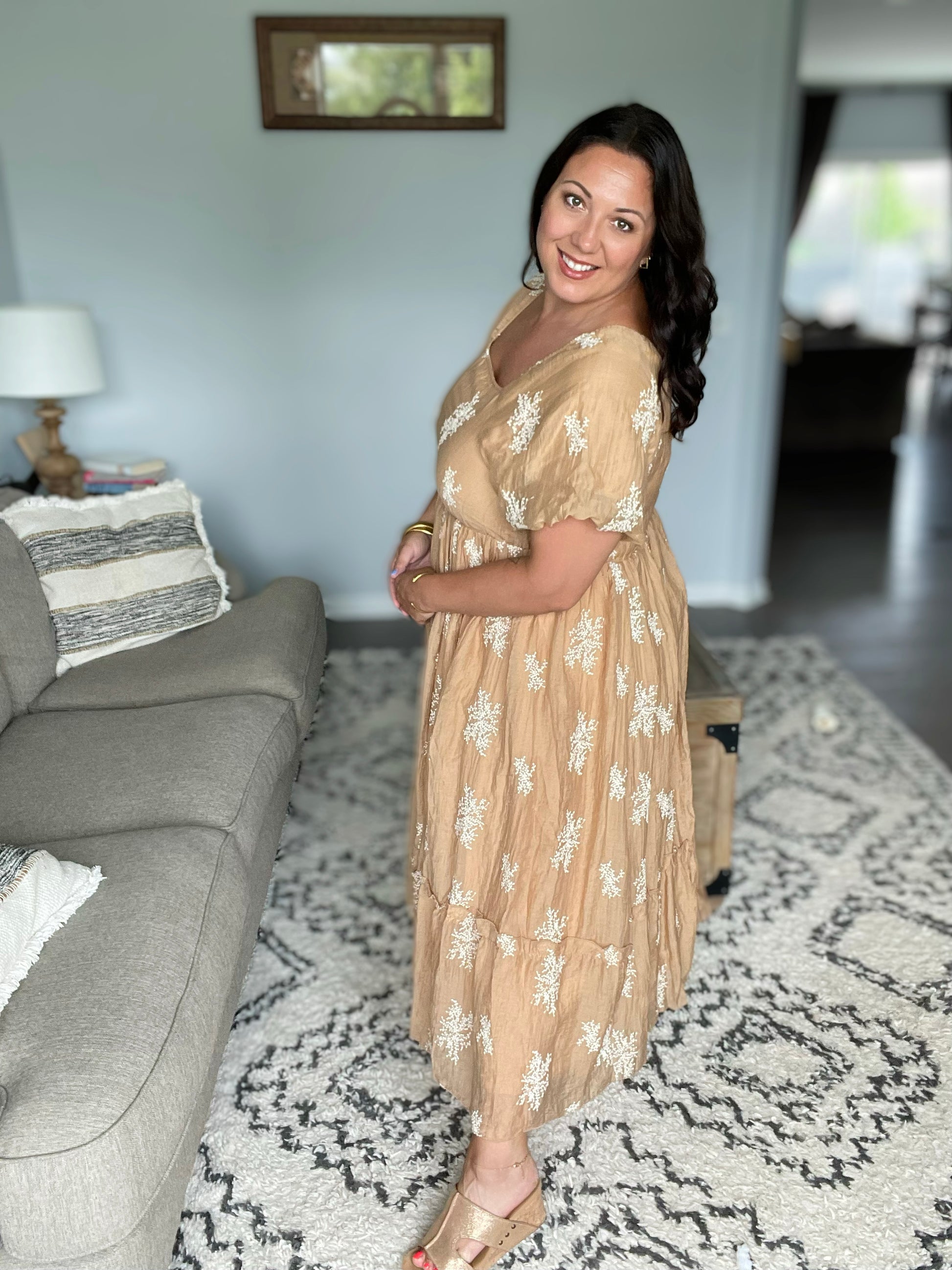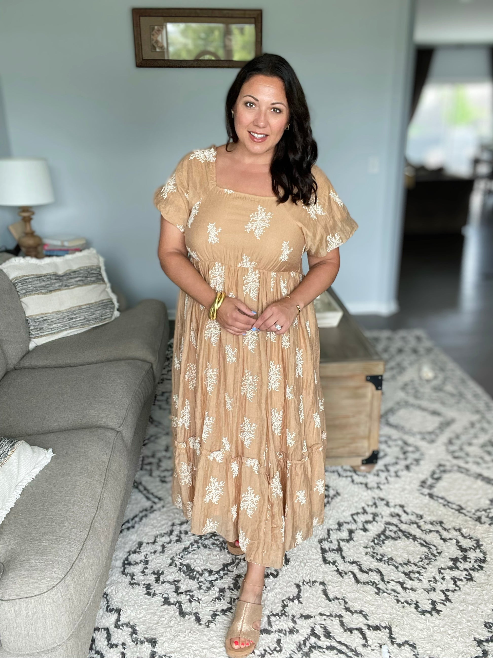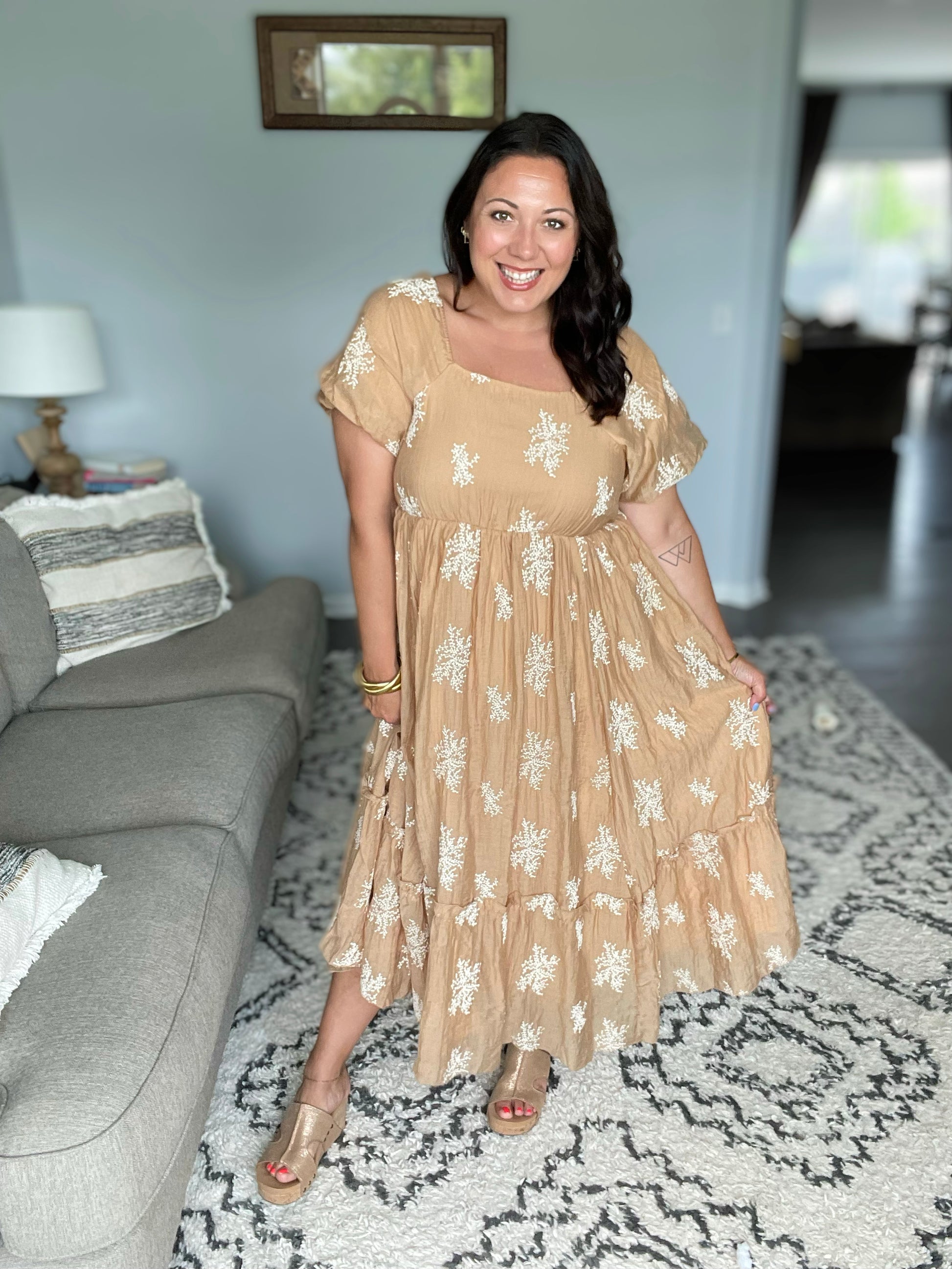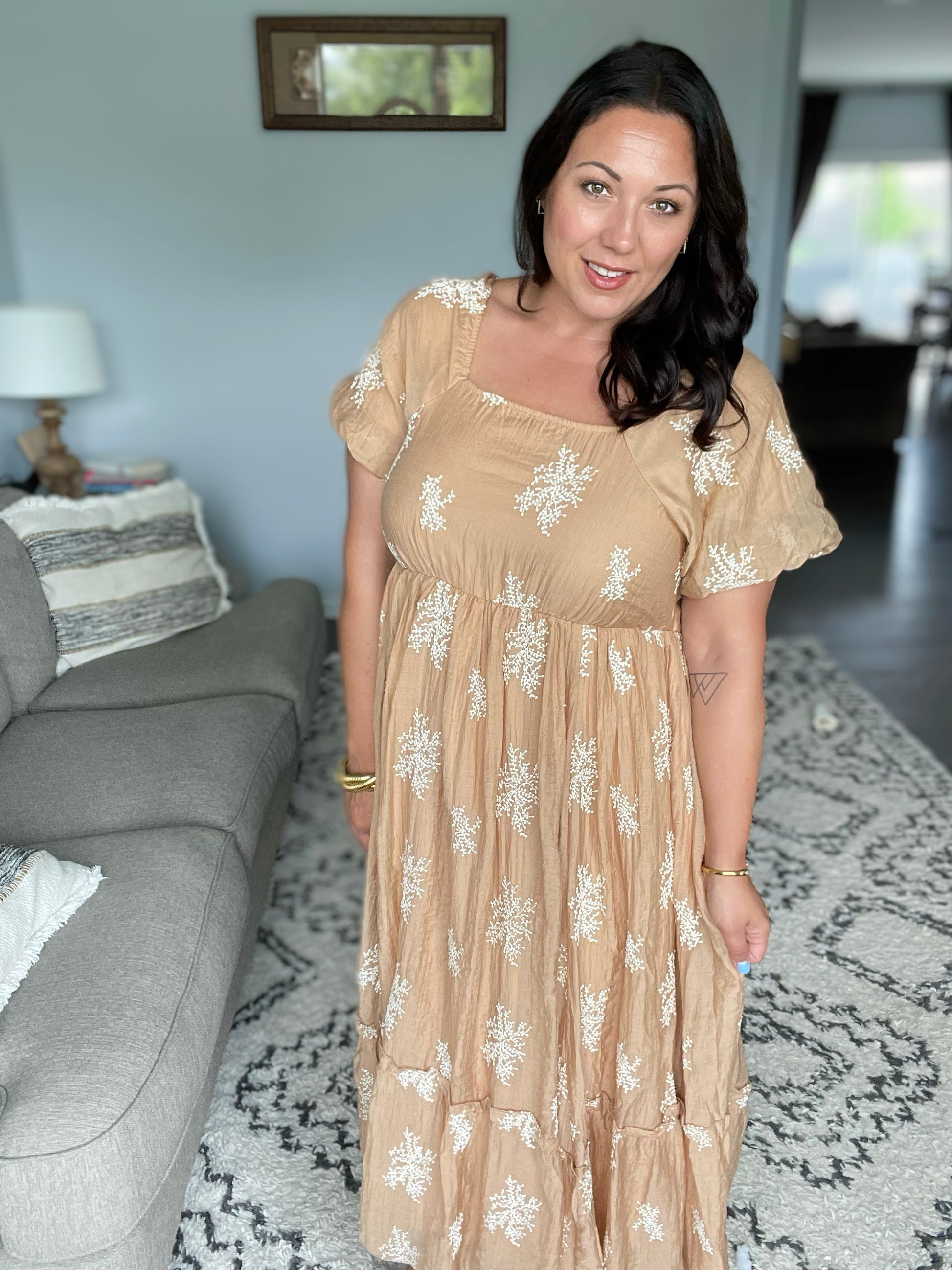 Turn heads and twirl with joy in the Twirl in Bloom Square Neck Dress in Hot Pink. Crafted from a crepe woven fabric with no stretch, this dress features a flattering square neckline with cased elastic for a comfortable fit. The dolman balloon sleeves and gathered tiers add whimsical volume, while delicate ruffle details and machine-embroidered accents bring a touch of artistry. Fully lined for ease and comfort, this dress is your go-to for bright, bold moments that bloom with every move.
