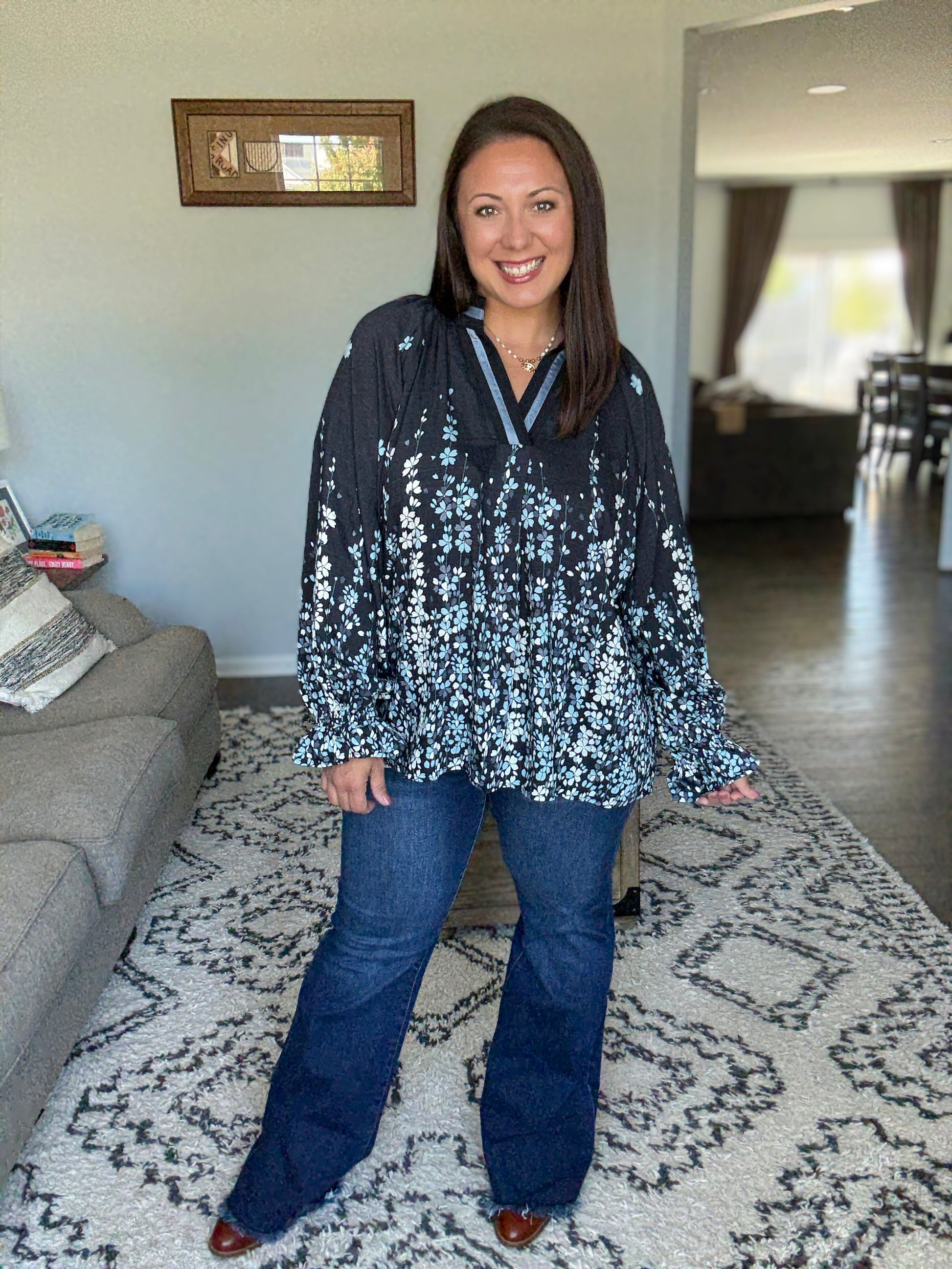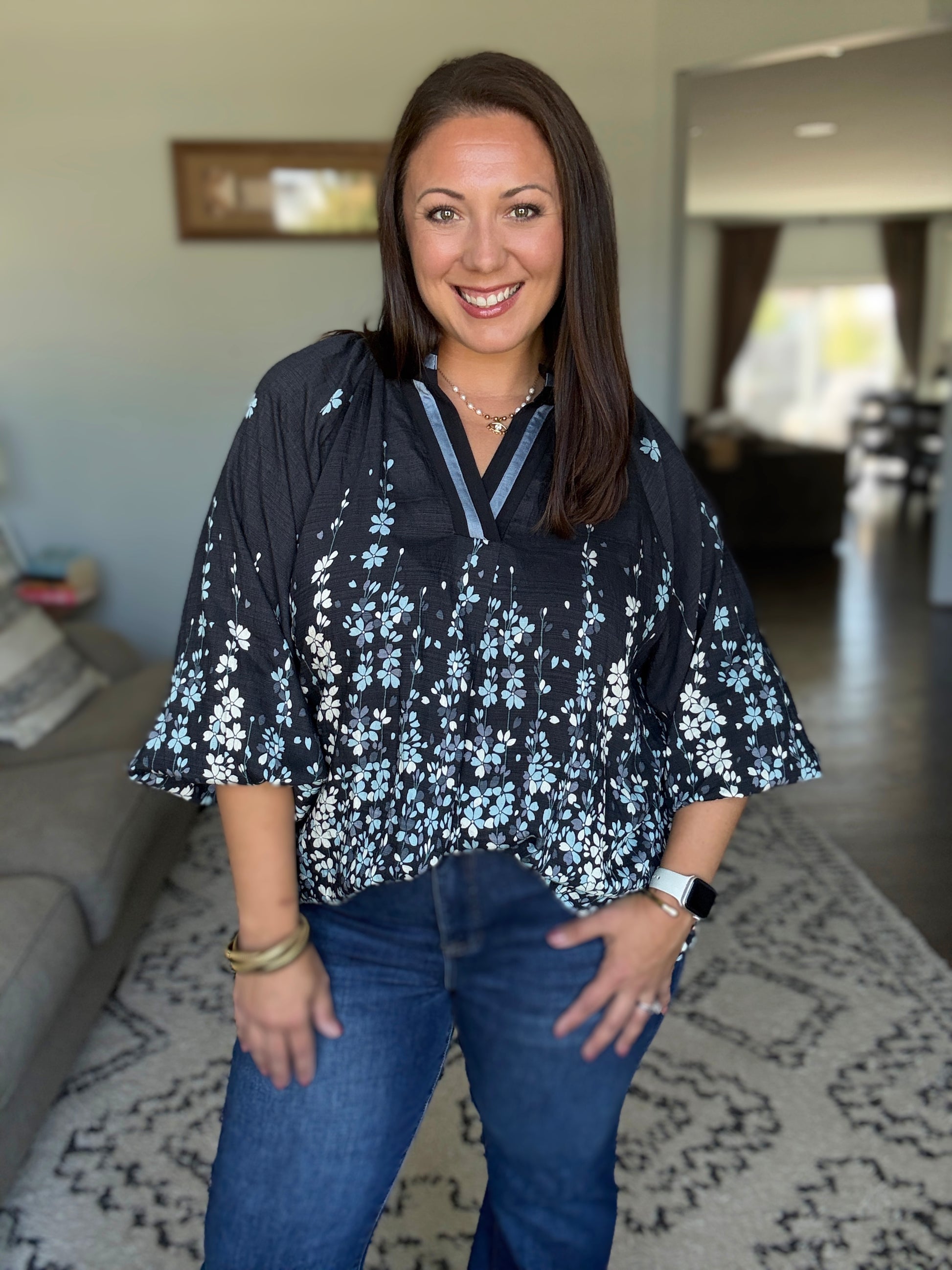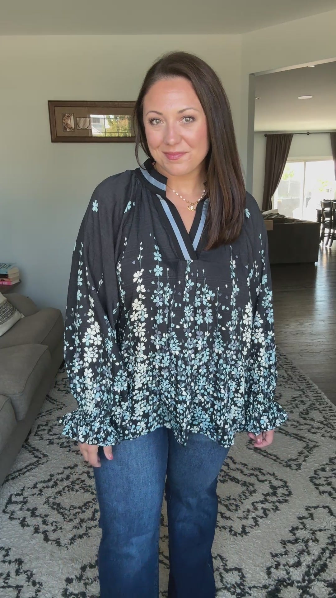 The Floral Vine Print Blouse with Balloon Sleeves is a sophisticated yet comfortable top. The delicate floral vine print adds a touch of romance to the blouse. The balloon sleeves create a dramatic and stylish silhouette, perfect for making a statement and can be worn full sleeve or easily scrunched up to a half sleeve. Embrace the whimsical and feminine vibes with this beautiful floral vine print blouse. Perfect for work, church and many other occasions.