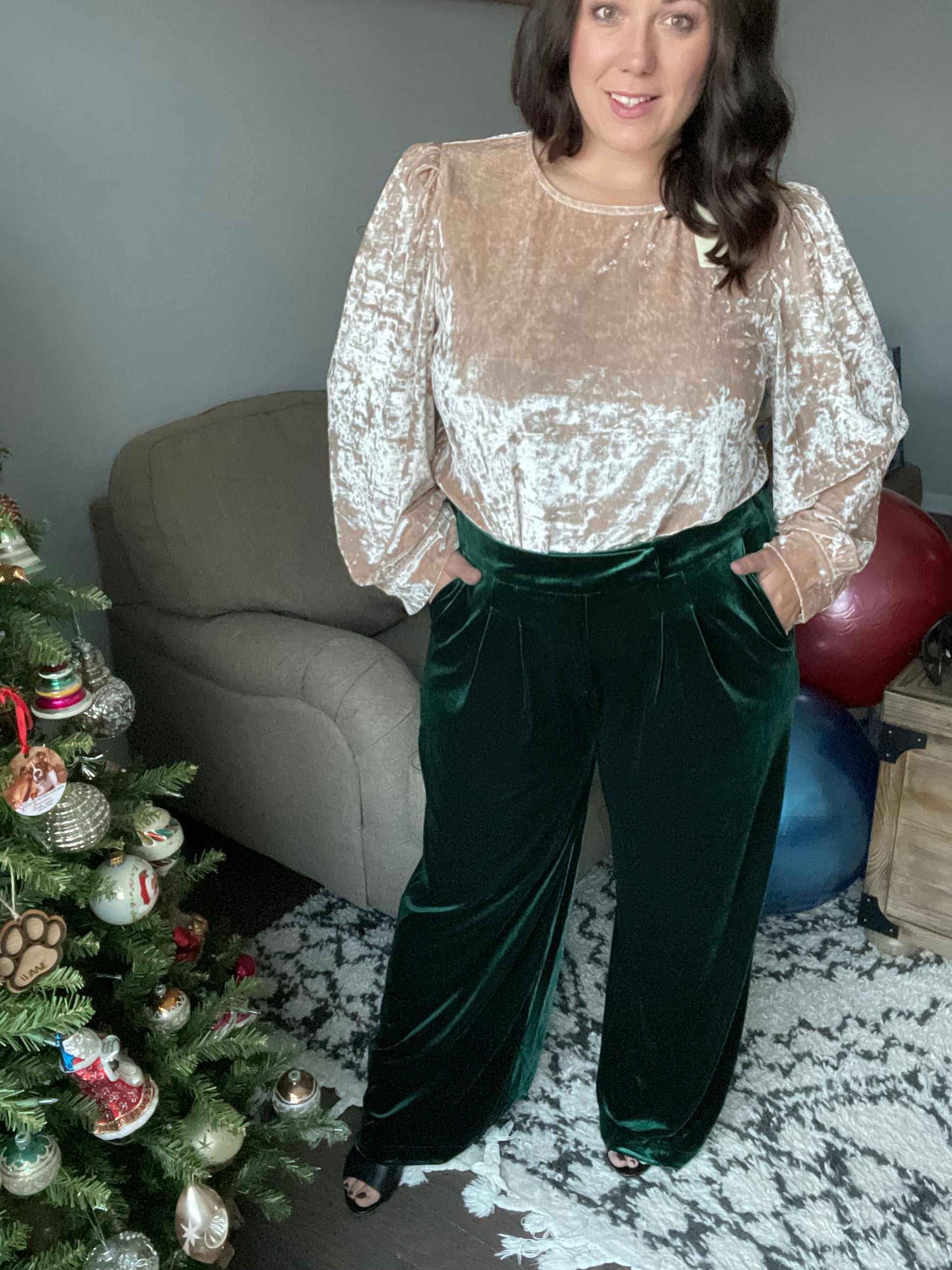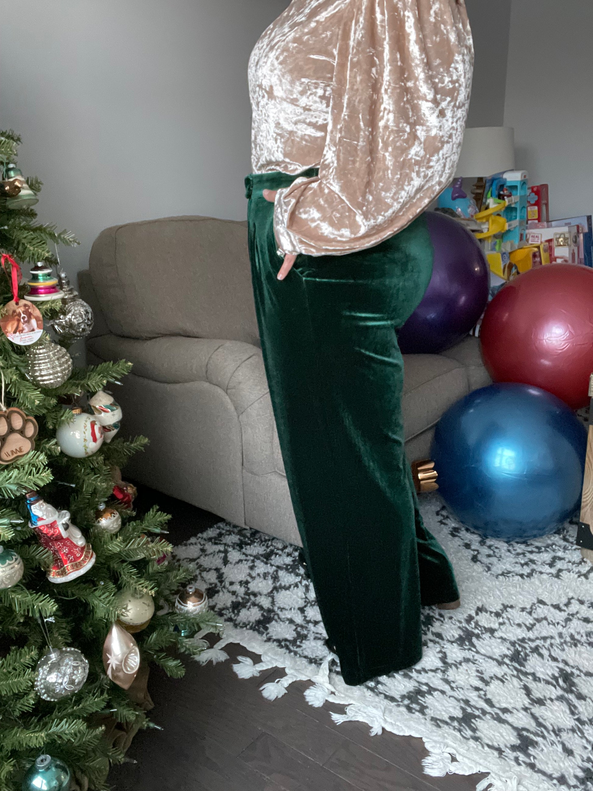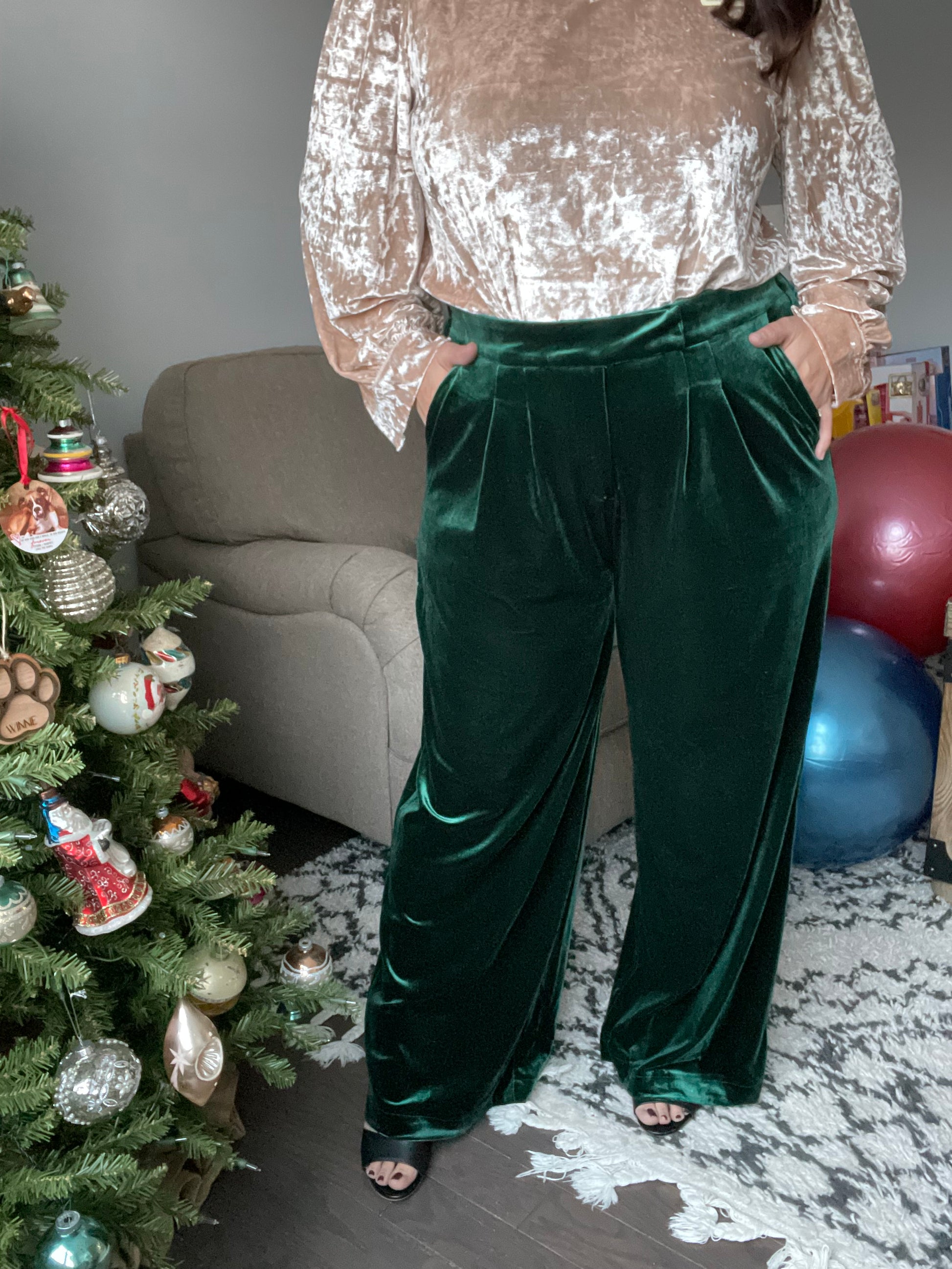 These Velvet Elvis Pants feel ultra-luxe and are guaranteed to make a bold statement. Cut from emerald velvet with a high-rise waist and wide-leg silhouette, this elegant piece is perfect for elevating any look. Wear yours to make a fashionable impression!