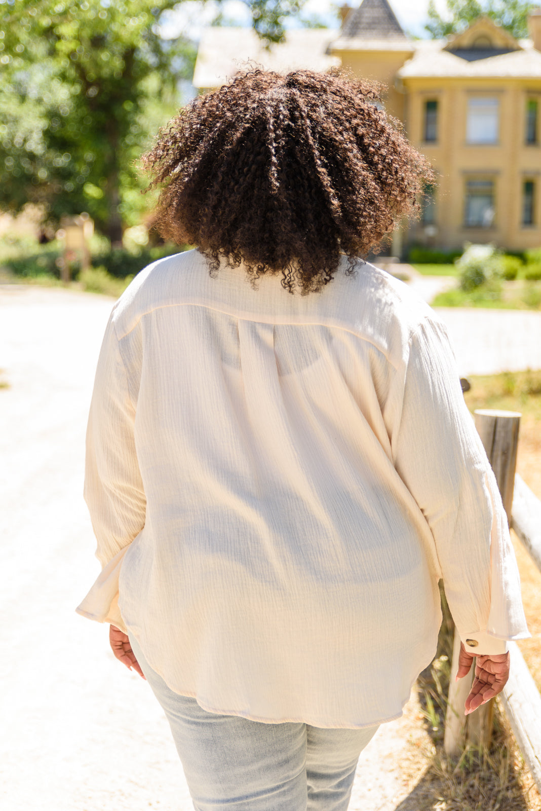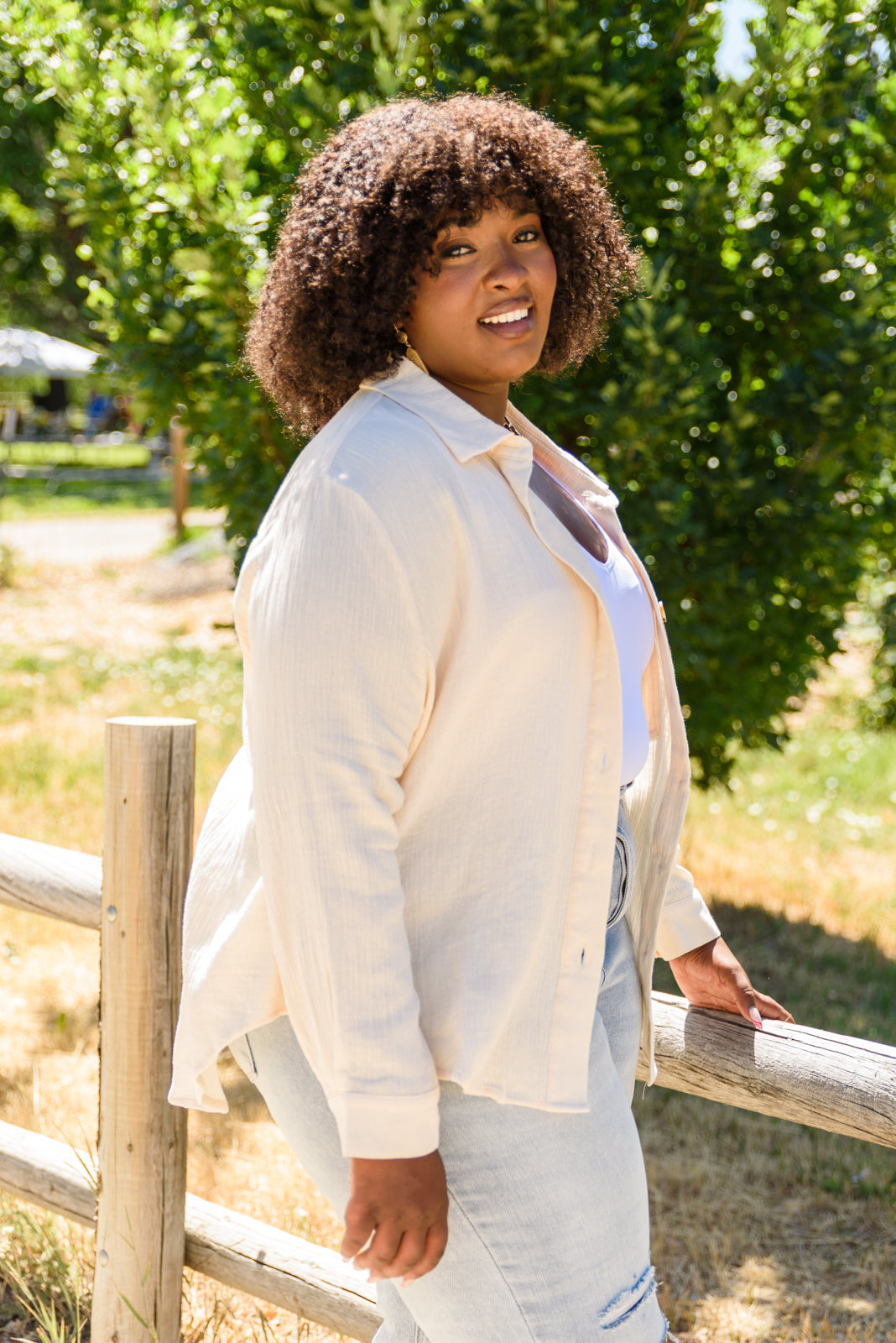 Show everyone how stylish you are in the Want The Best Button Up Top! This gauzy lightweight staple is both versatile and functional with a button front and cuffs, collared neckline, rounded hemline, and front patch pocket! This dreamy button up will quickly become a year round fav!