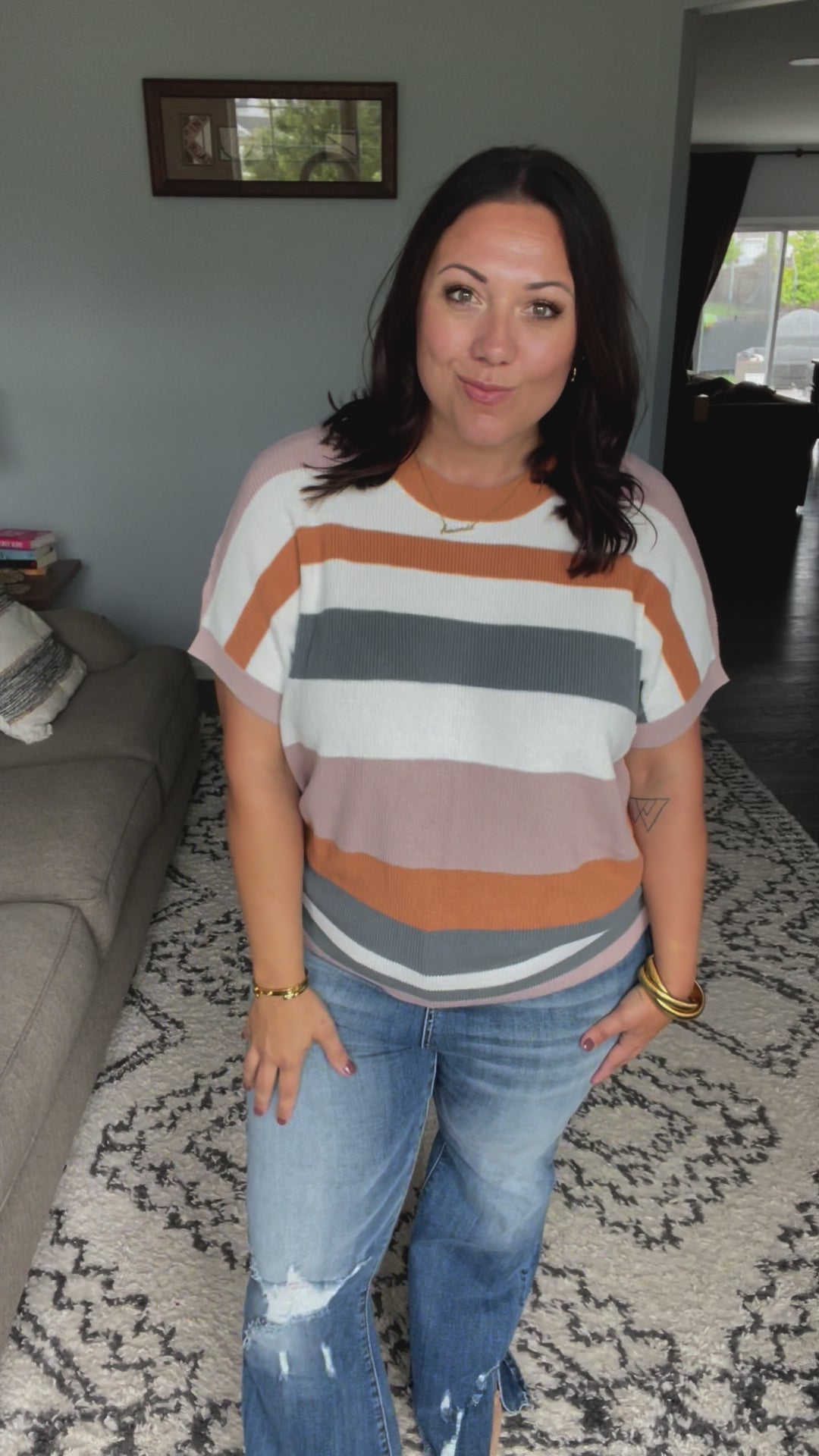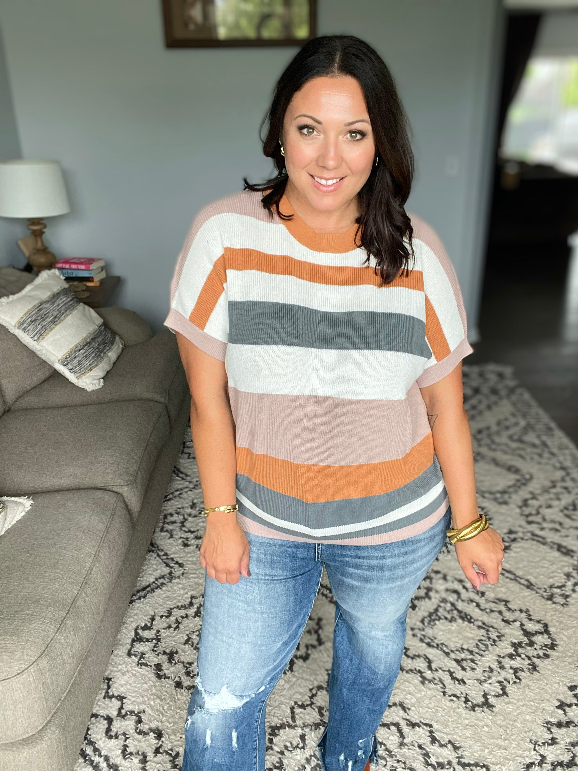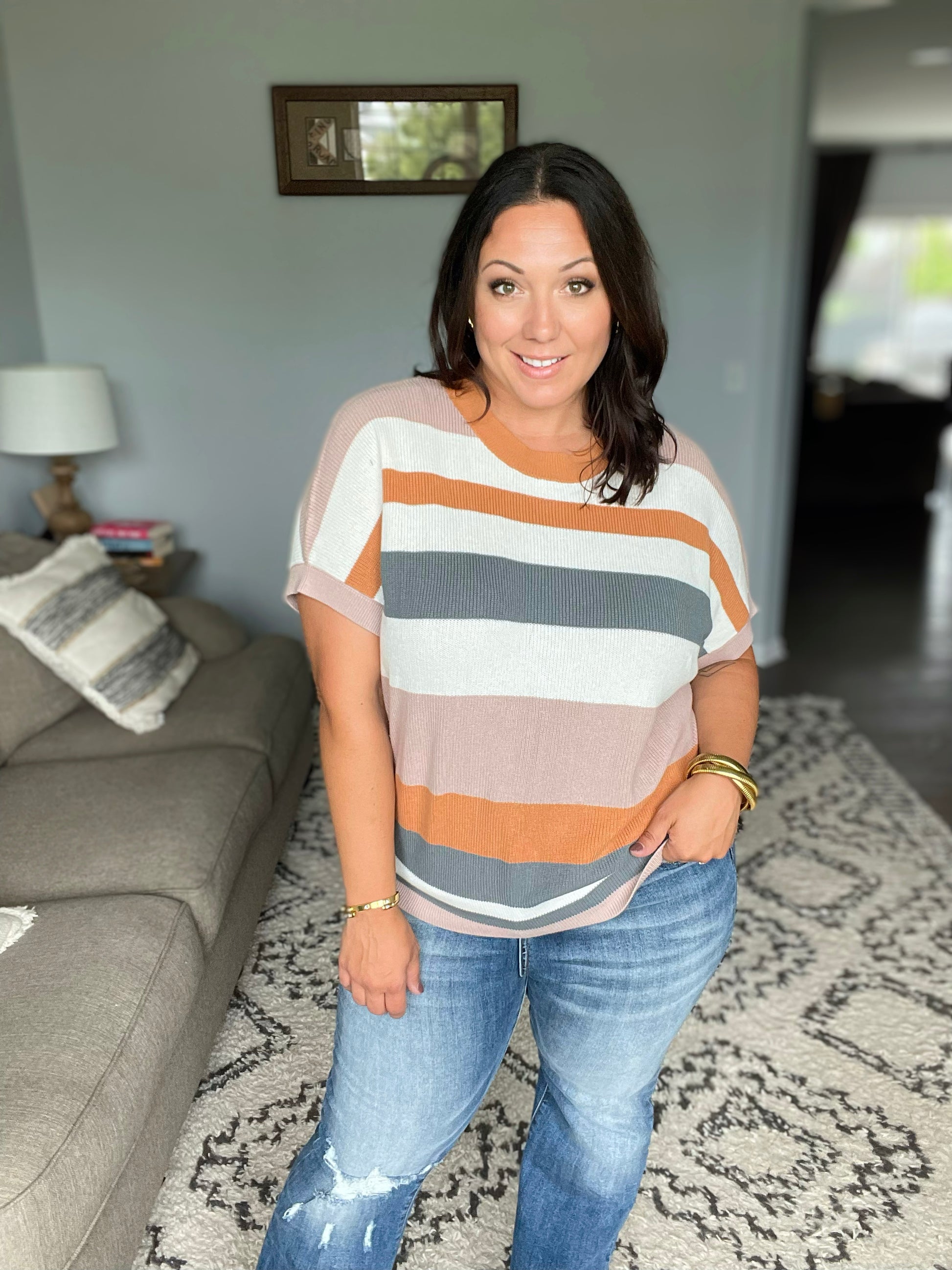 Our Whatever I Feel Like Striped Top is the perfect addition to your wardrobe! Made from sweater knit material, it offers high stretch for ultimate comfort. The ribbed banded round neckline and dolman sleeve add stylish details, while the ribbed banded sleeve cuff ensures a great fit. Get yours now and elevate your style!