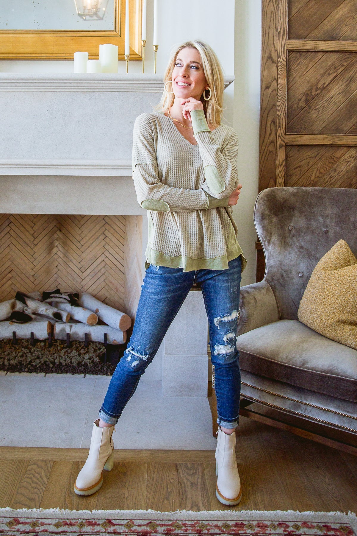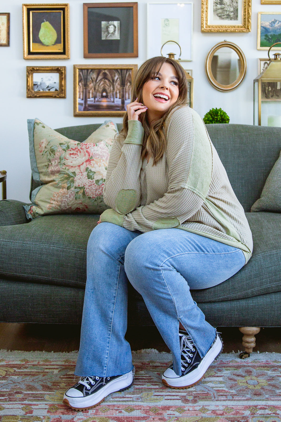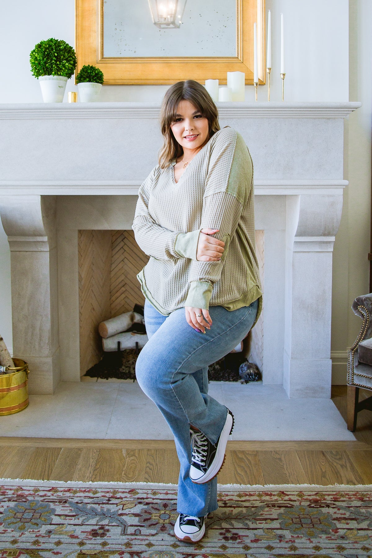 The Winding Roads Top has a gorgeous v neckline that is perfect for showing off your favorite necklaces! This waffled top has a contrast hemline and cuffs that add a fun detail to this relaxed fit top. Pair it with leggings or jeans for a fashionable yet comfortable outfit.