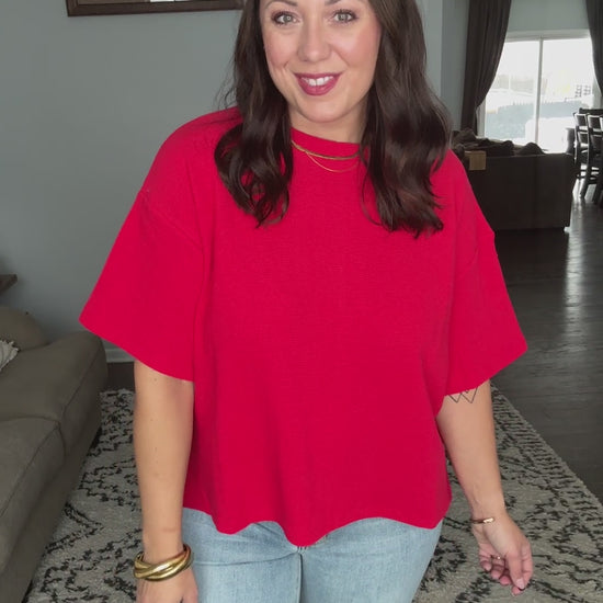 Zenana Thermal Boxy Tee with Side Slits in Ruby