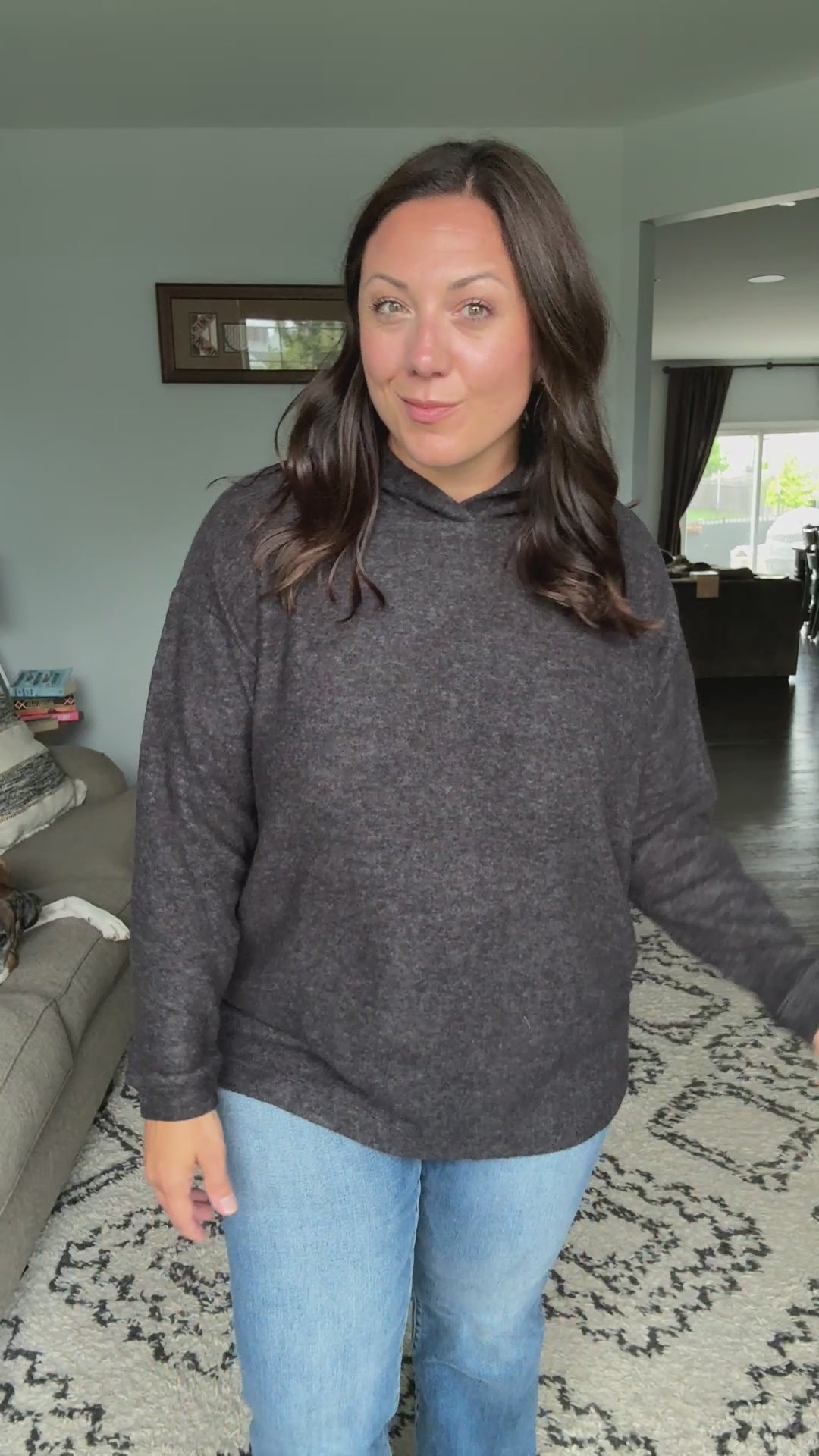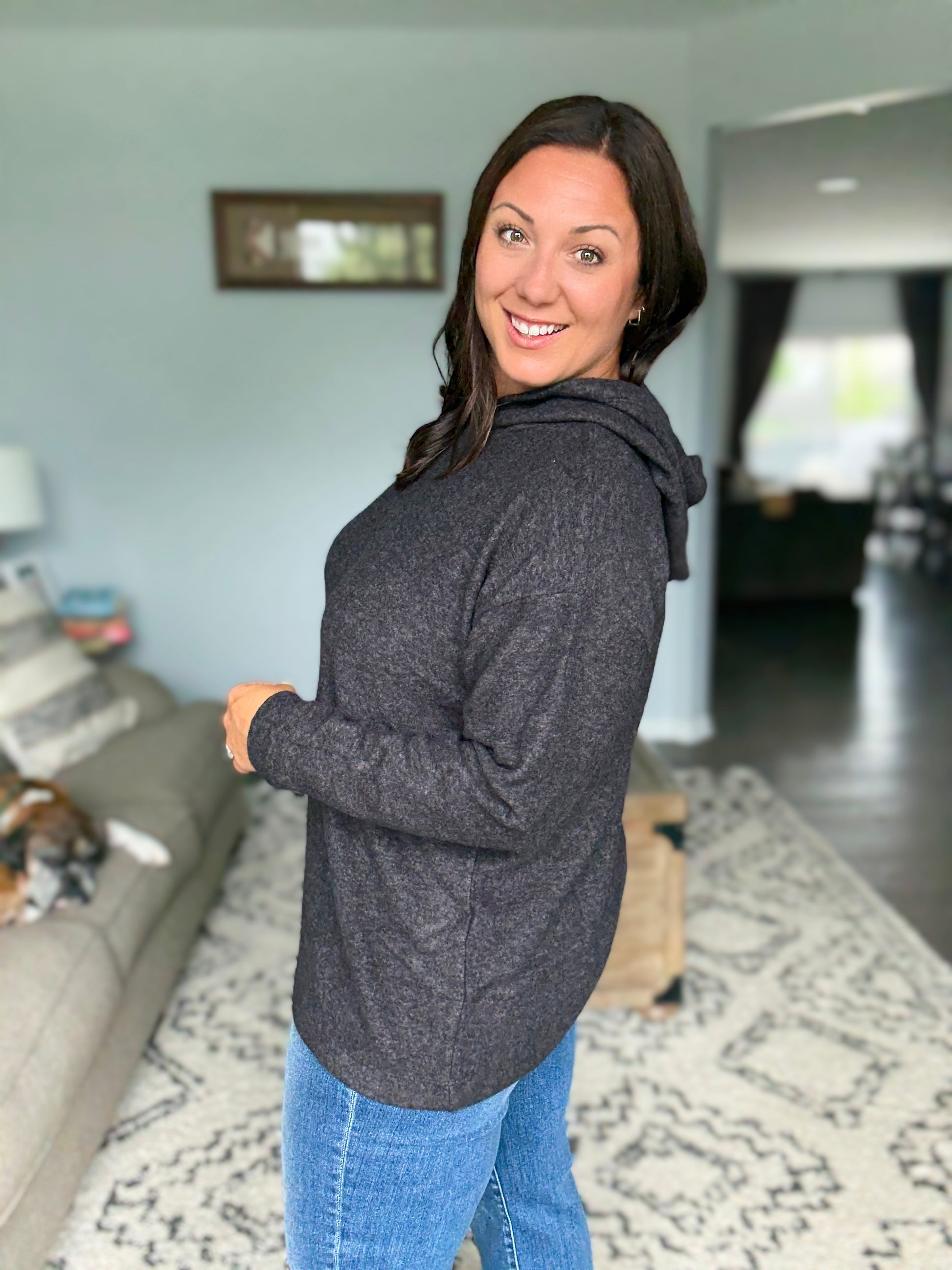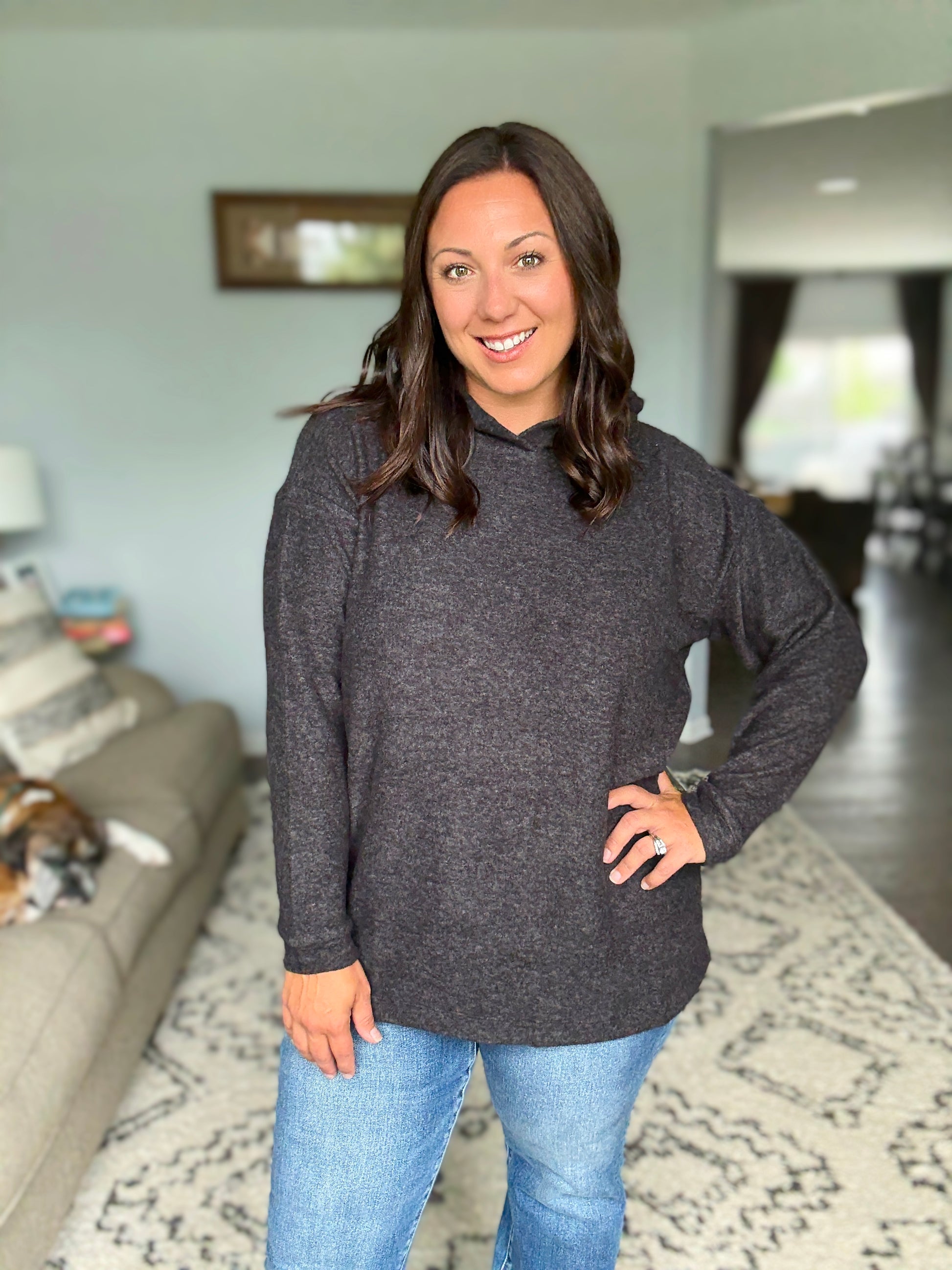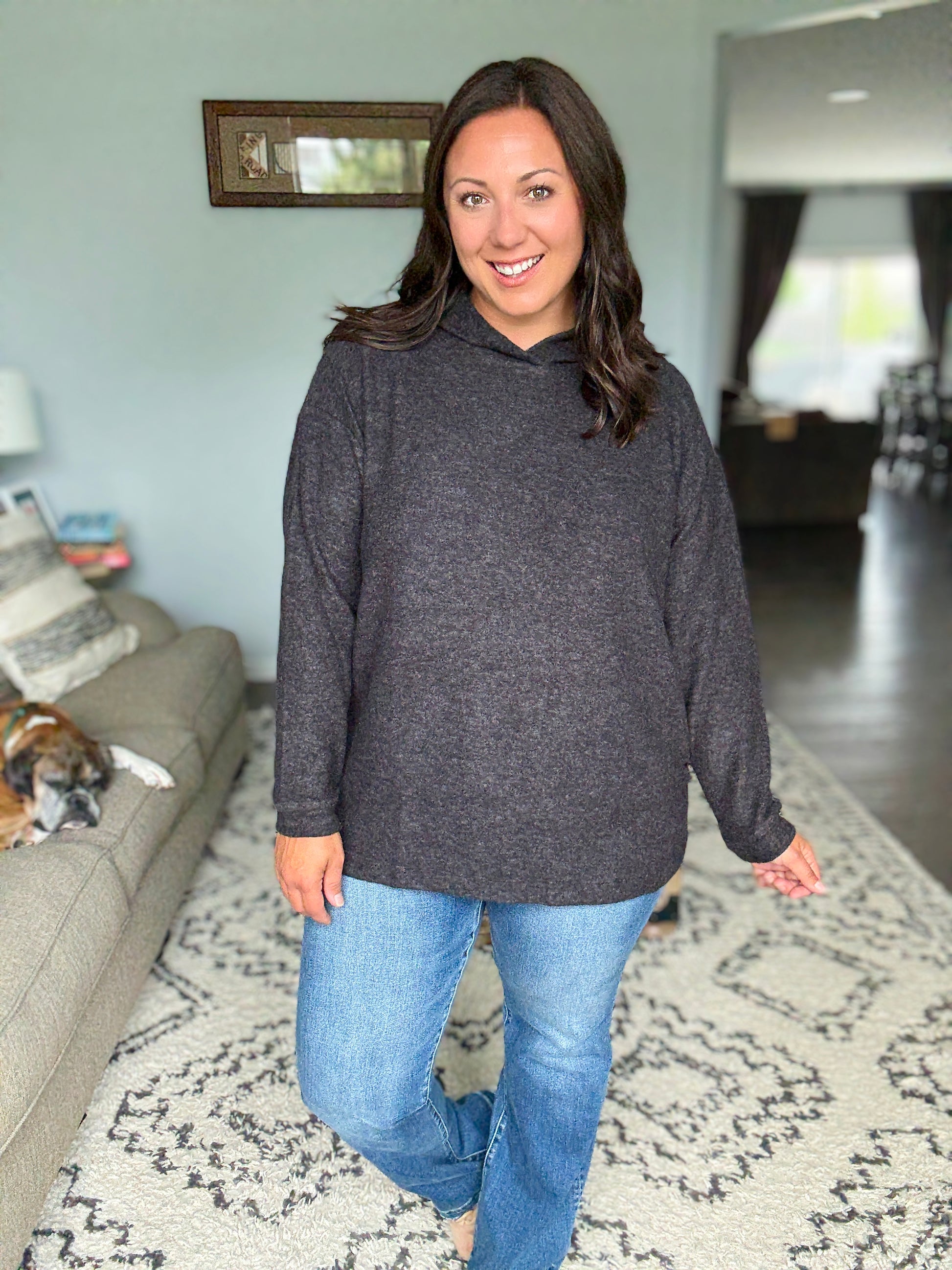 Zenana Basically My Favorite Hooded Brushed Melange Hacci Pullover in Black