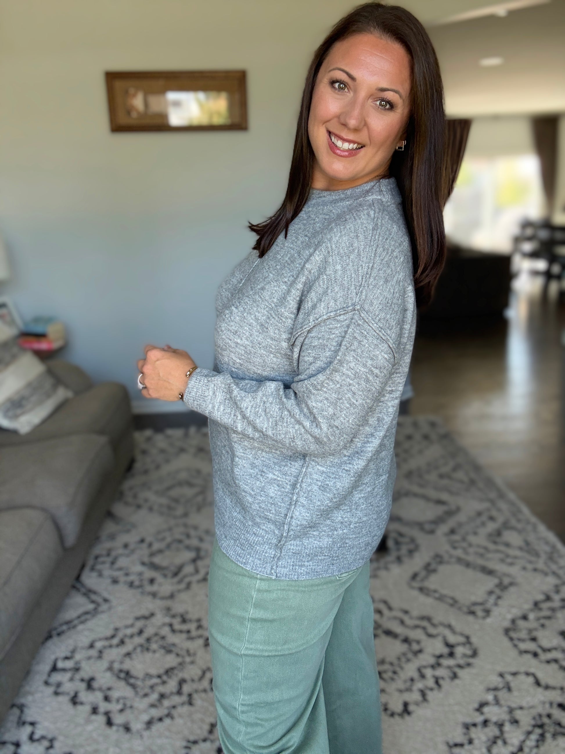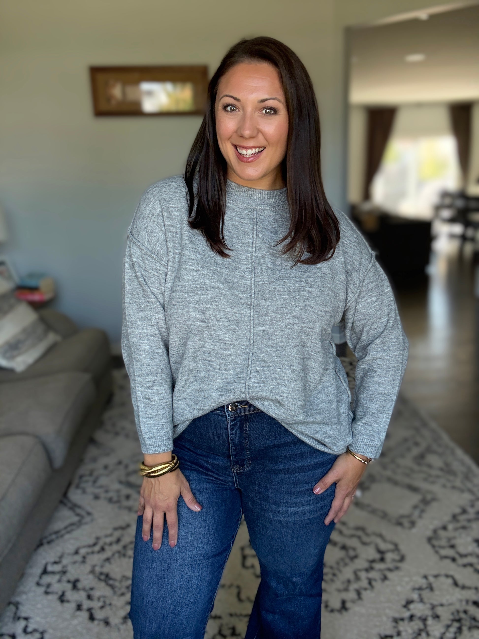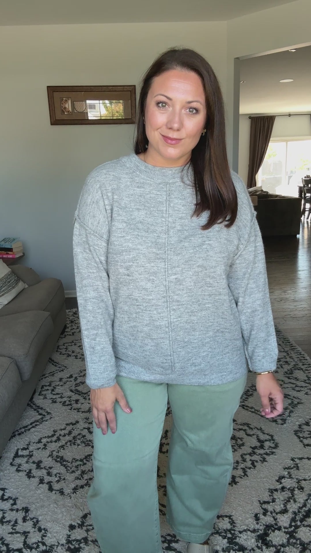 Zenana Melange Front Seam Round-Neck Sweater in Heathered Grey