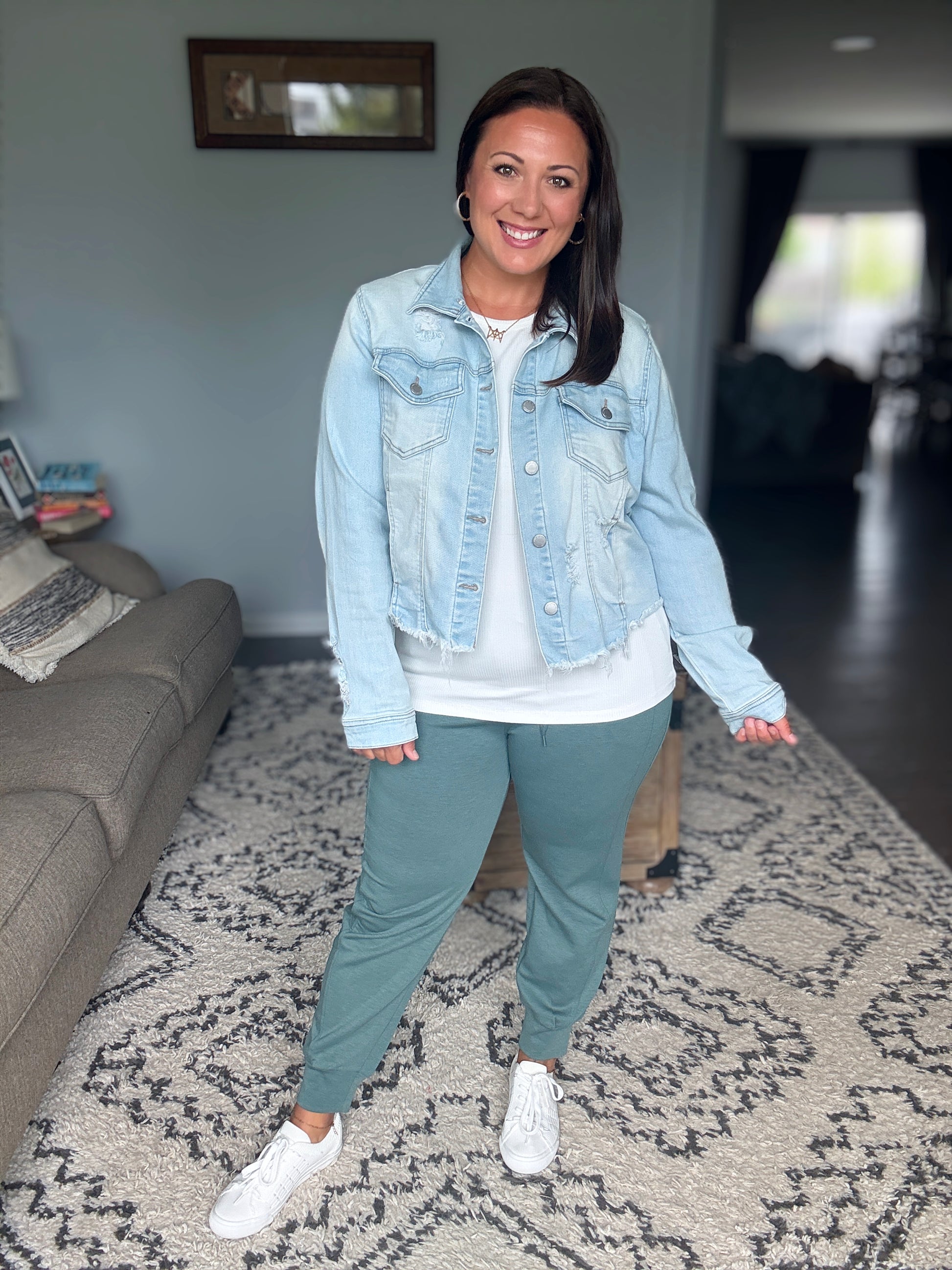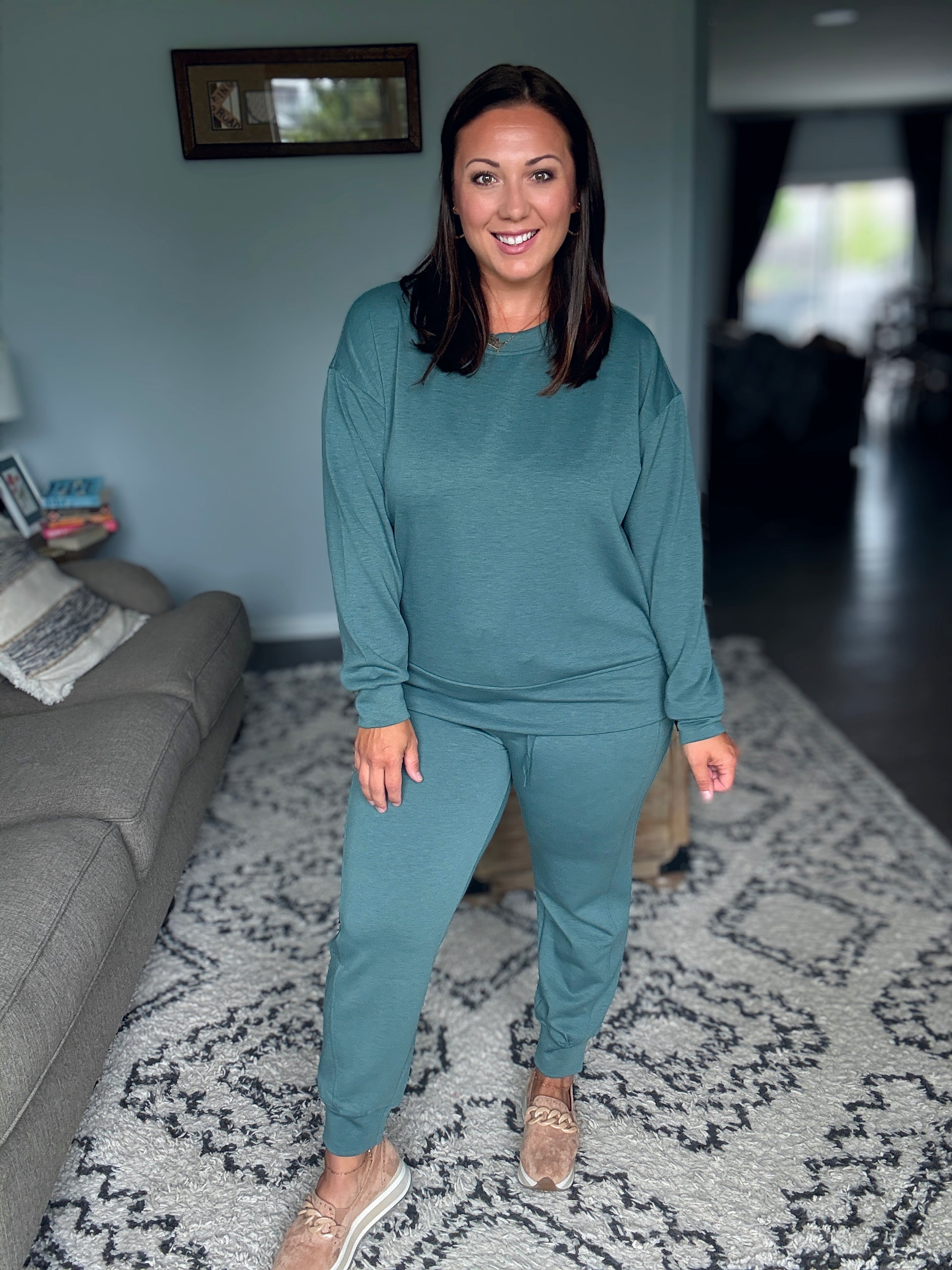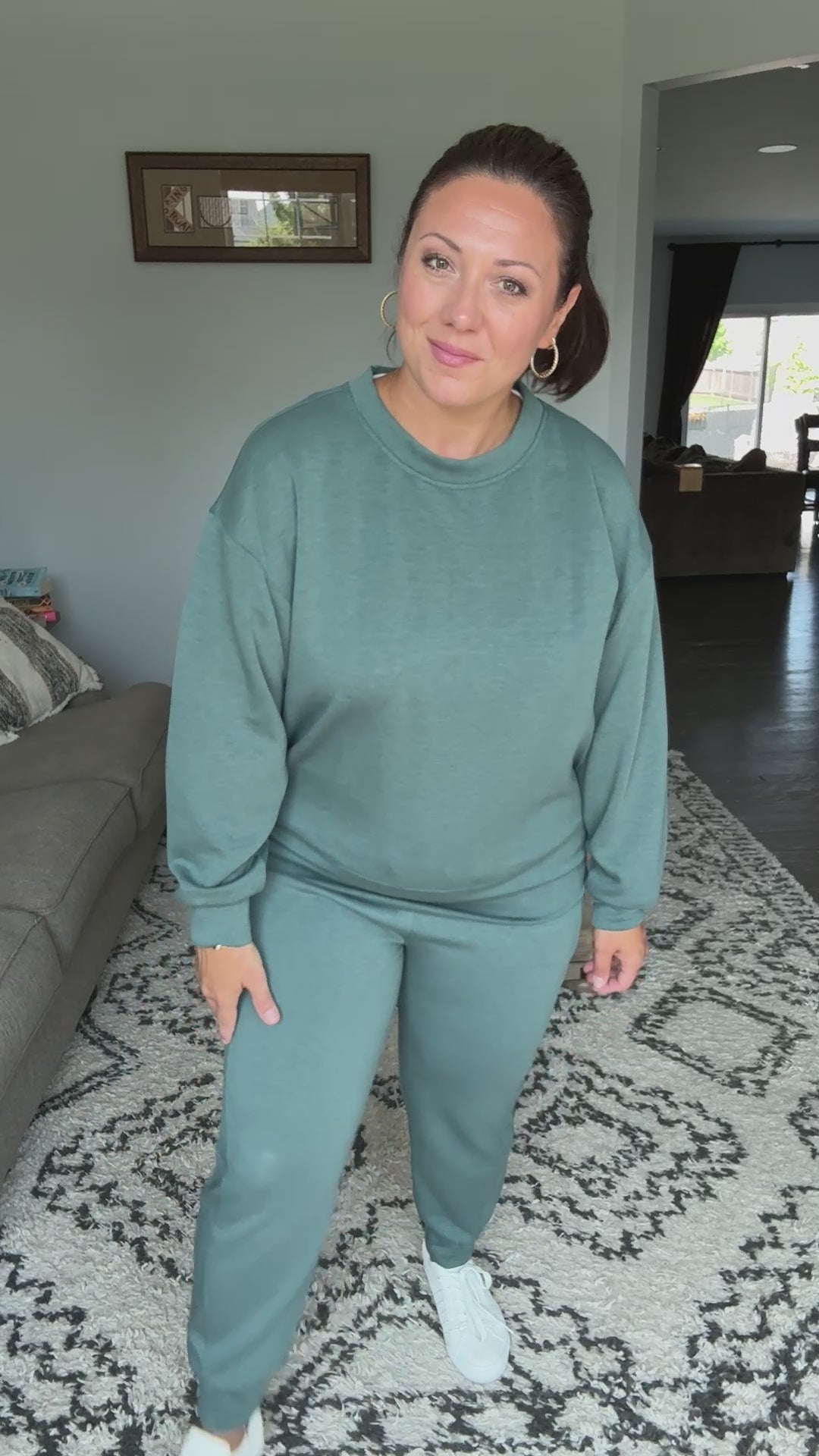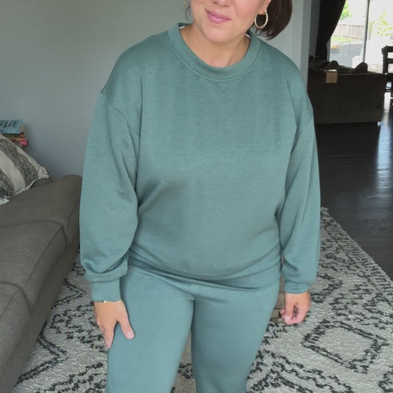 Zenana Scuba Crewneck 2 Piece Jogger and Pullover Set in Ash Jade